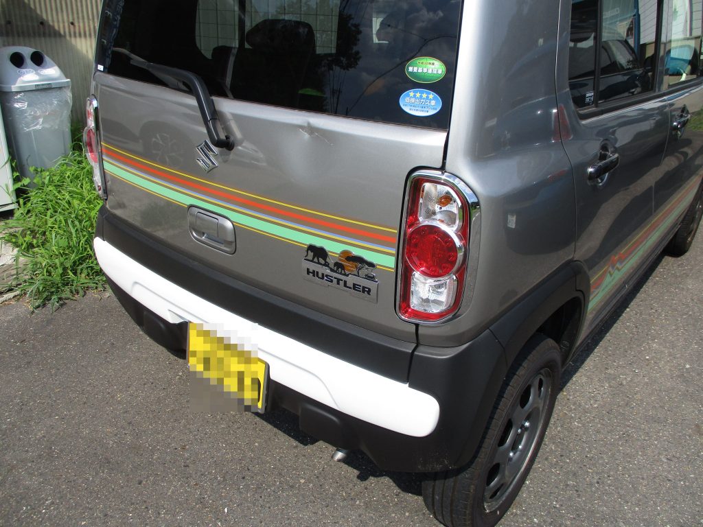 一宮市のお客様からスズキ・ハスラーのバックドアのヘコミの板金・塗装のご依頼をいただきました。