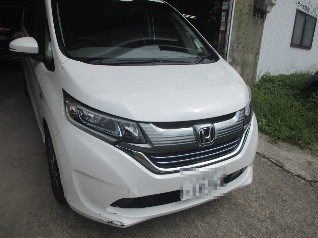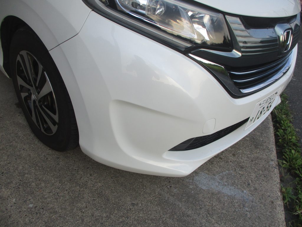 一宮市のお客様からホンダ・フリードのフロントバンパーのキズ・ヘコミの修理・塗装のご依頼をいただきました。