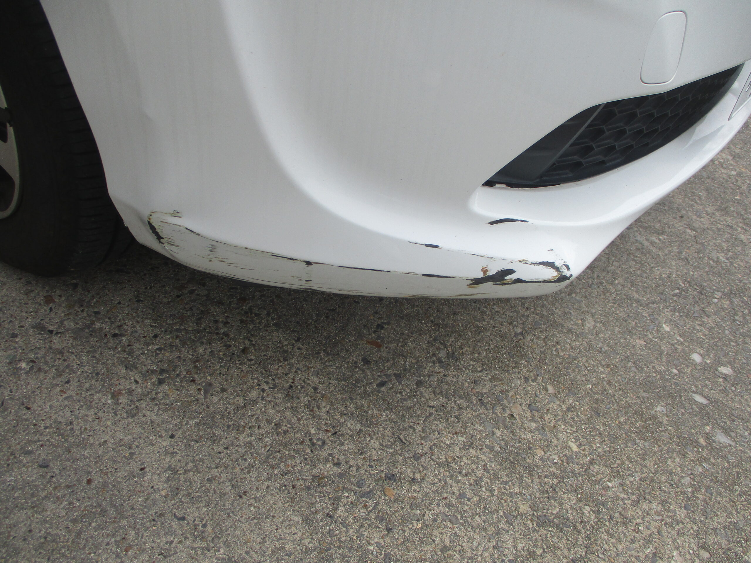 フロントバンパーの右側の下周りに擦り傷があって所々で地肌が見えています。さらに表面の歪みもあります。