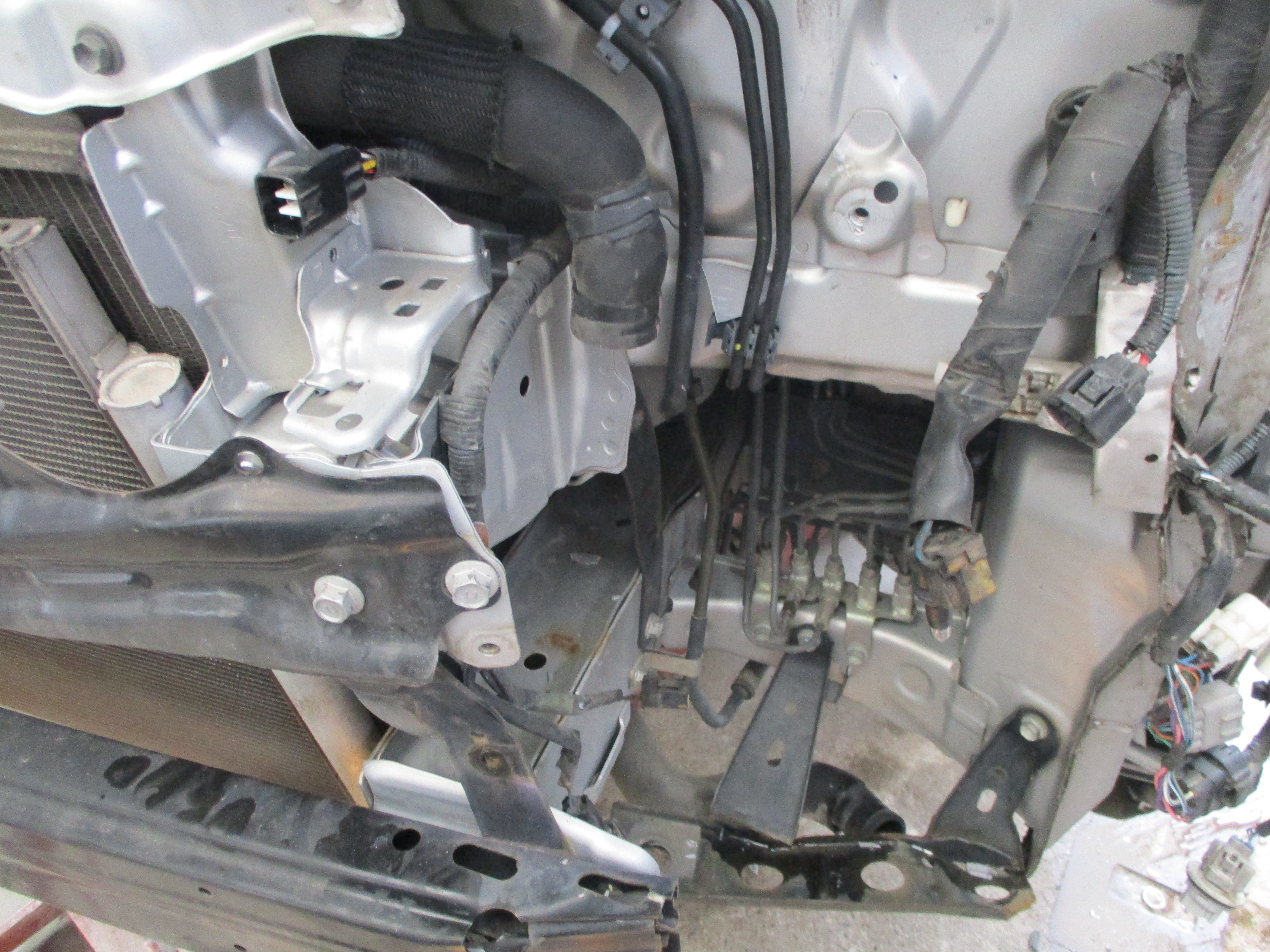 そして中のインナーパネルも押されて凹んでいます。ラジエターグリルは端に少し傷はありますがこのまま使います。フロントドアもバンパー側の折れ曲がりはありますが板金だけします。