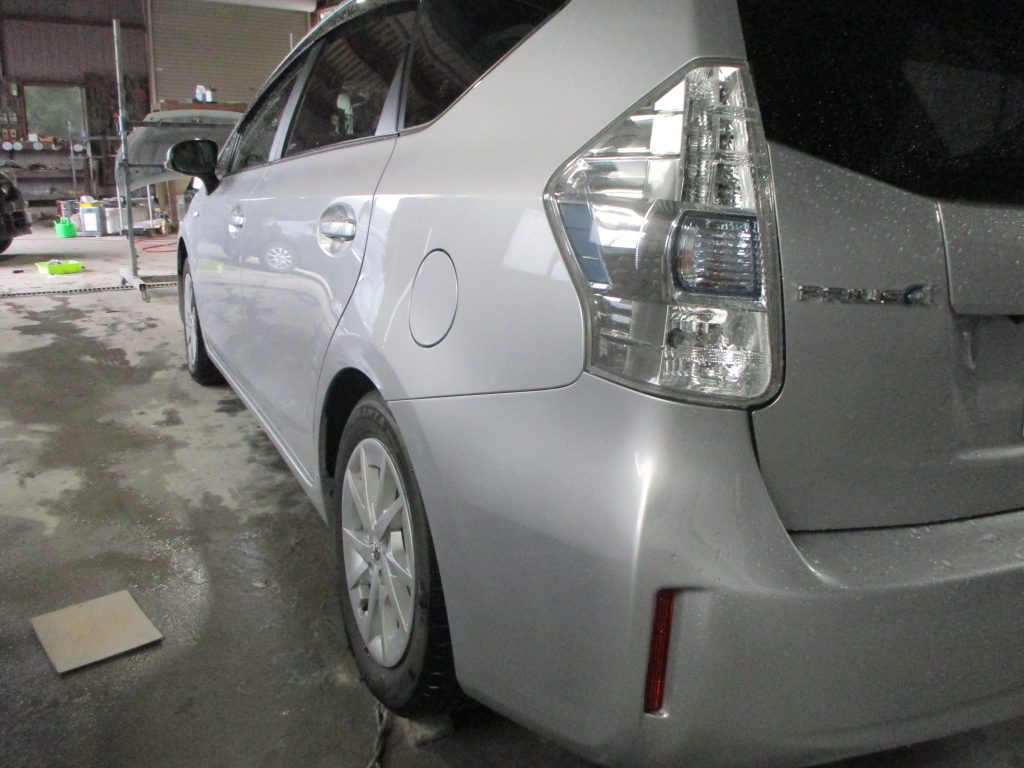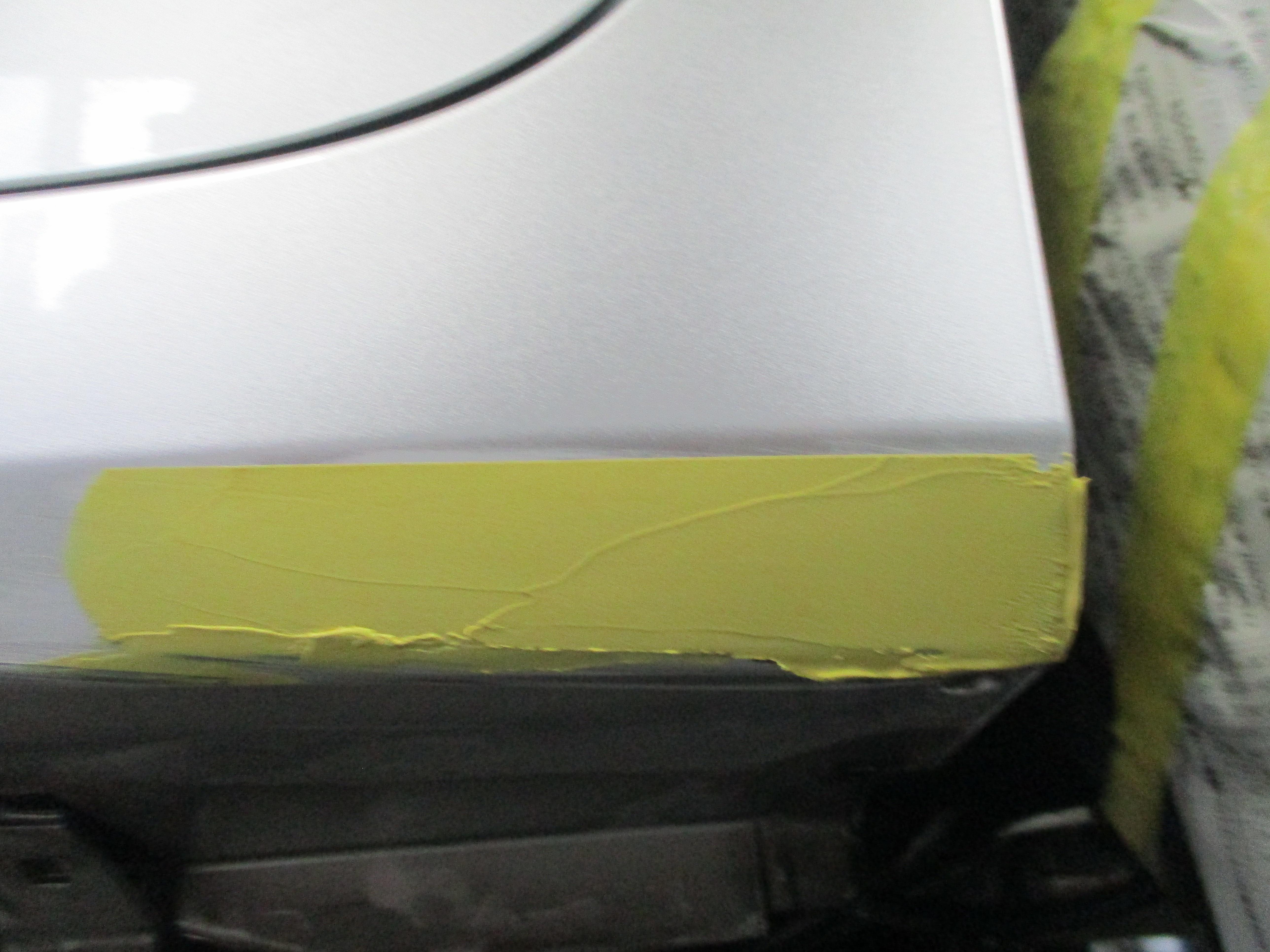 左のサイドスポイラーの後ろの下側に横に擦り傷が入っています。それとサイドスポイラー本体の下が少しズレてましたので、こちらはクリップで固定します。