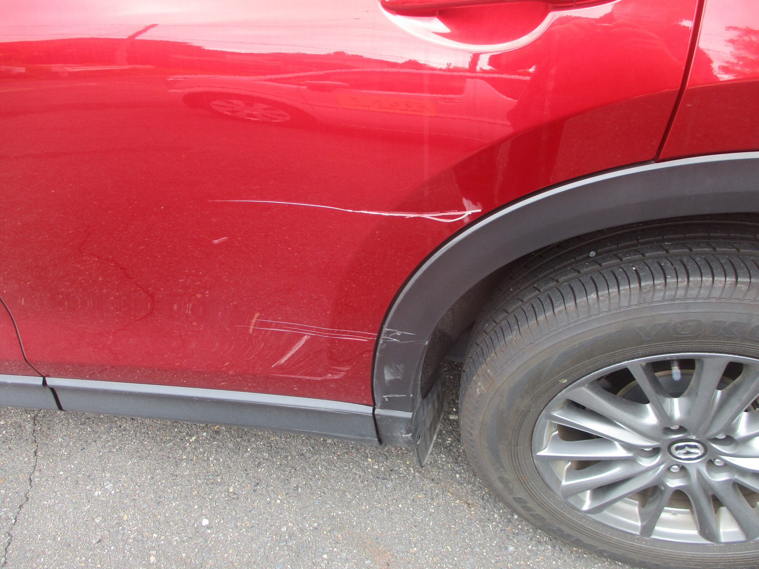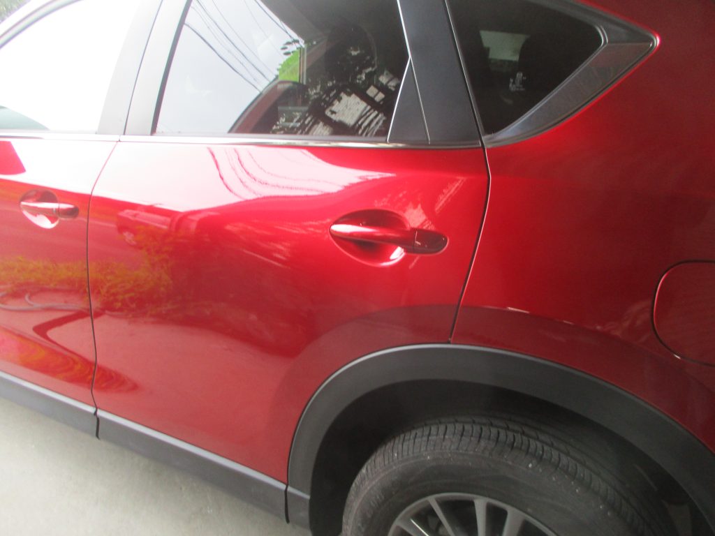 名古屋市のお客様からマツダ・CX-5の左リアドアのキズ・ヘコミの板金・塗装のご依頼をいただきました。