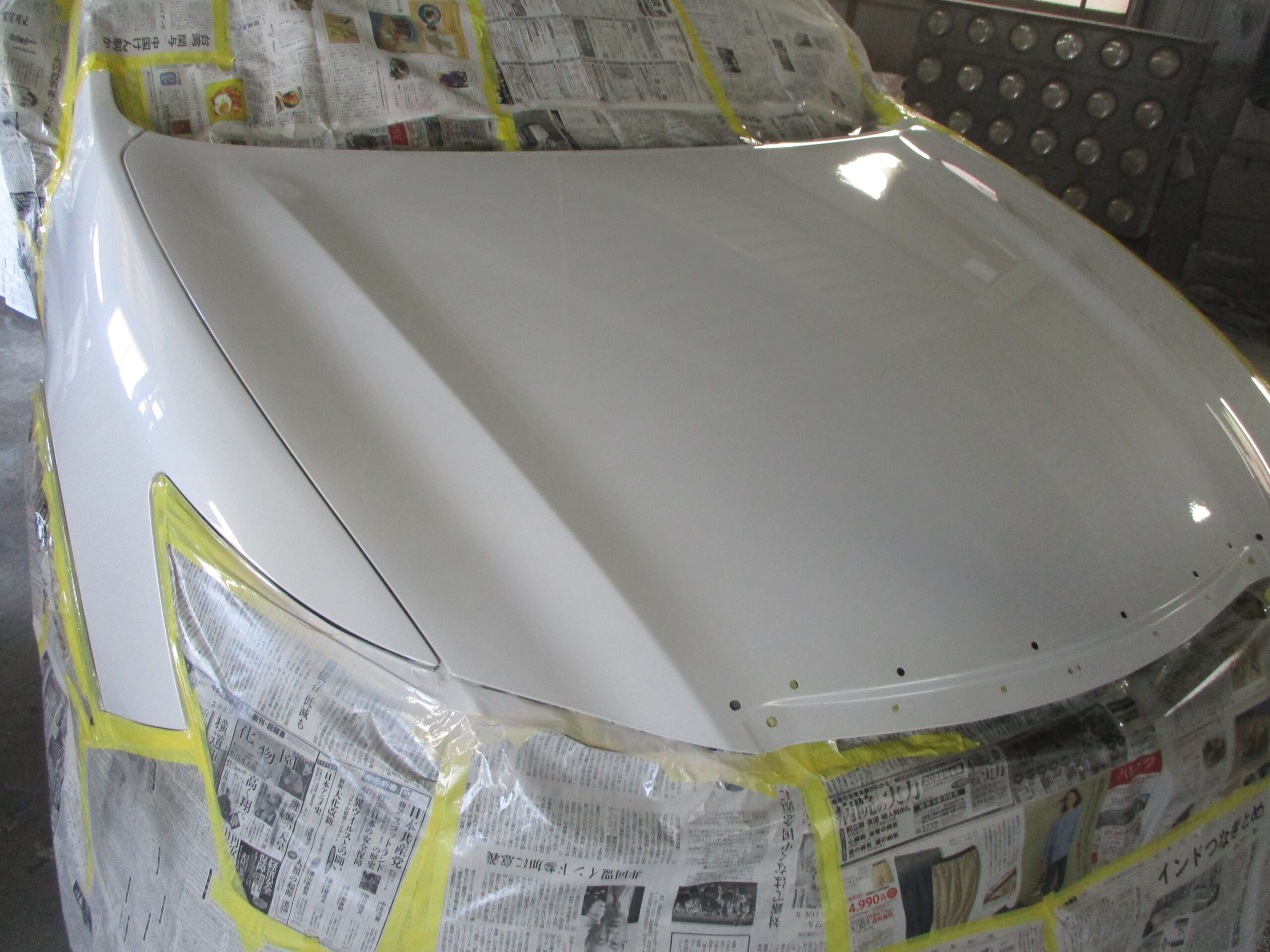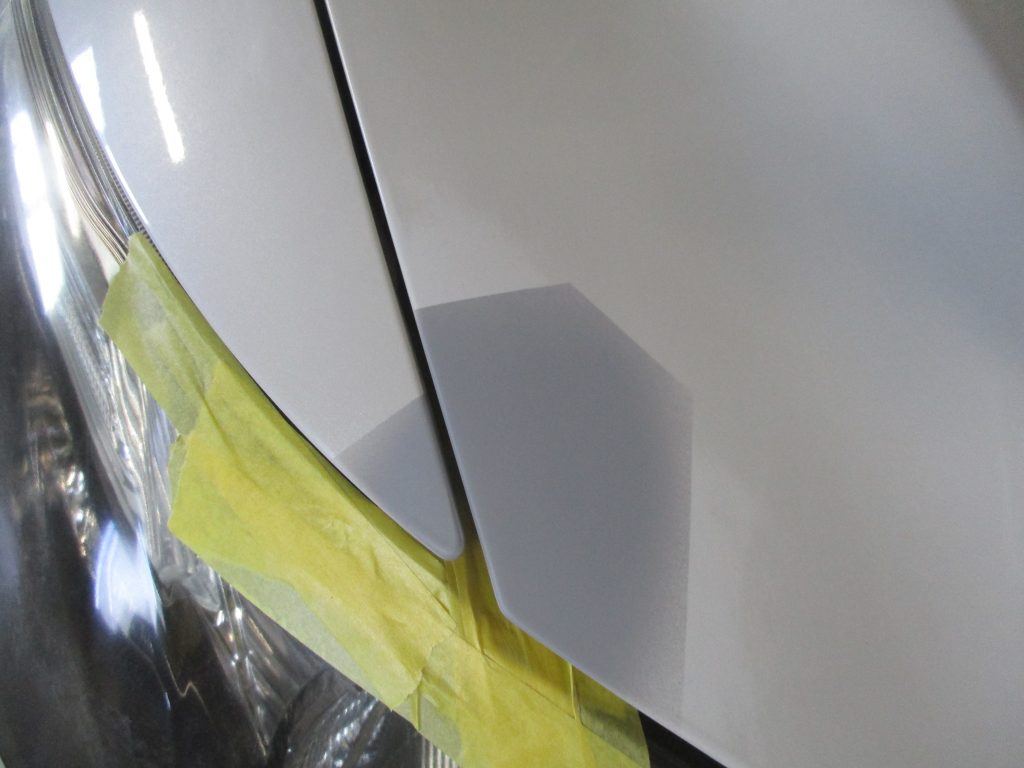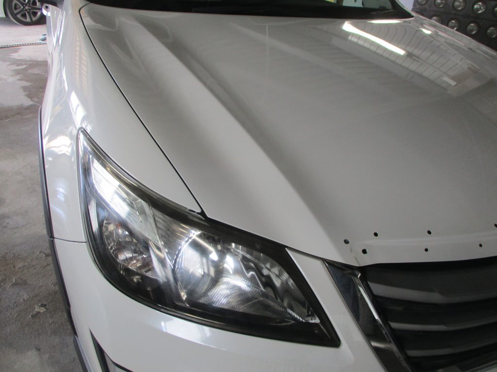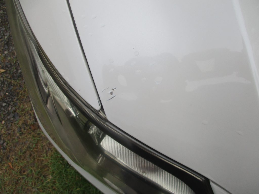 エクシーガのボンネットとフロントフェンダーに細かい傷が入っています。今回は車両保険での対応になります。