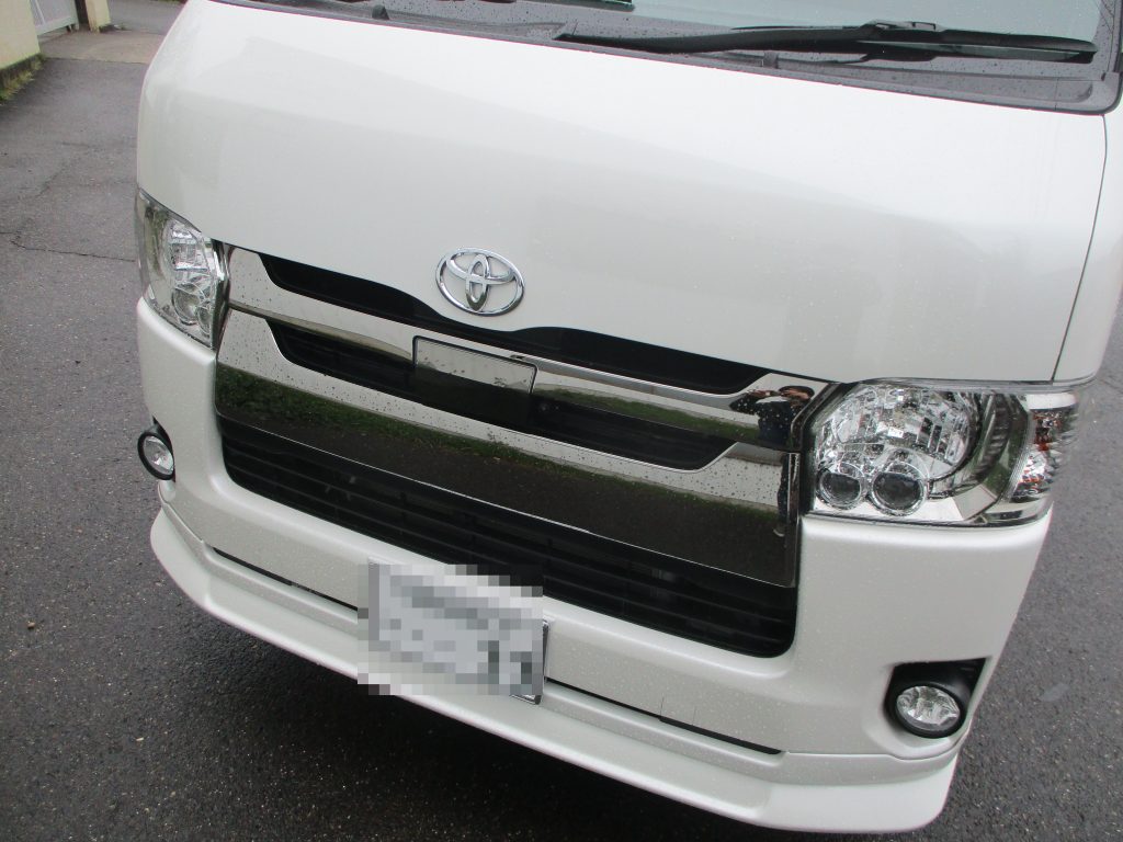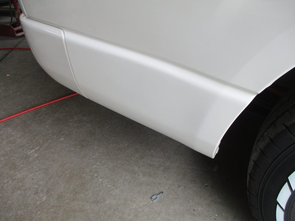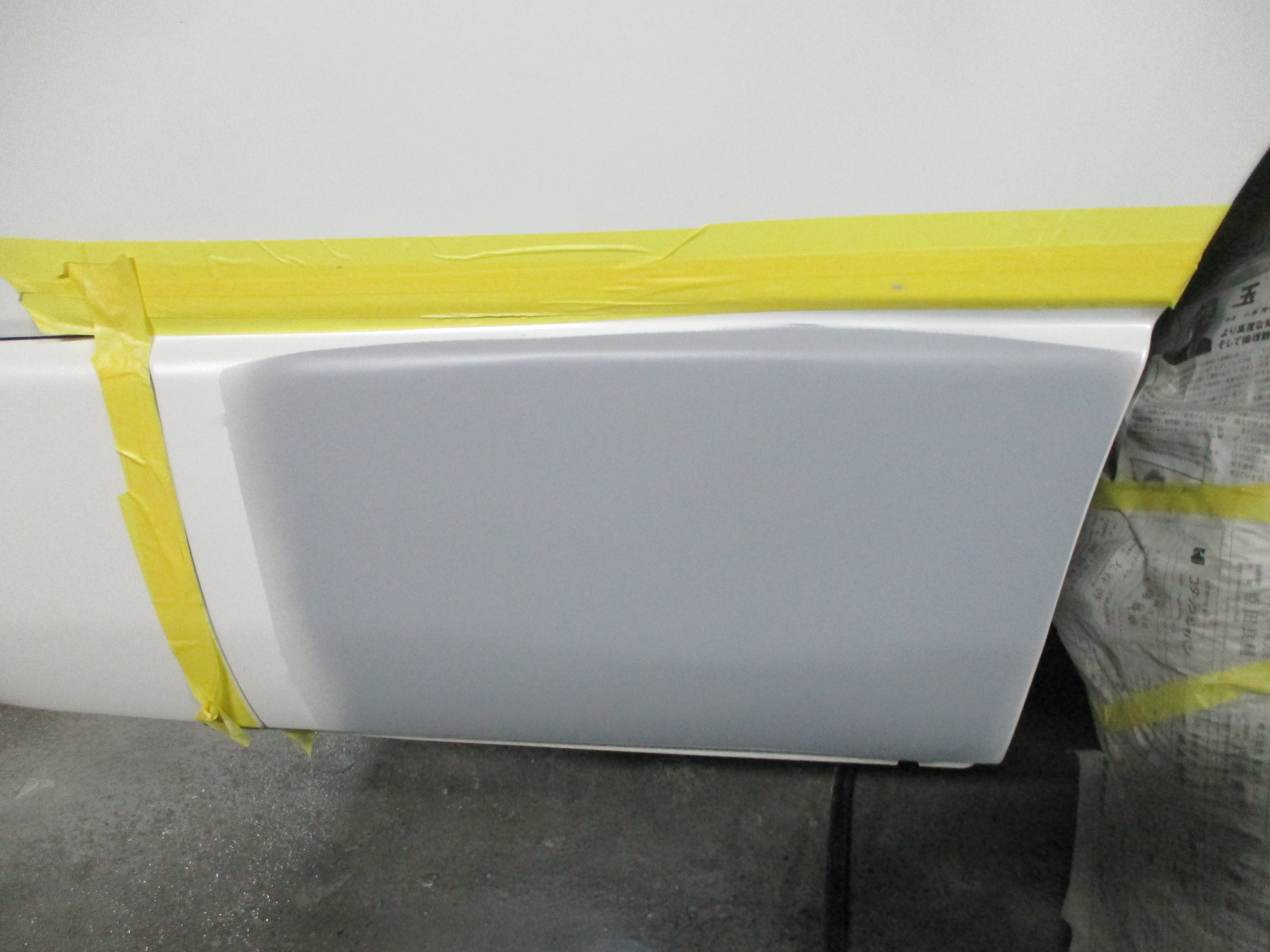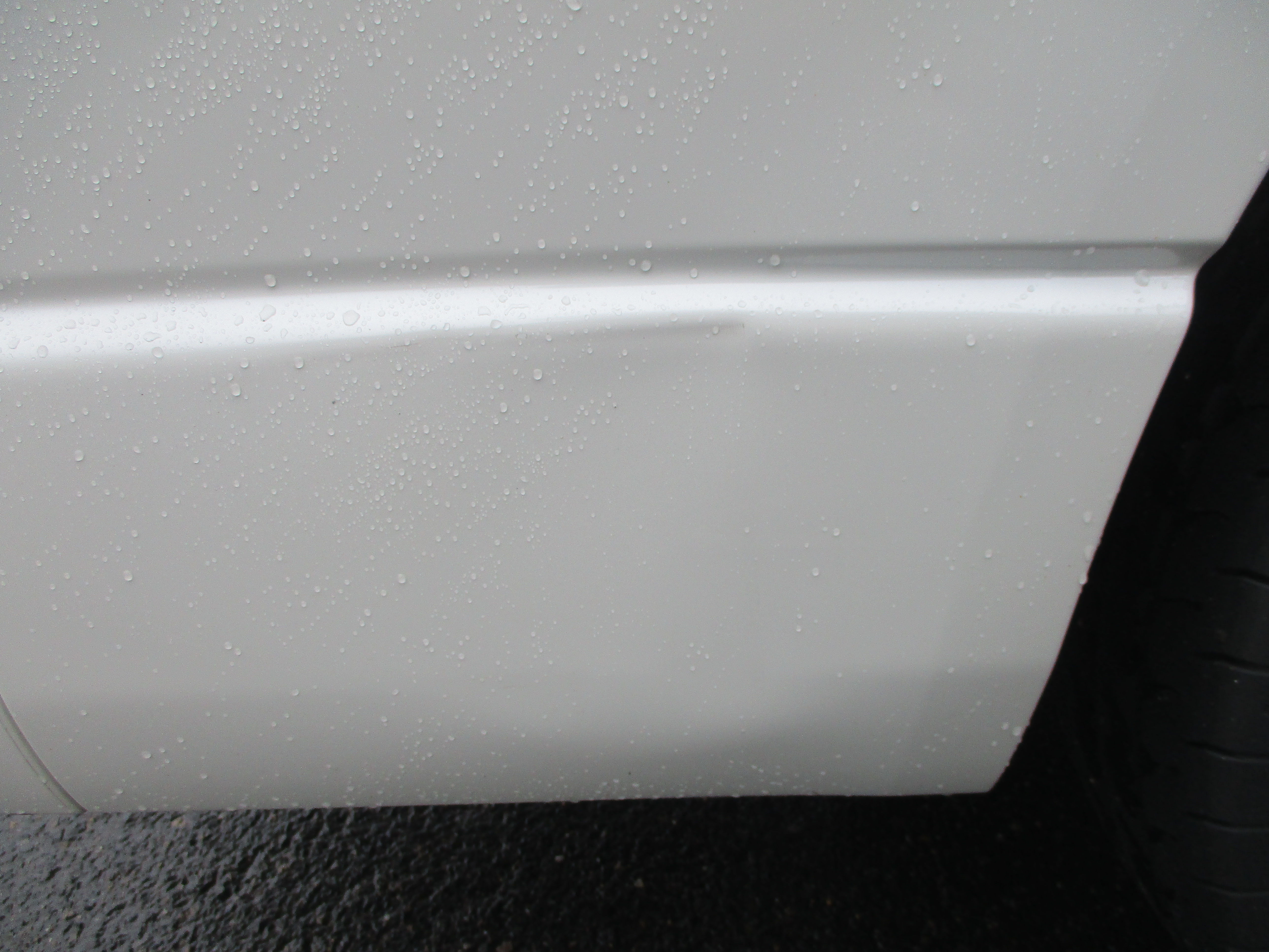 修理箇所はハイエースの右リアクォータの後ろ側の下辺りに浅くですが、手の平を広げたぐらいのヘコミがあります。