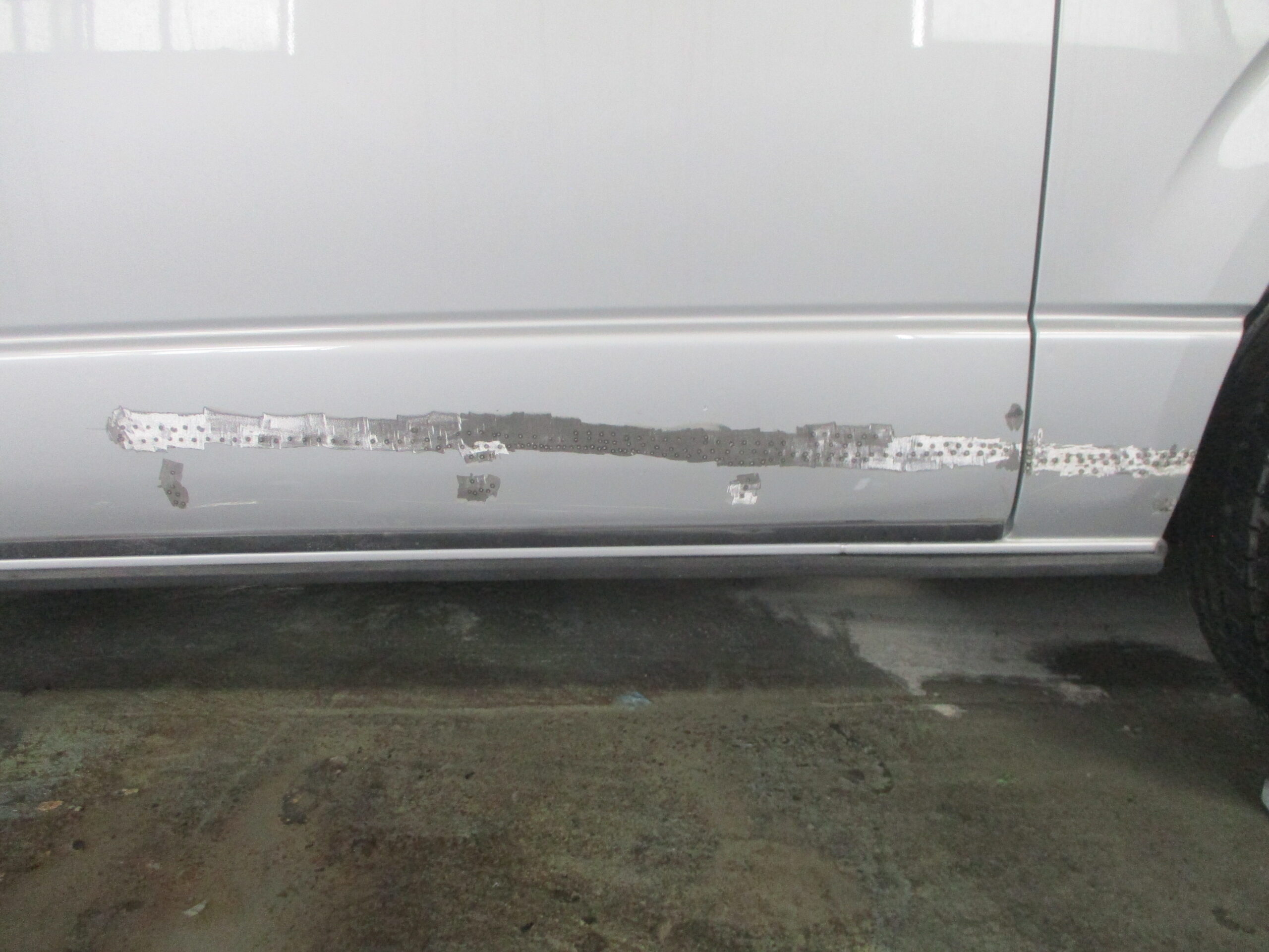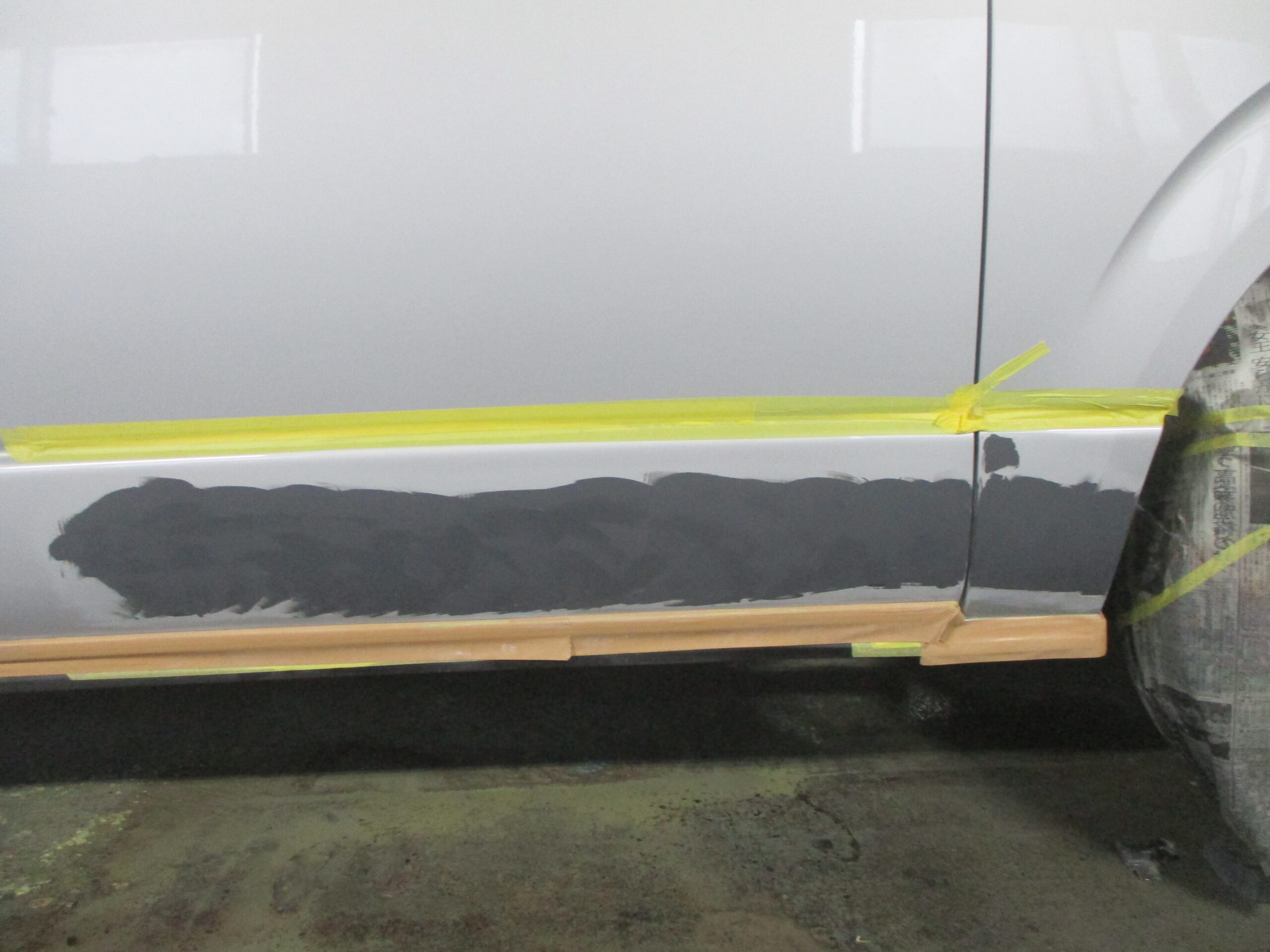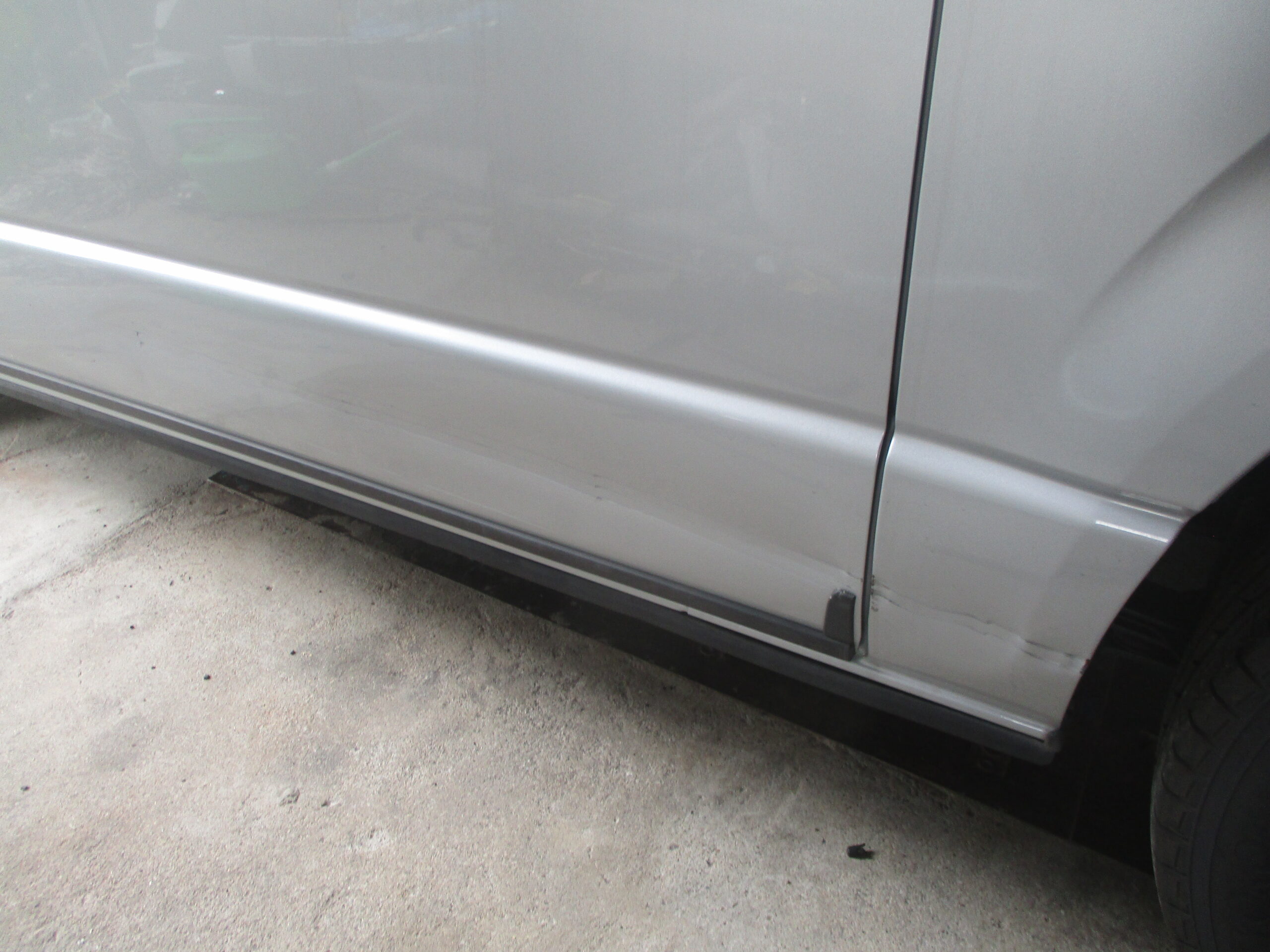 ハイエースのスライドドアの下の方からリアクォータのタイヤハウスまで、横に一本のヘコミが入っています。