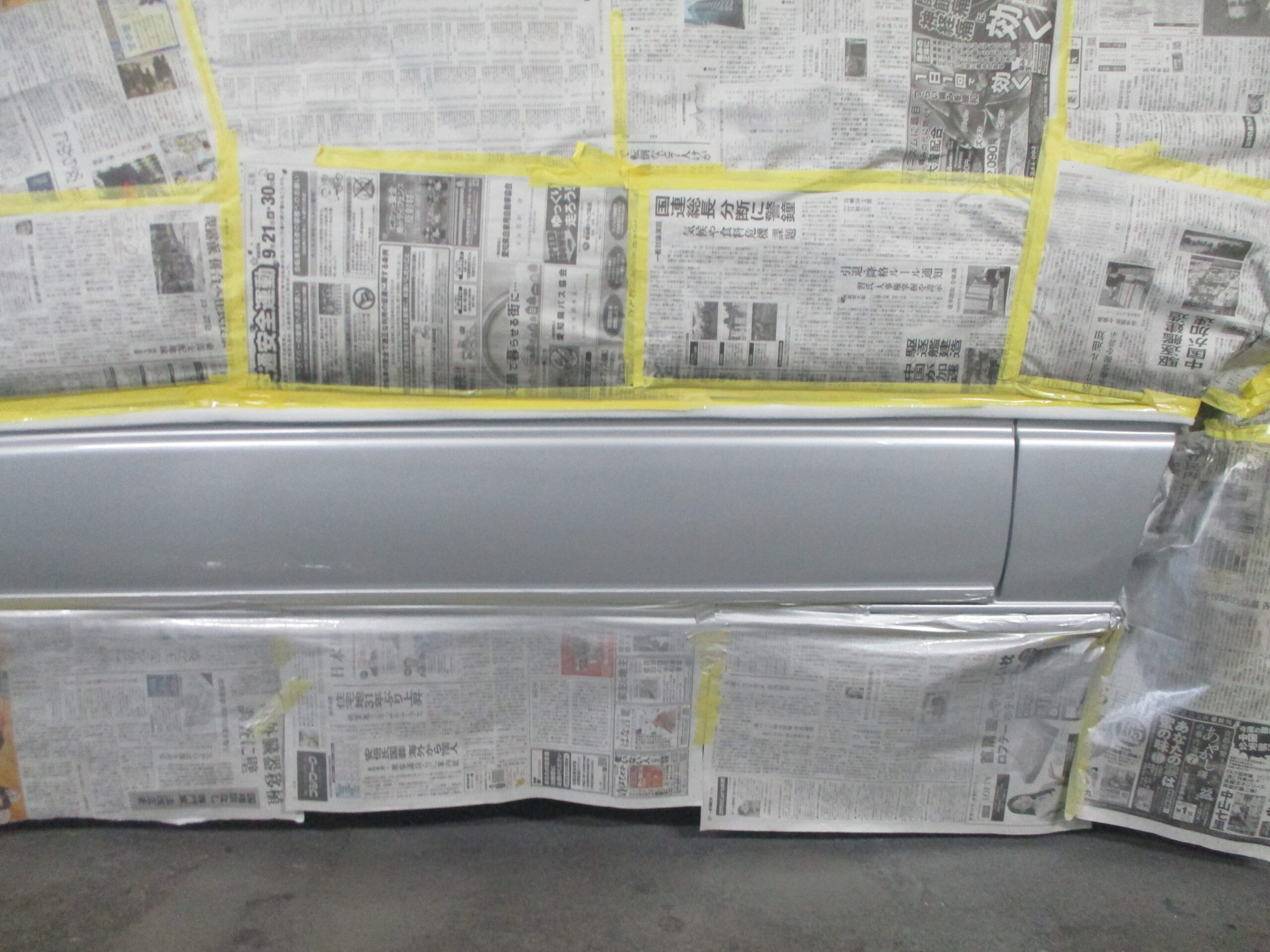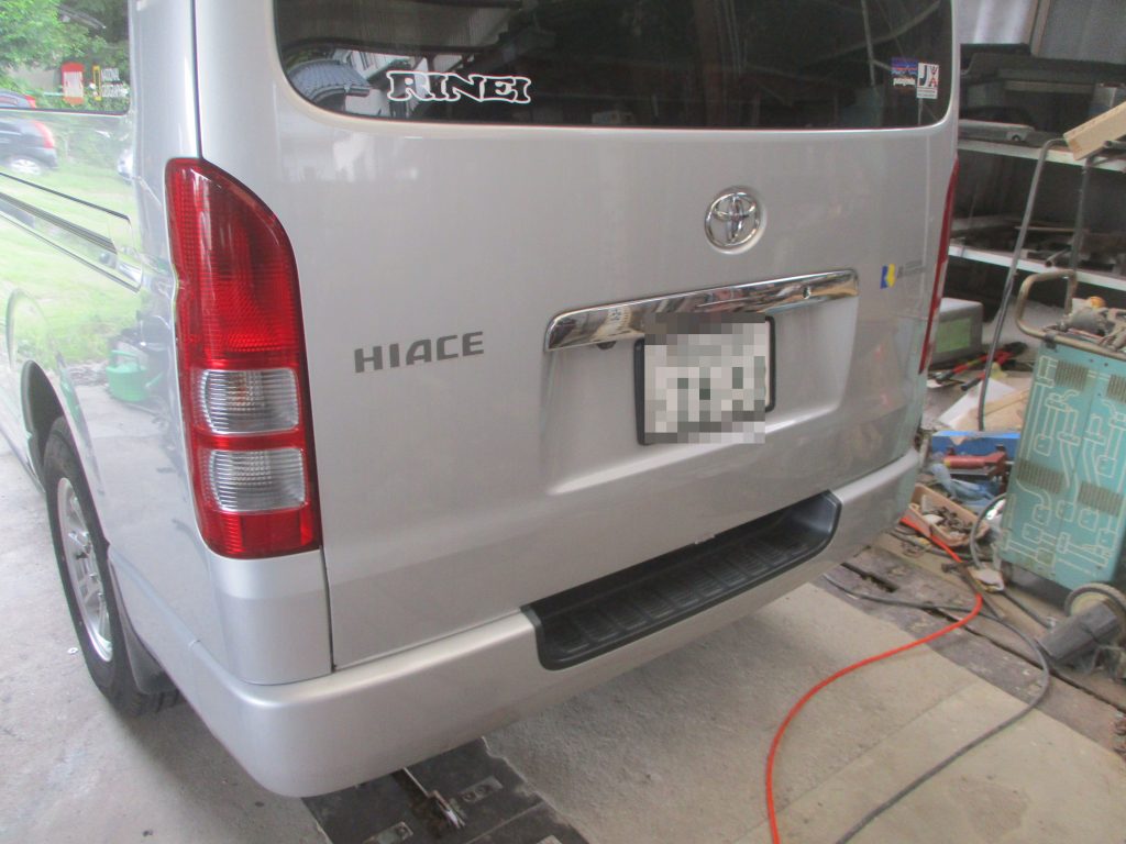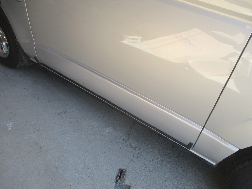 ハイエースのスライドドアの下の方からリアクォータのタイヤハウスまで、横に一本のヘコミが入っています。