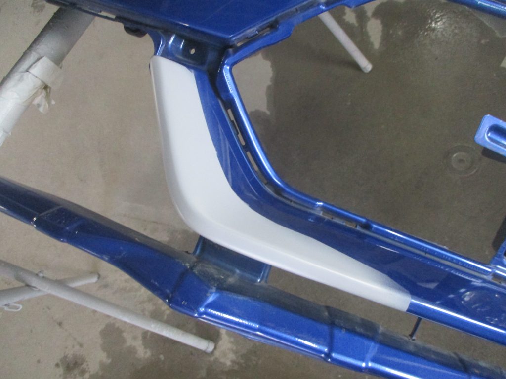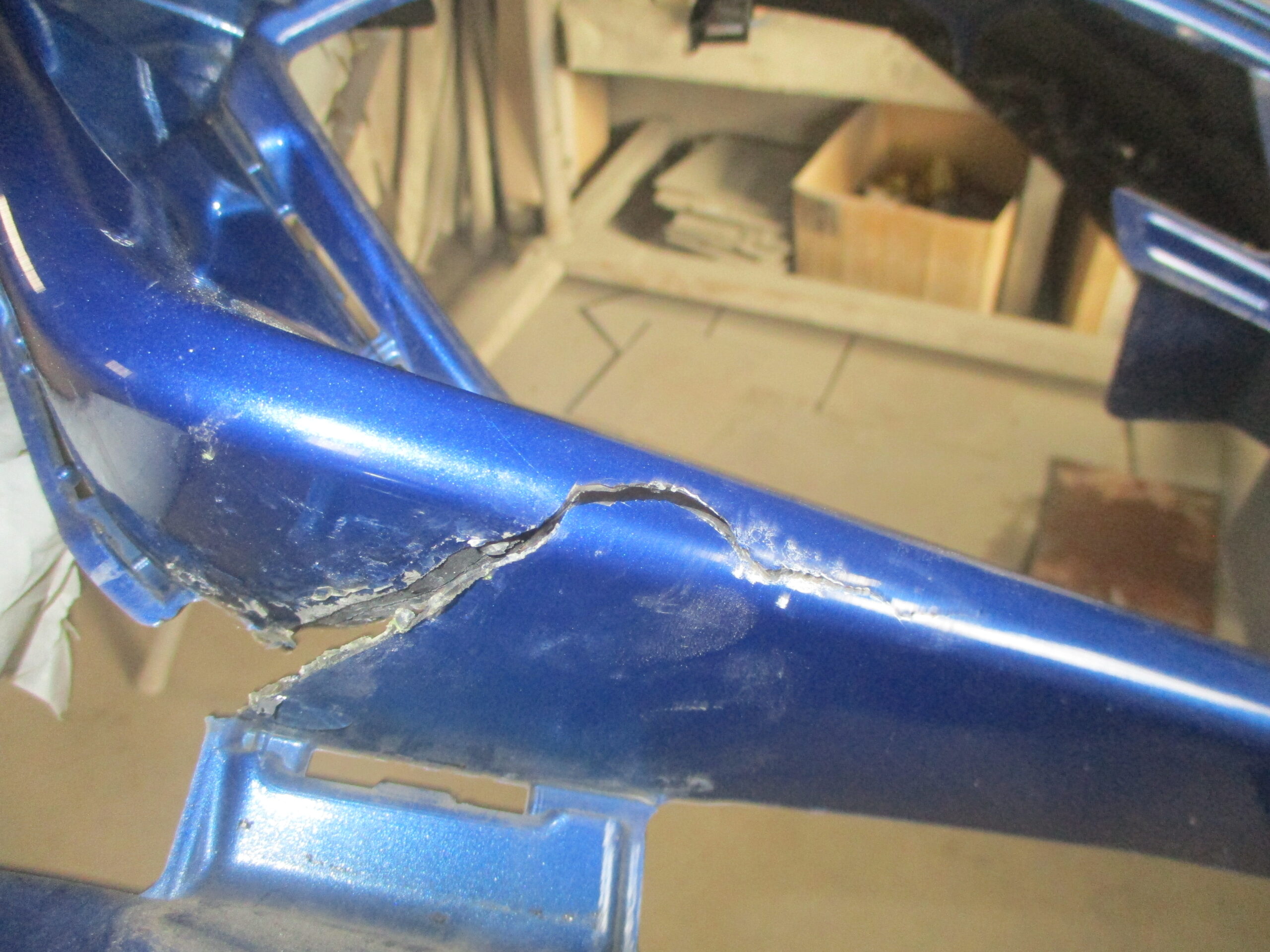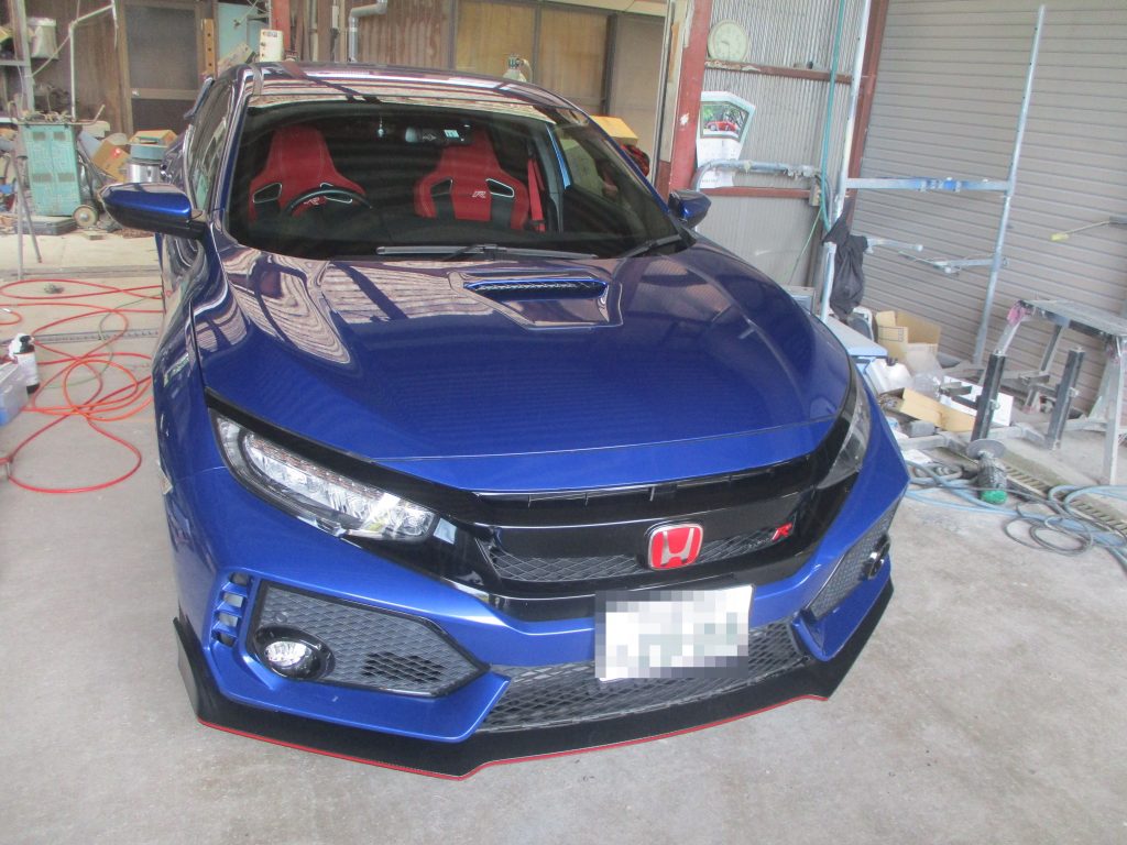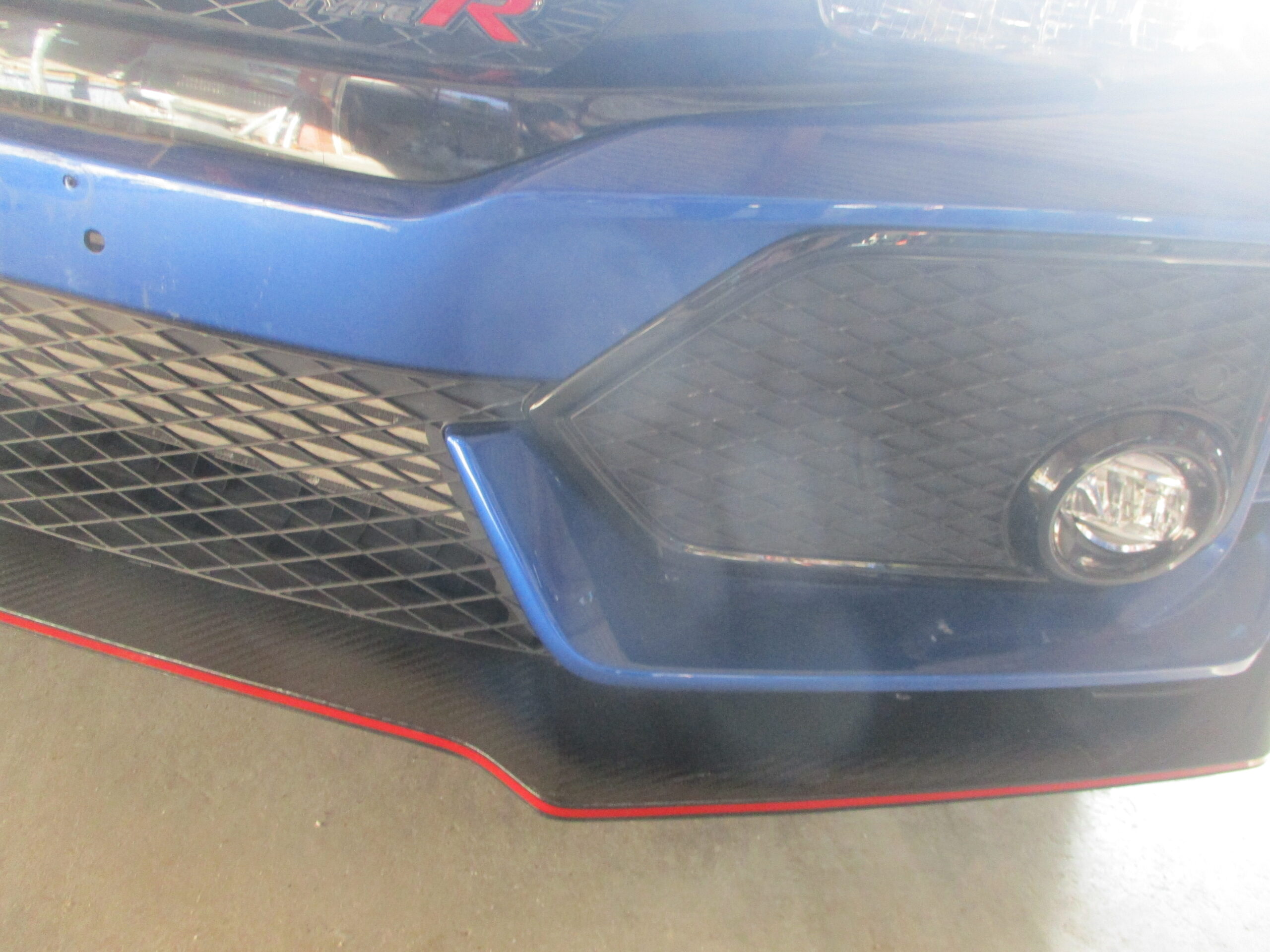 フロントバンパーの右の下側が割れていて素地の断面が少し見えています。今回はシビックタイプRの新品バンパーが高額なのと取り寄せても1ヶ月以上掛かるので修理となりました。