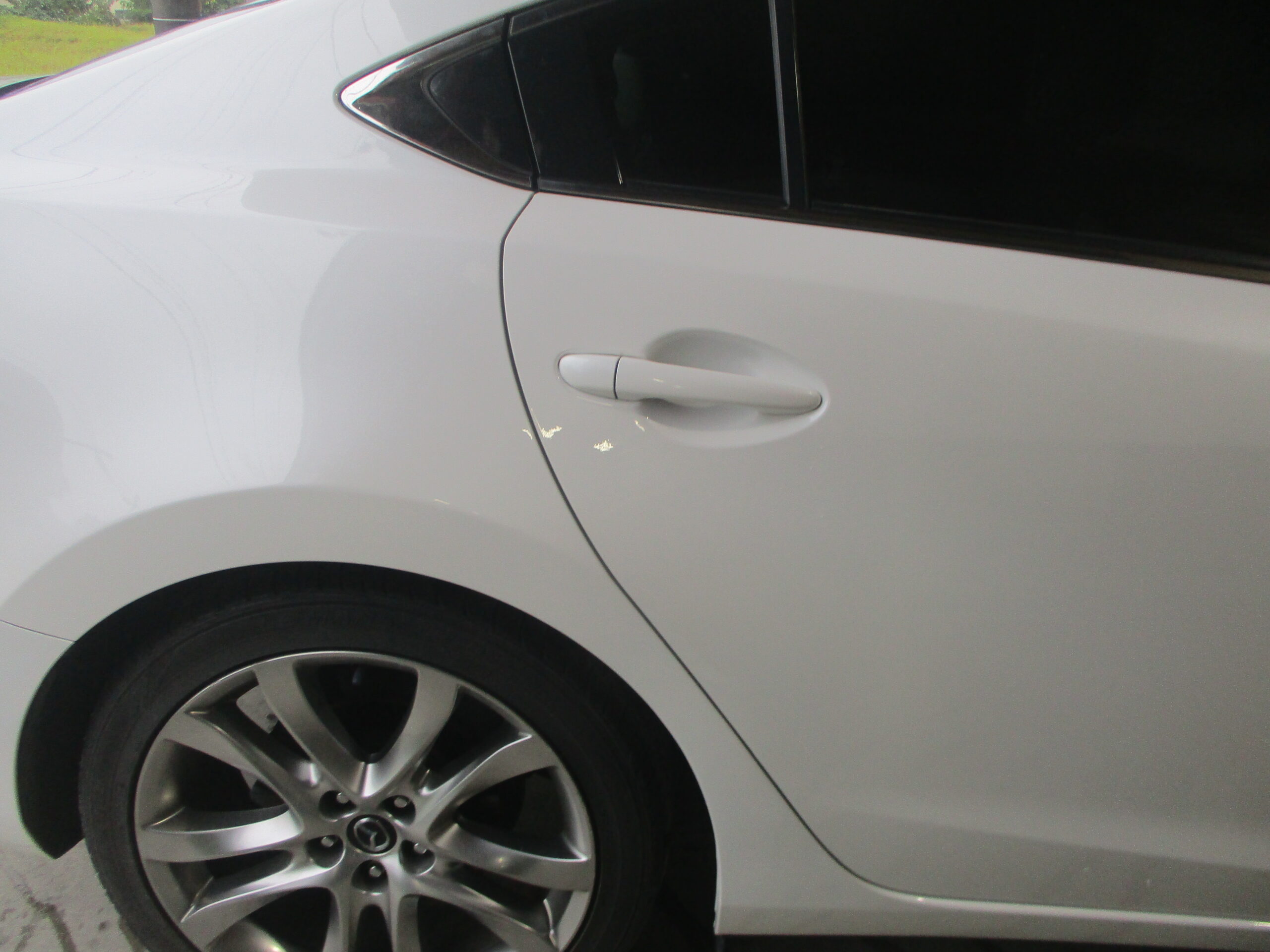 小牧市のお客様からマツダ・アテンザの右リアドアと右リアクォータのキズ・ヘコミによる板金・塗装のご依頼をいただきました。