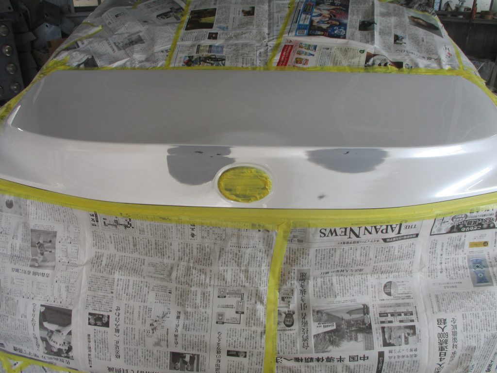今回はトランクの修理ですが、バックで操作してた最中に間違って後ろの障害物に当ててしまったとの事です。画像に写っていませんがもう一つ小さいヘコミがあります。
