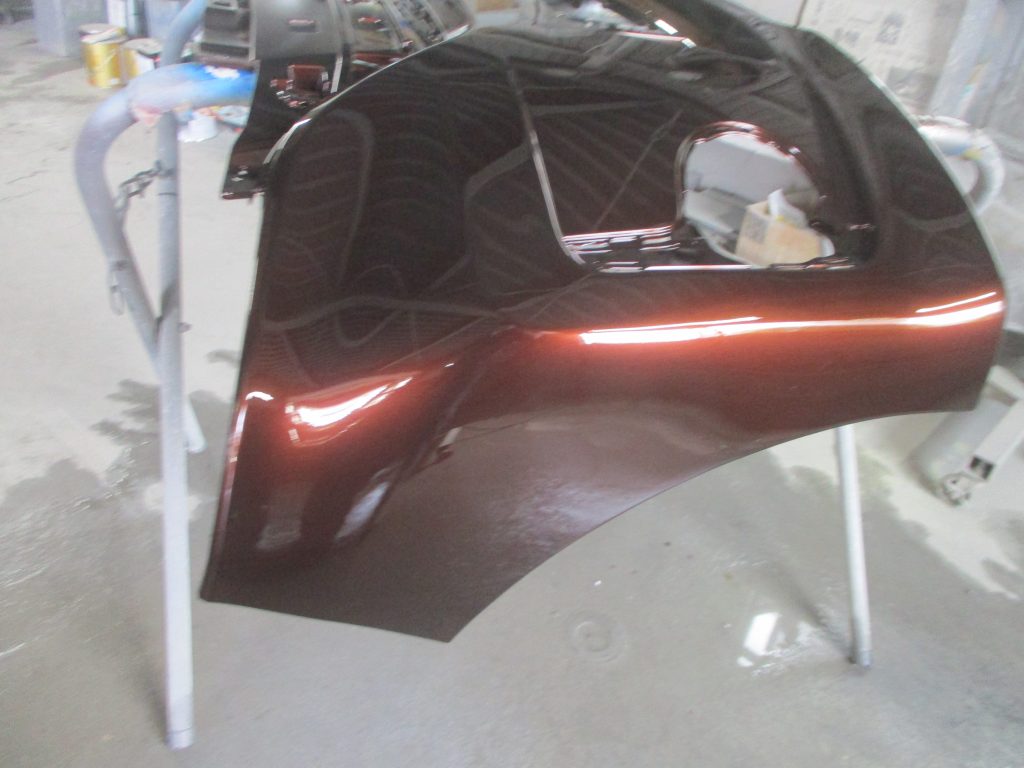 塗装後はスタンドに置いたまま電熱器で20分乾かして、バンパーの付属品を付けて車体に組み付けたら、最後にポリッシャーで全体的に磨いたらこちらで修理完了となります。修理した後が分からなくなりましたね(≧▽≦)