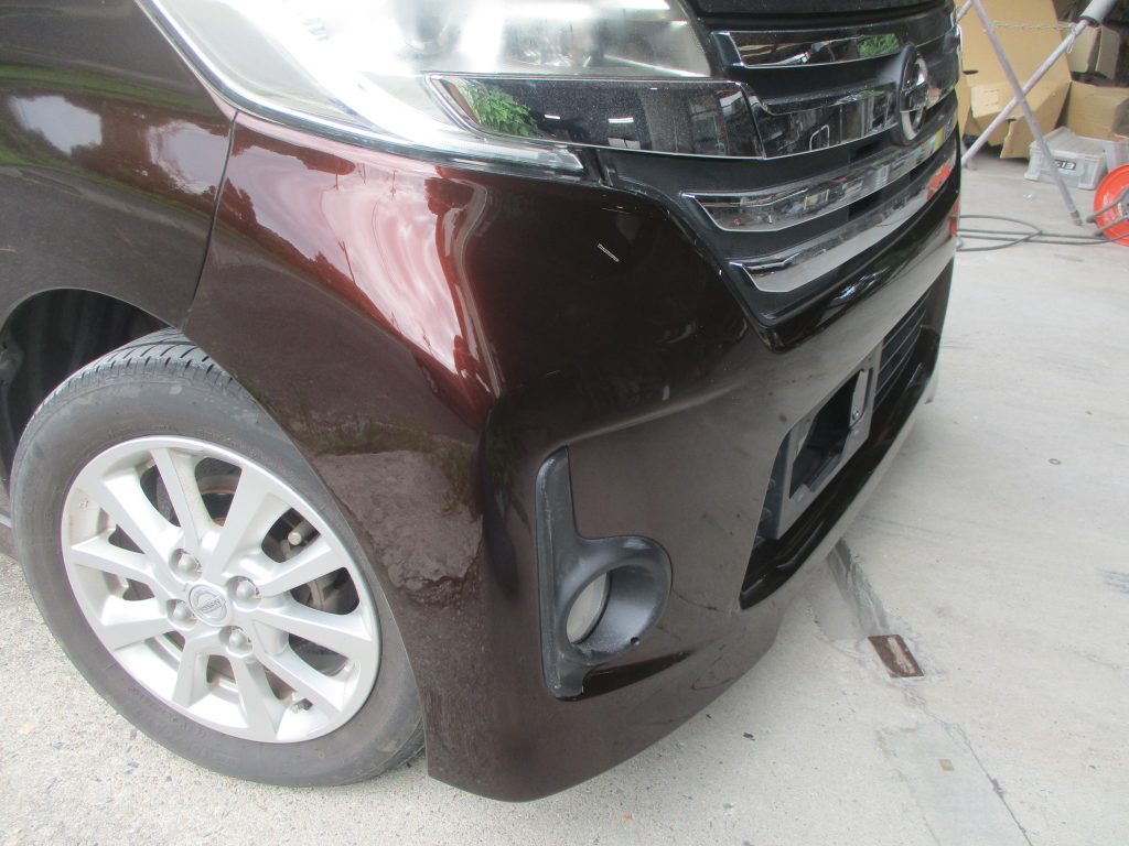 小牧市のお客様から日産・ルークスのフロントバンパーのヘコミの板金・塗装のご依頼をいただきました。