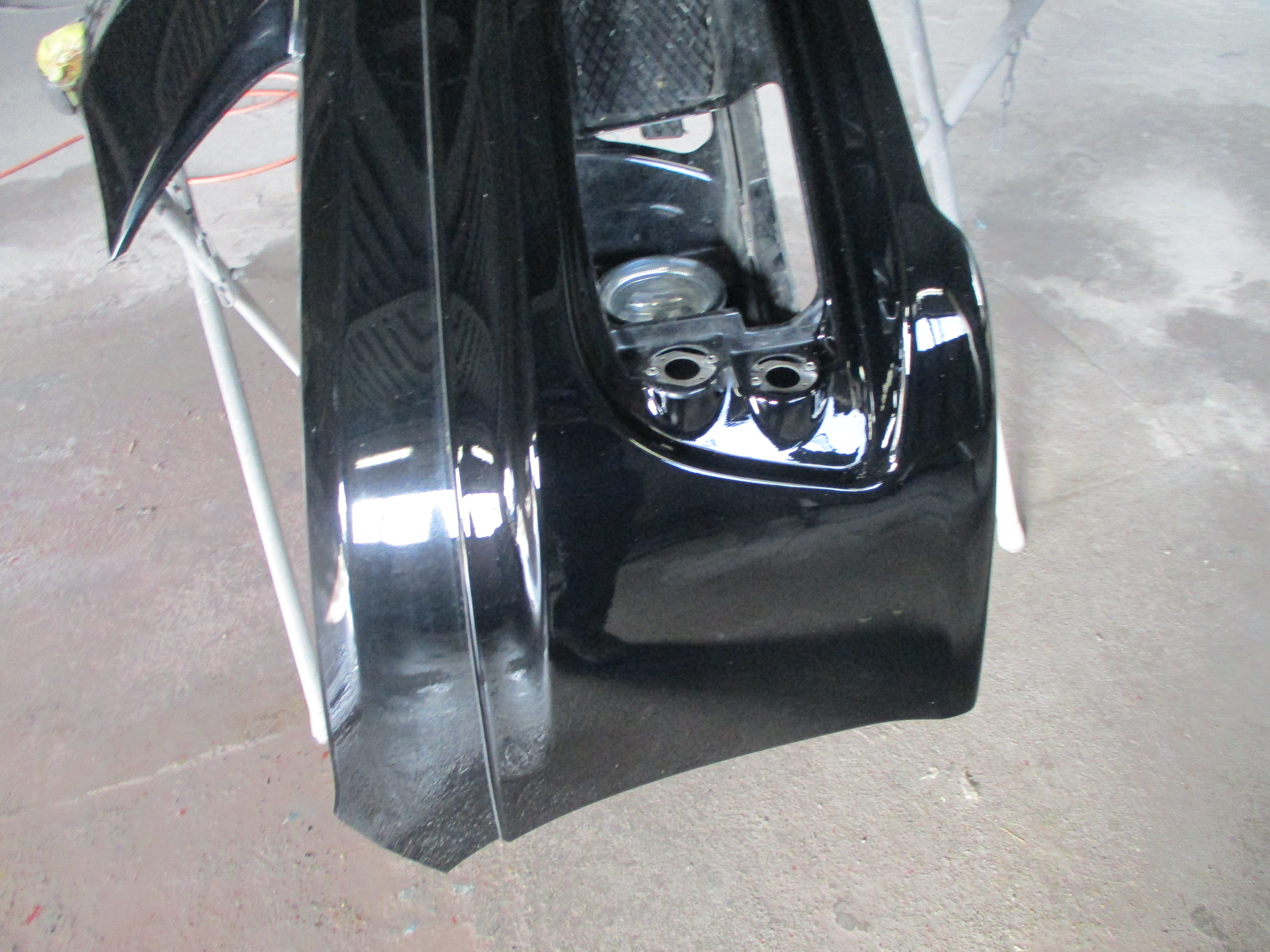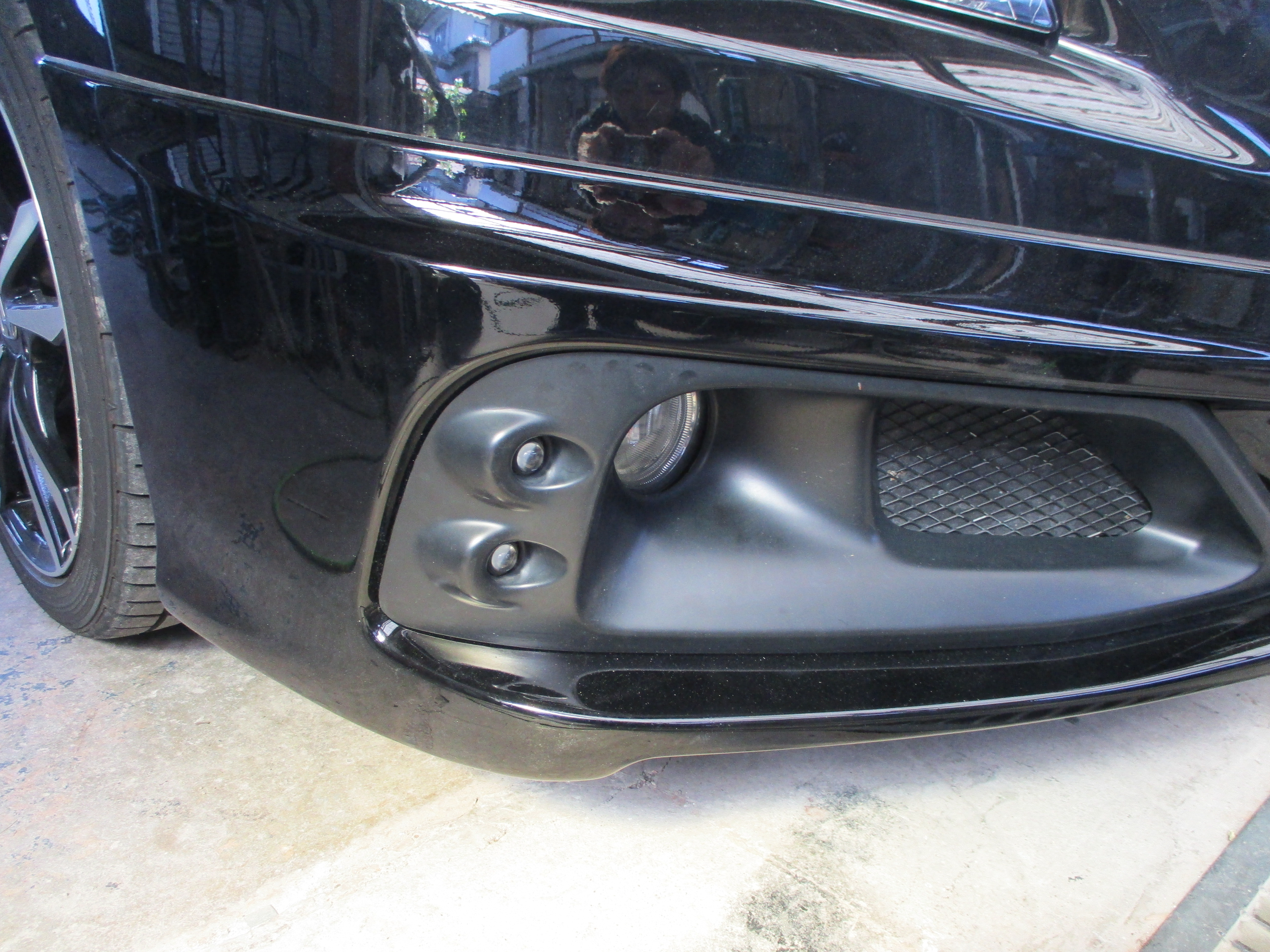 塗装が終わりましたら、ヒーターでしっかり炙り乾燥させてフォグカバーとライトを付けたらバンパーをボディーに取り付けて、塗装で付着したブツとホコリを削り取りコンパウンド(研磨剤)をポリッシャーで丁寧に磨き上げたら、全部の施工完了となります。