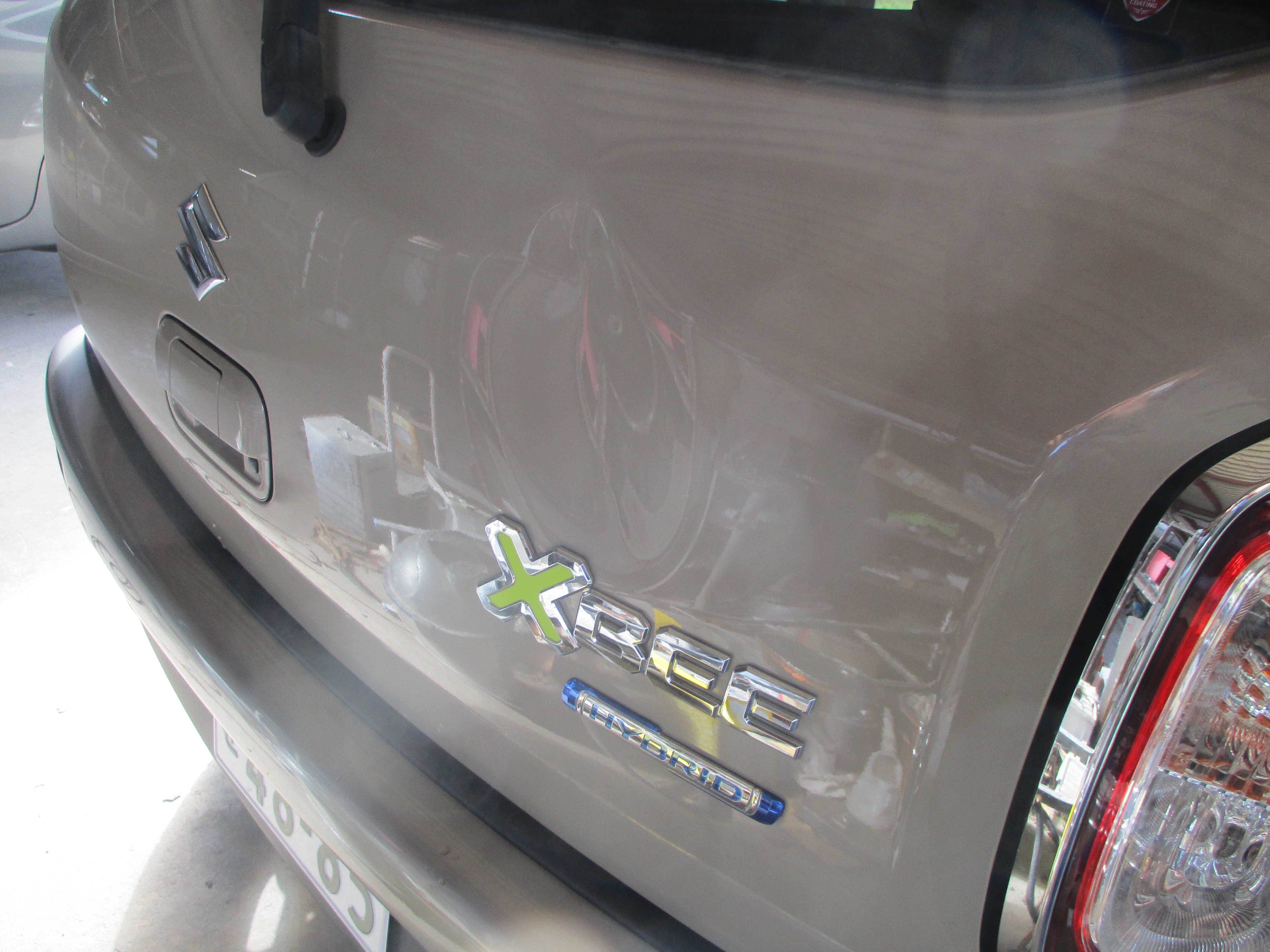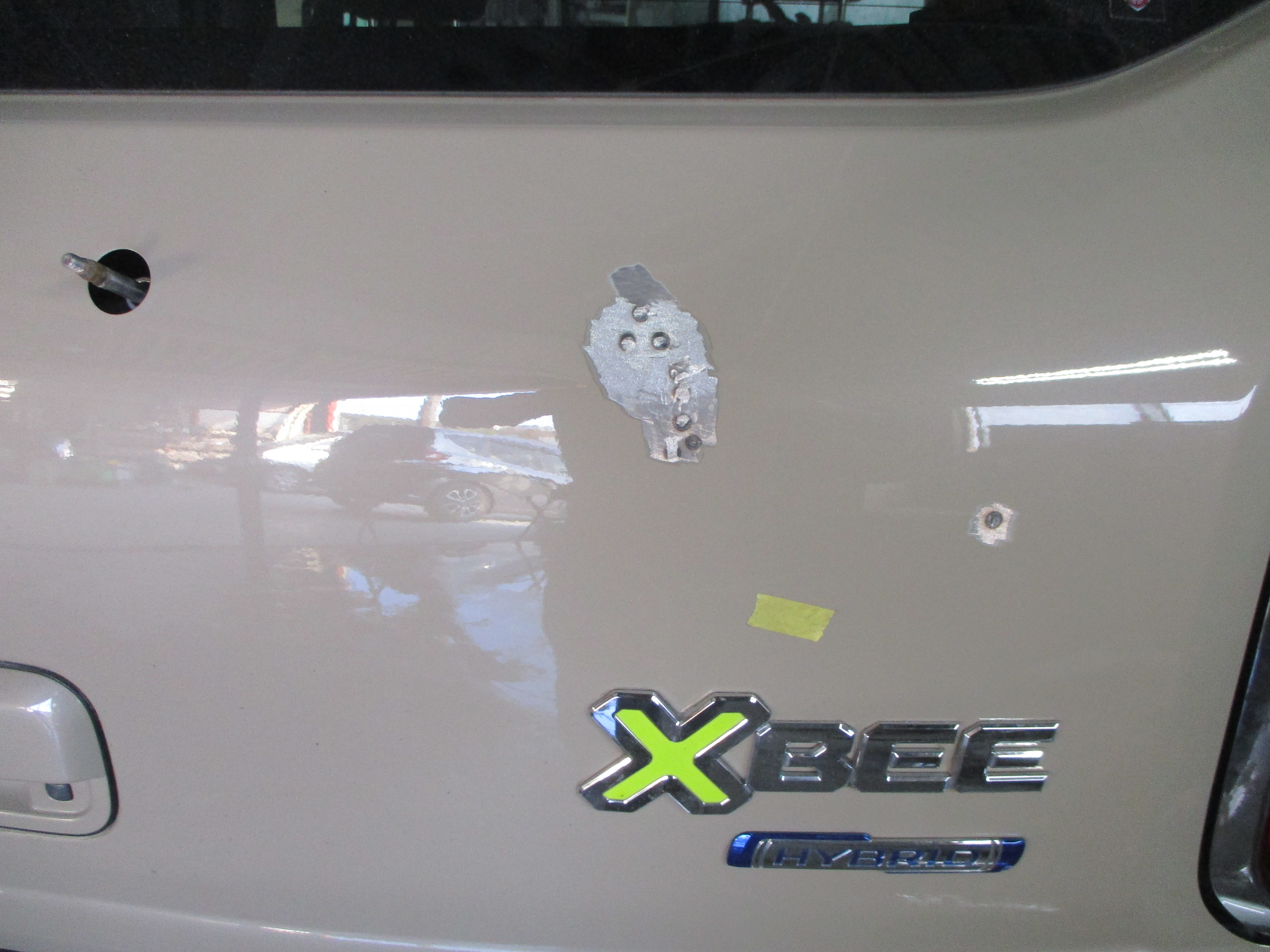 バックドアの右側のエンブレムマーク付近に丸い凹みがあります。