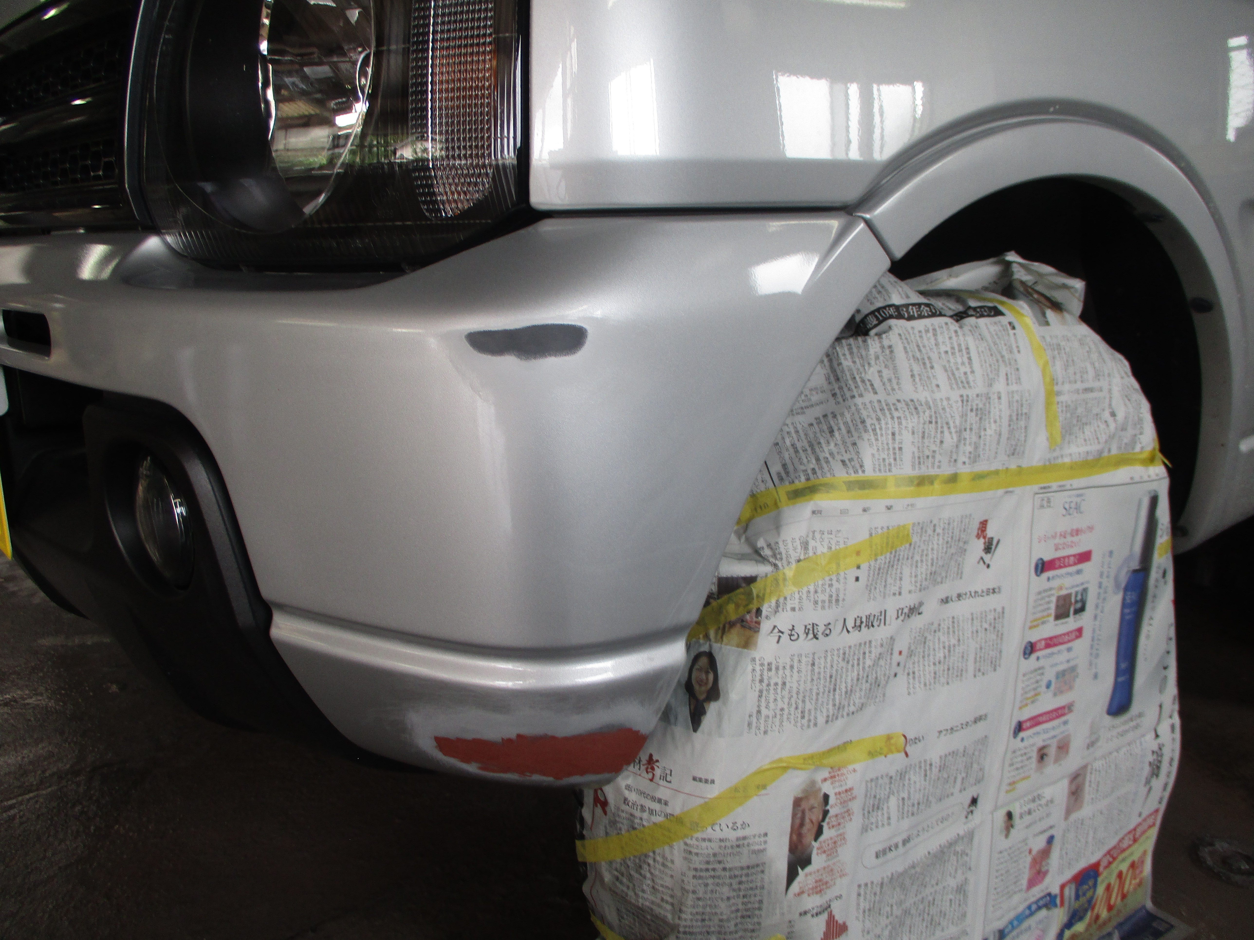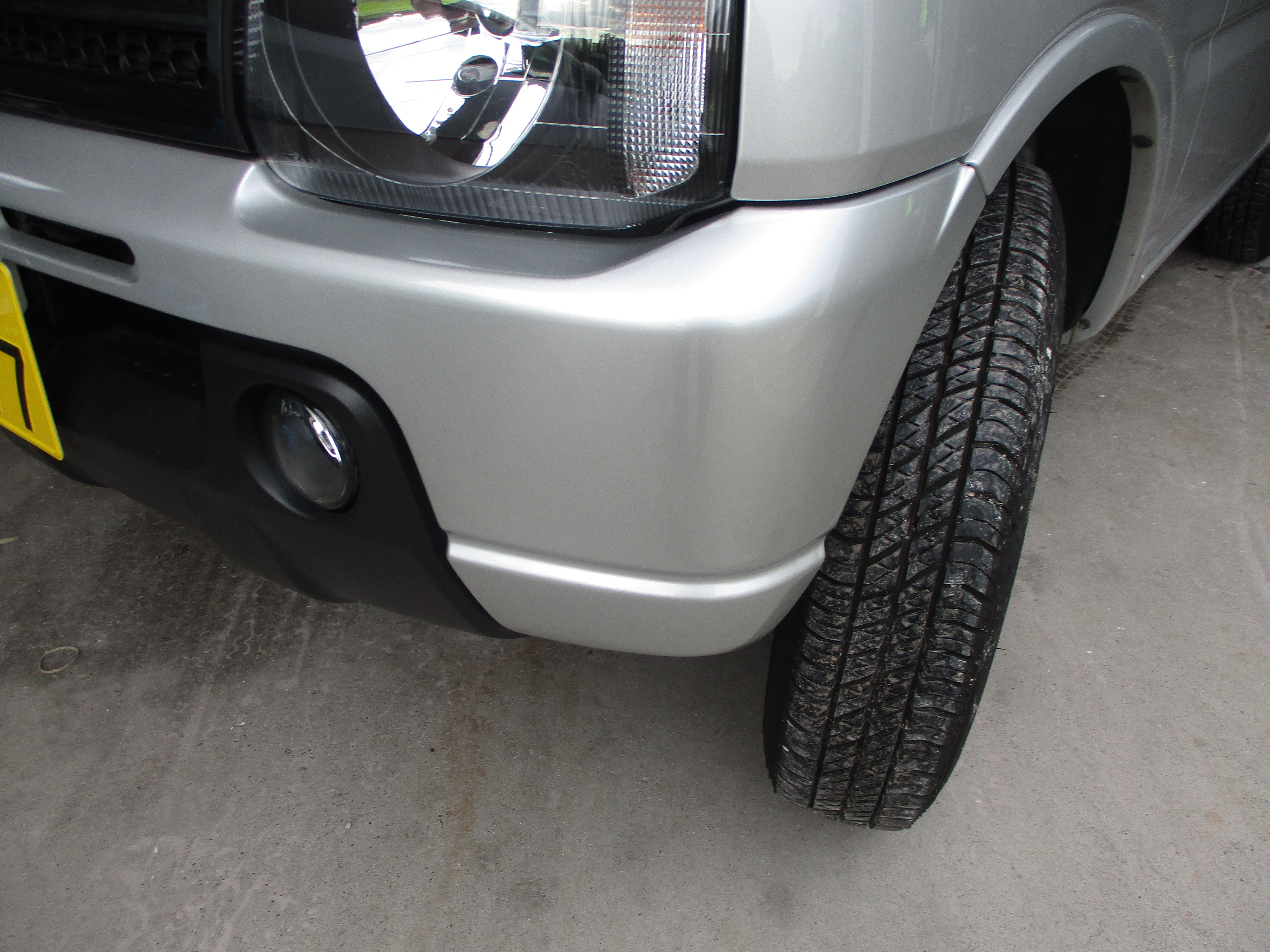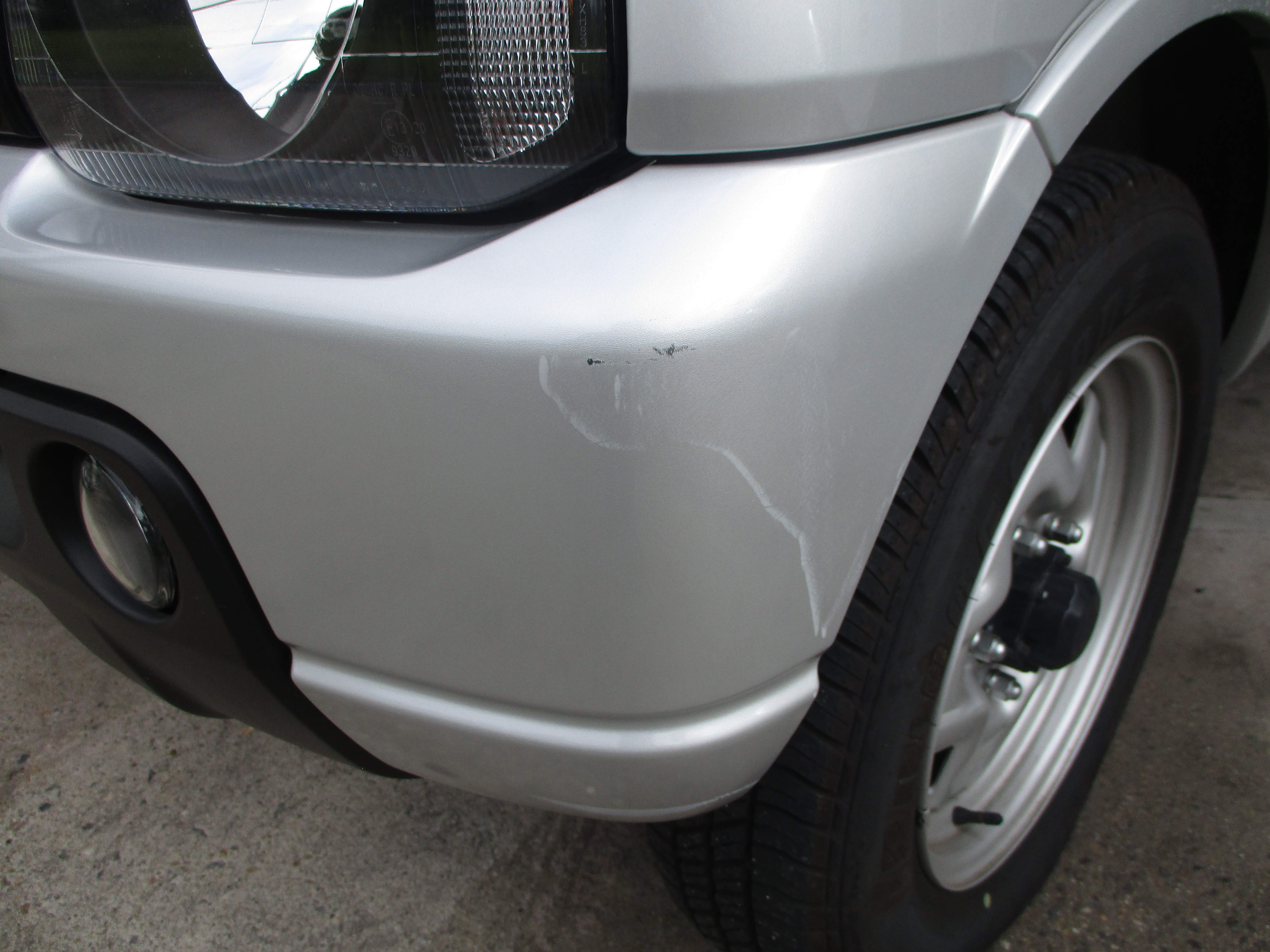 フロントバンパーの左側に小傷が数個と白い10センチ以上の線キズが入っています。