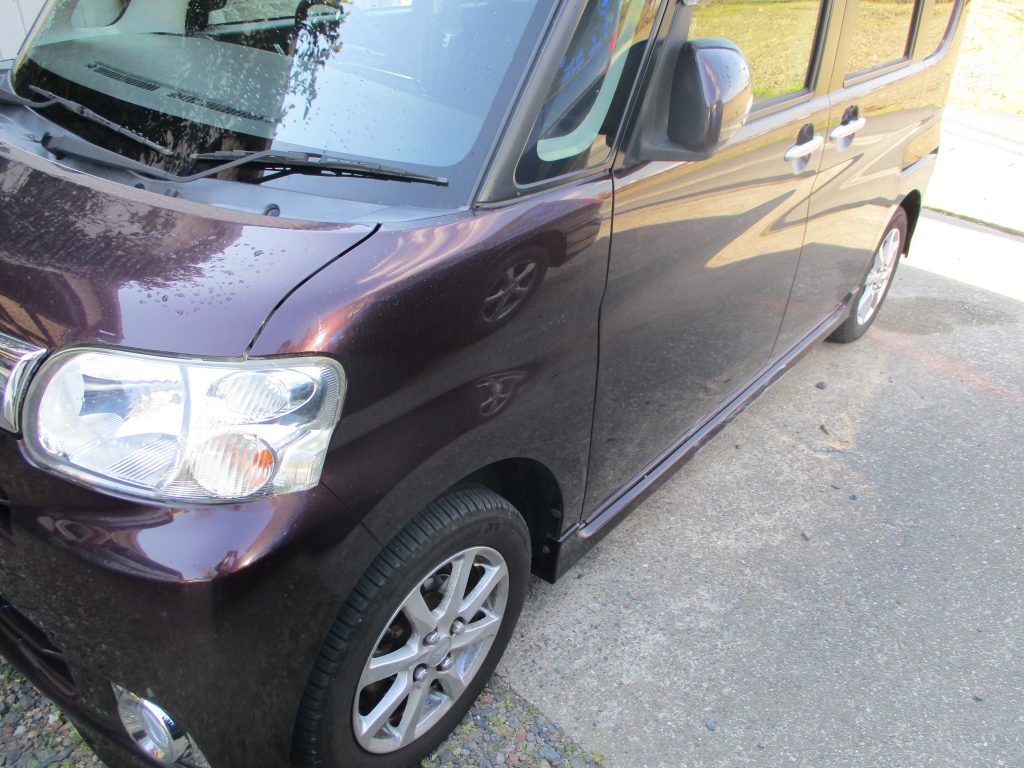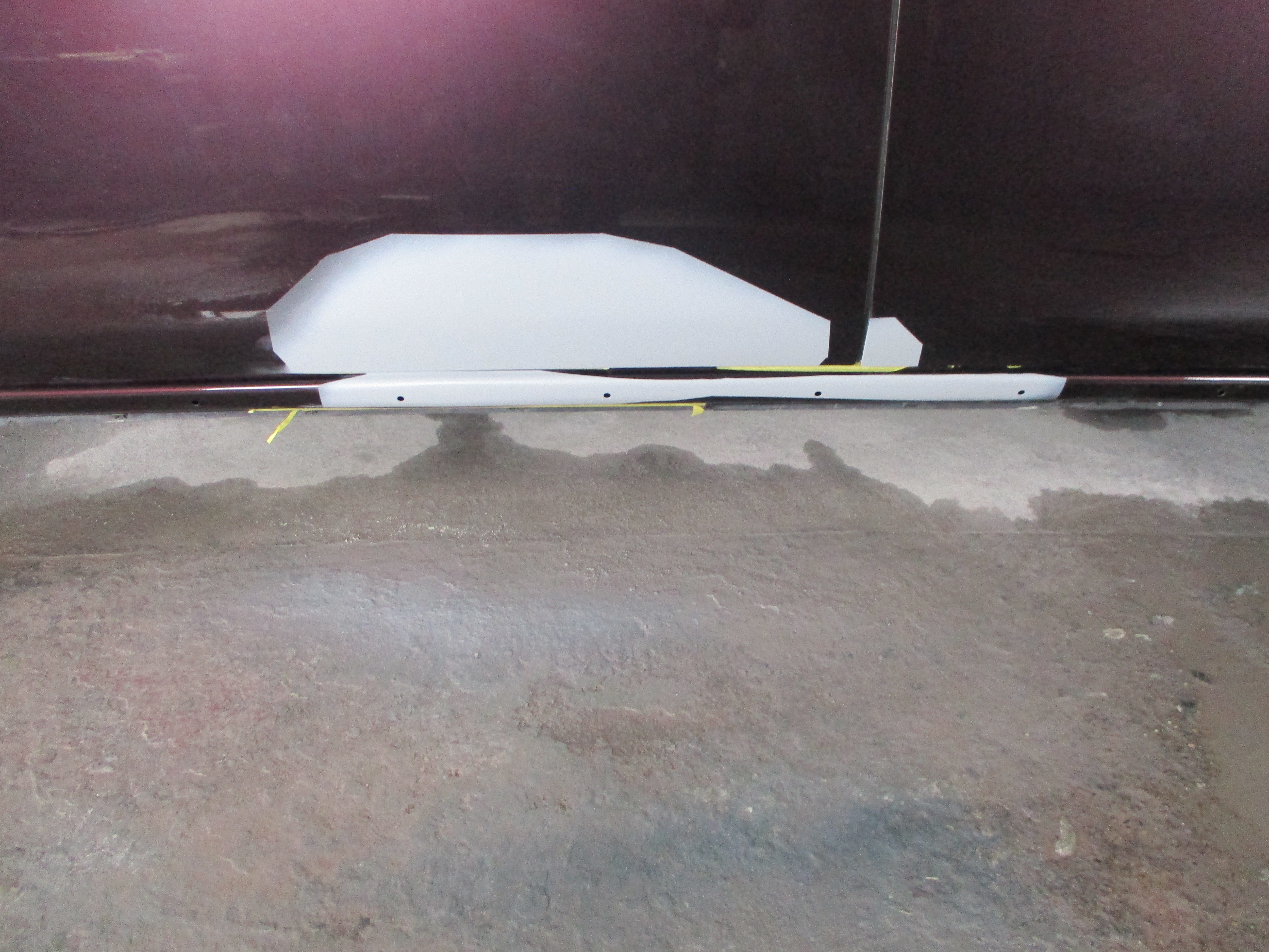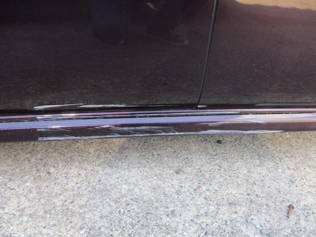 フロントドアは下側にキズとヘコミがあり、スライドドアは下側の端っこに白い小さいキズで、ステップは画像では見にくいですがヘコミがあります。サイドスポイラーは引っ掻いたようなキズが見えますね。お客様からは低いブロックに擦ってしまったとおっしゃってました。よくありがちな案件ですね(~_~;)
