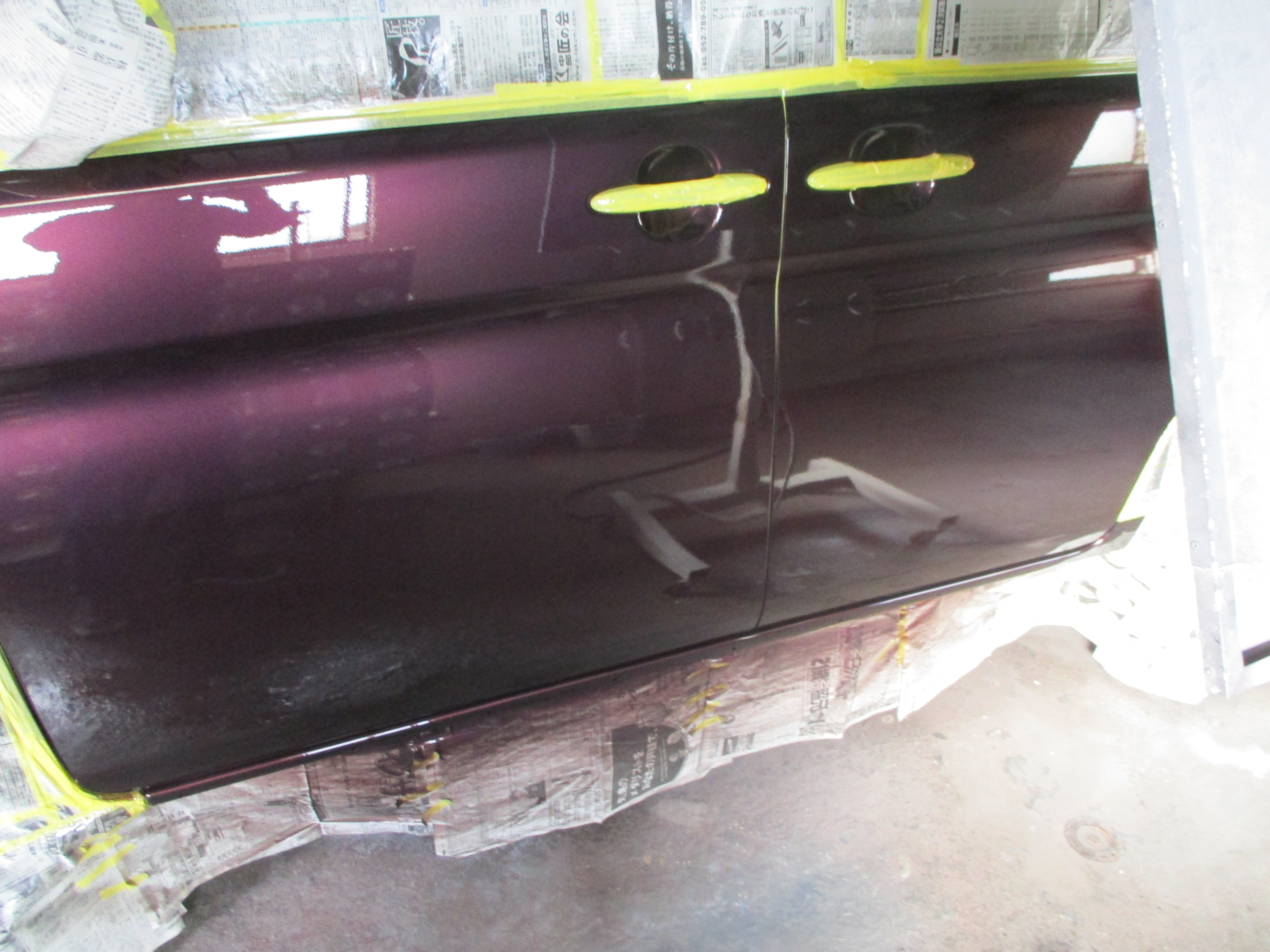 乾燥後に塗装肌に付いた細かいブツやホコリをカッターと2000番のペーパーを使い削りとり、削った後は丁寧にコンパウンドで全体を磨いて肌を仕上げていきます。そして最後にサイドスポイラーを取り付けて作業完了です。