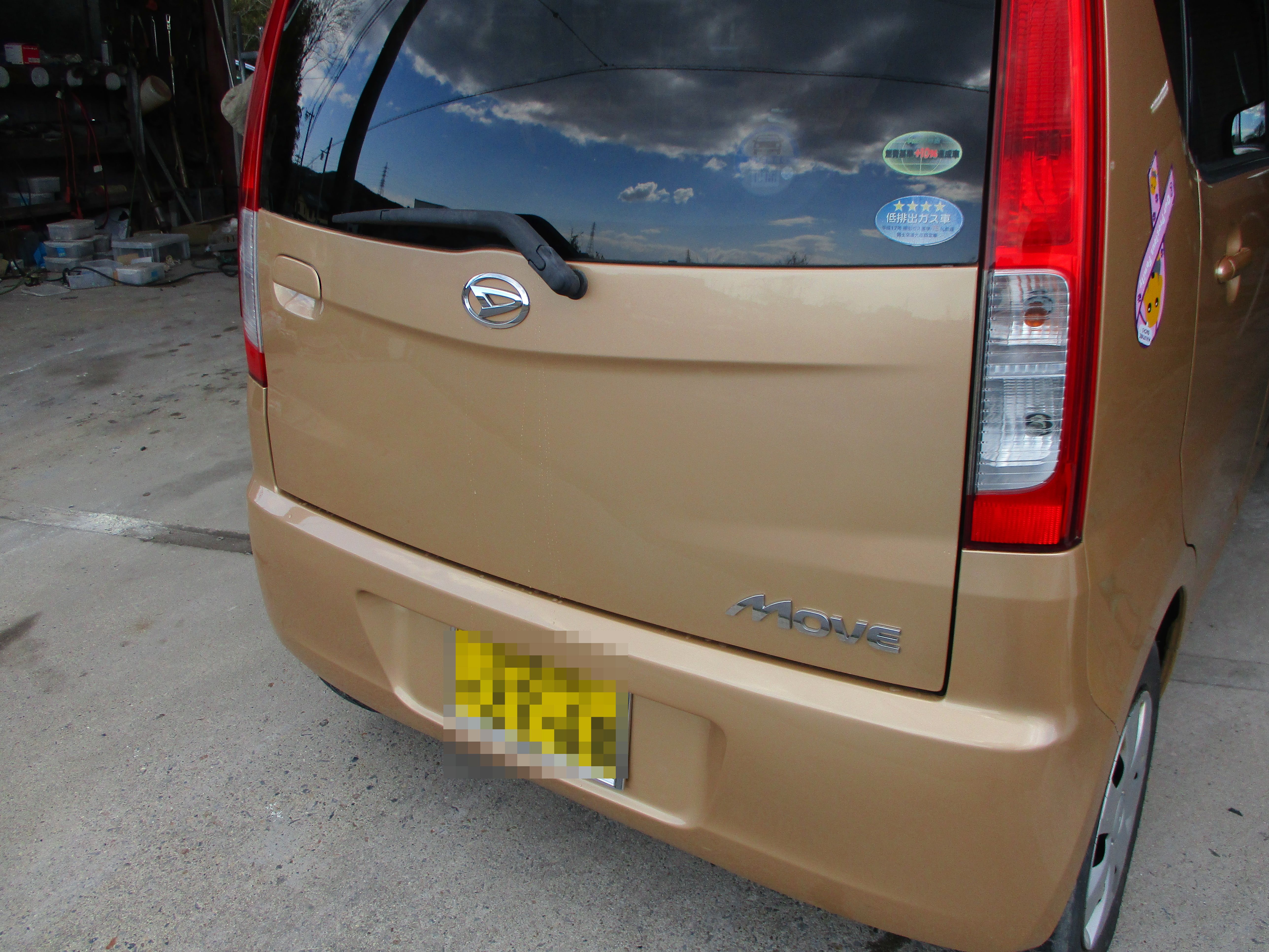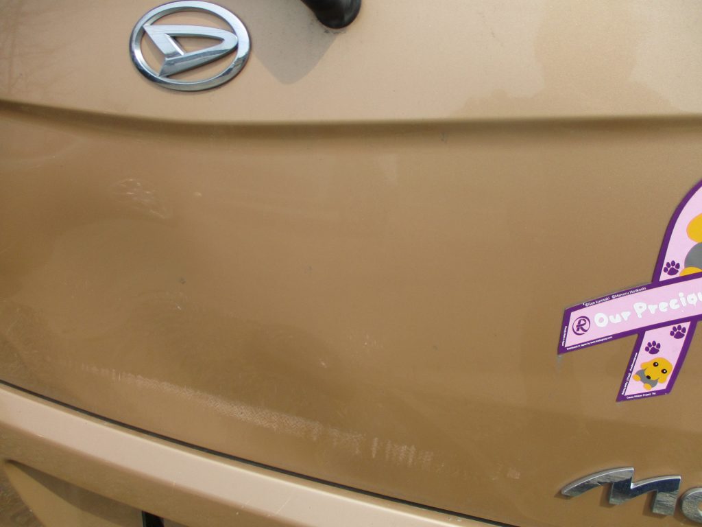 バックドア真ん中に幅が30センチぐらいのヘコミがあり、追突された影響でバックドアの締まりも悪く、閉めても半ドアランプも付き放しです。