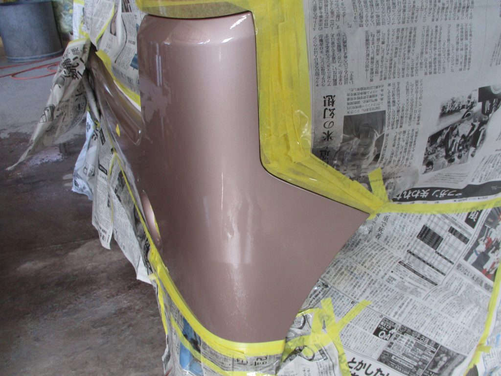 そして色合わせをして車体に色合いが合うように何度も調色してから、養生してカラー塗装していきます。