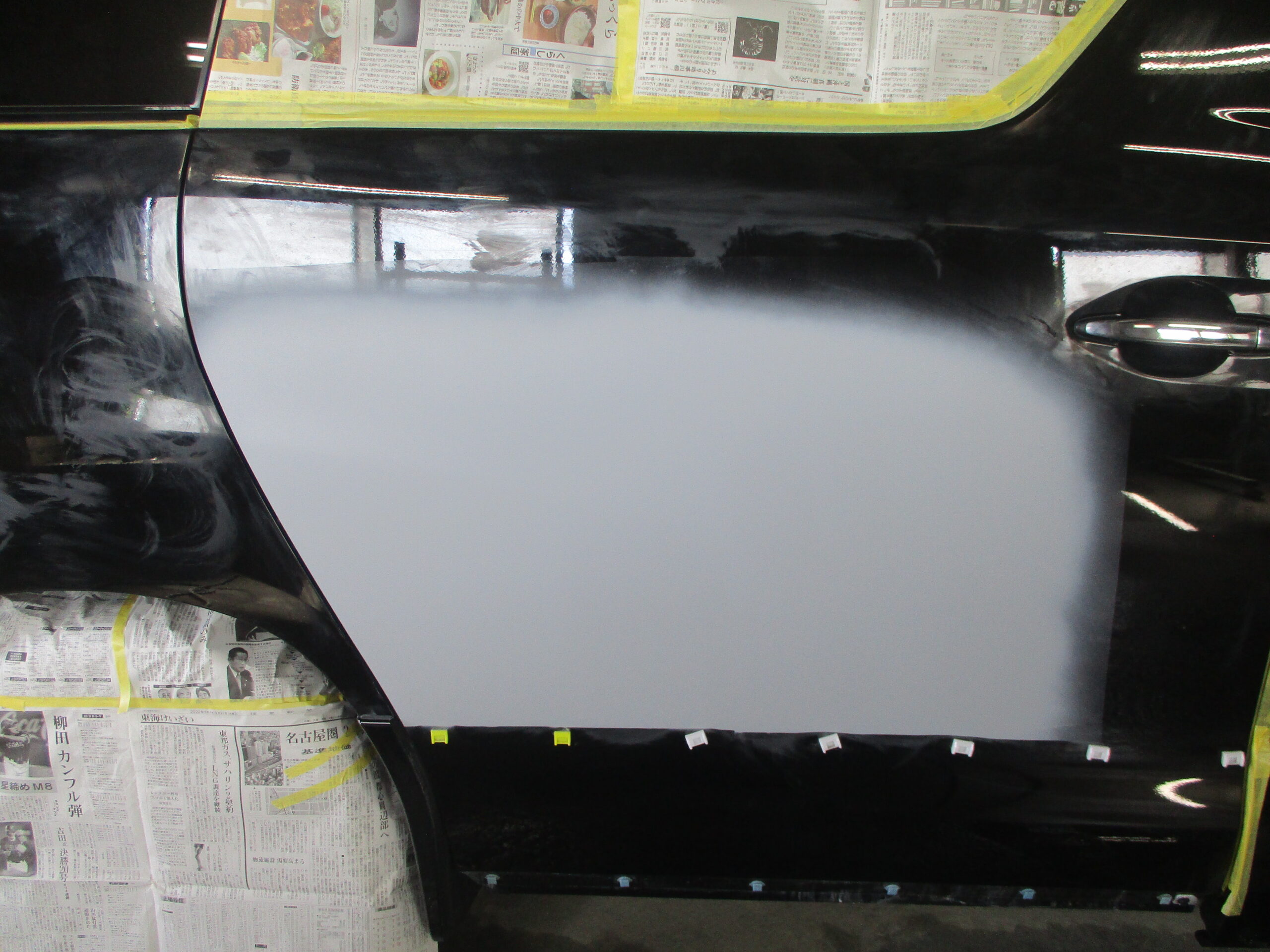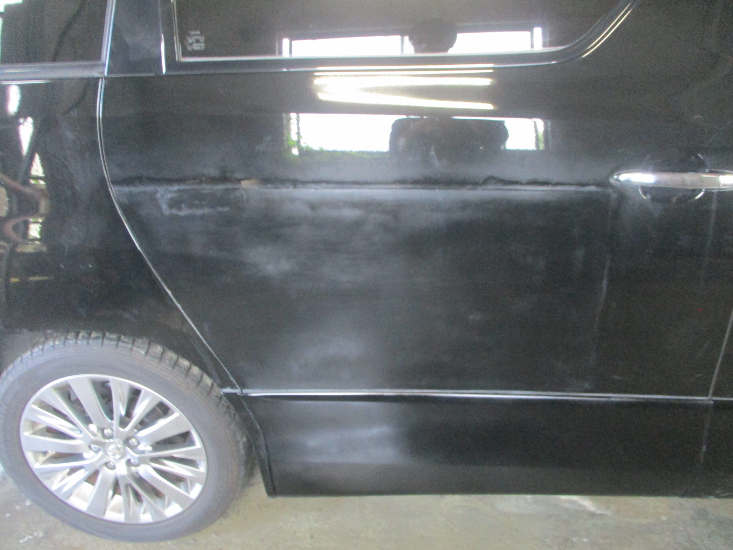 今回は再塗装の依頼ですが、スライドドアに傷が入っていてお客様ご自身で塗装されたのですが、上手くいかずに綺麗に塗装したいとご相談をいただきました。