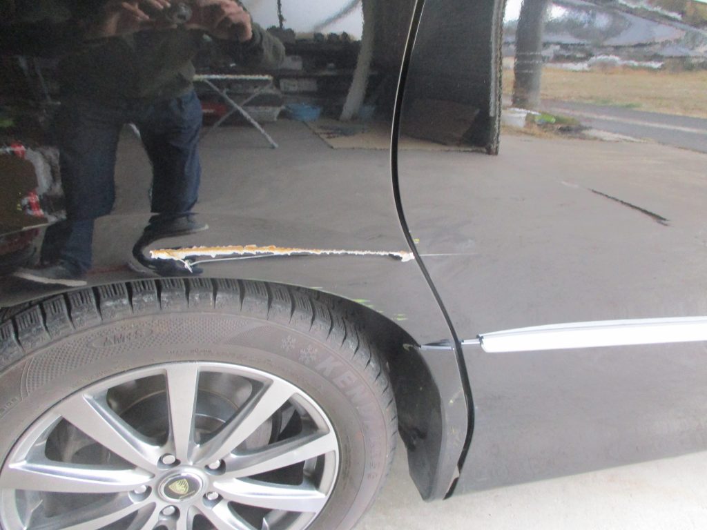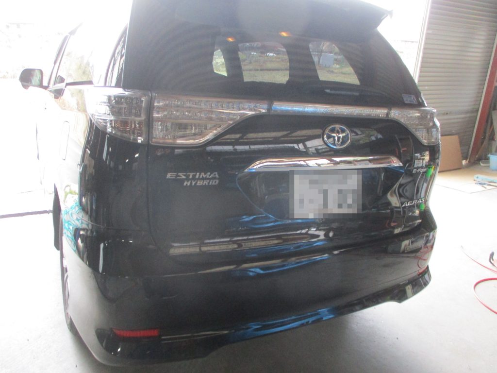 エスティマのリアクォータが横に深く凹んでいて傷もあります。スライドドアにも少しキズヘコミがあり、下のカバーも損傷がありリアクォータ側は安価ですので部品交換します。