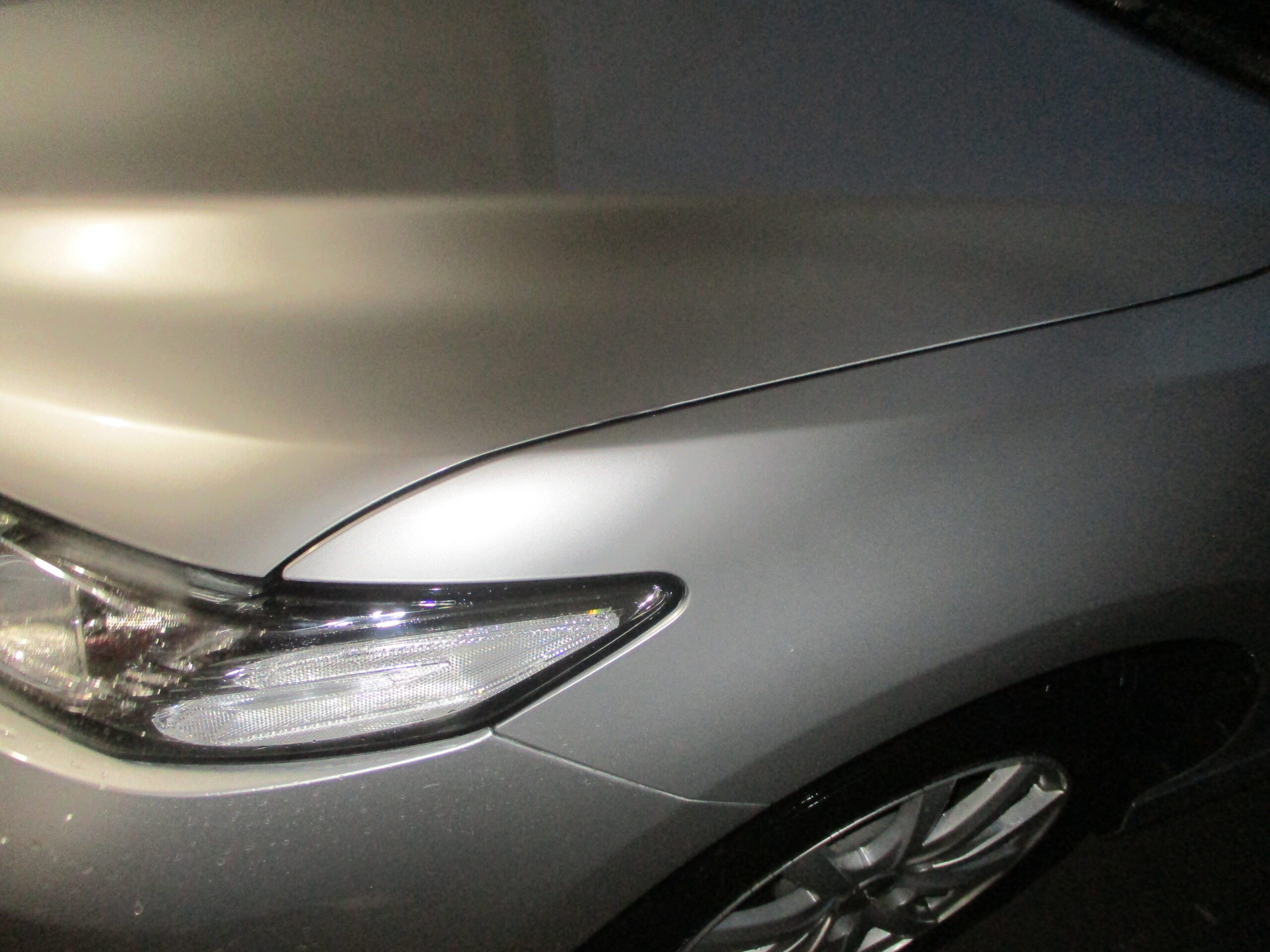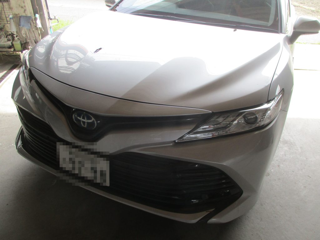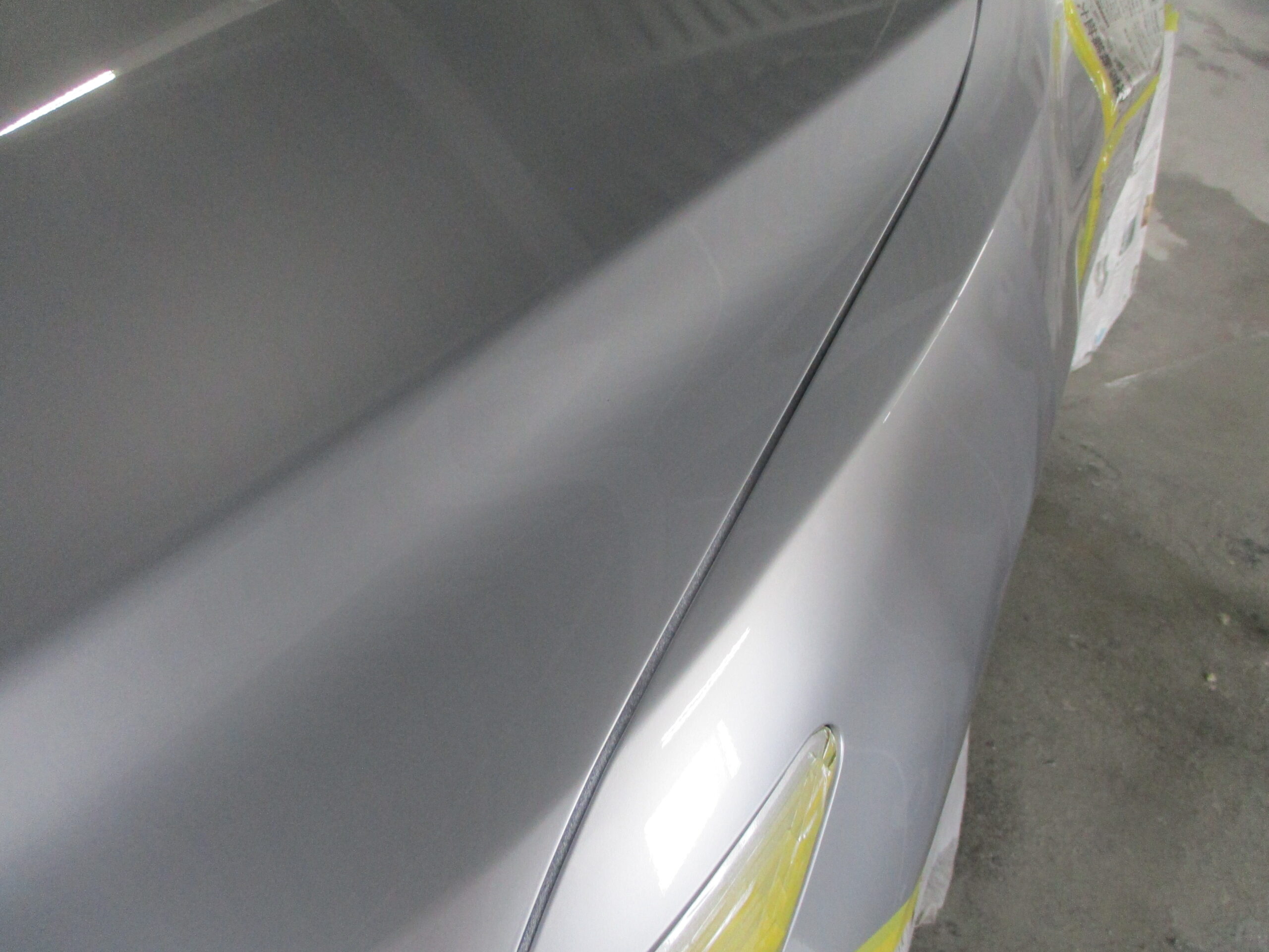 インターネットで検索していて弊社のホームページをご覧になってお電話をいただきました。今回はボンネットとフロントフェンダーに又いで15センチぐの傷と凹みがあります。