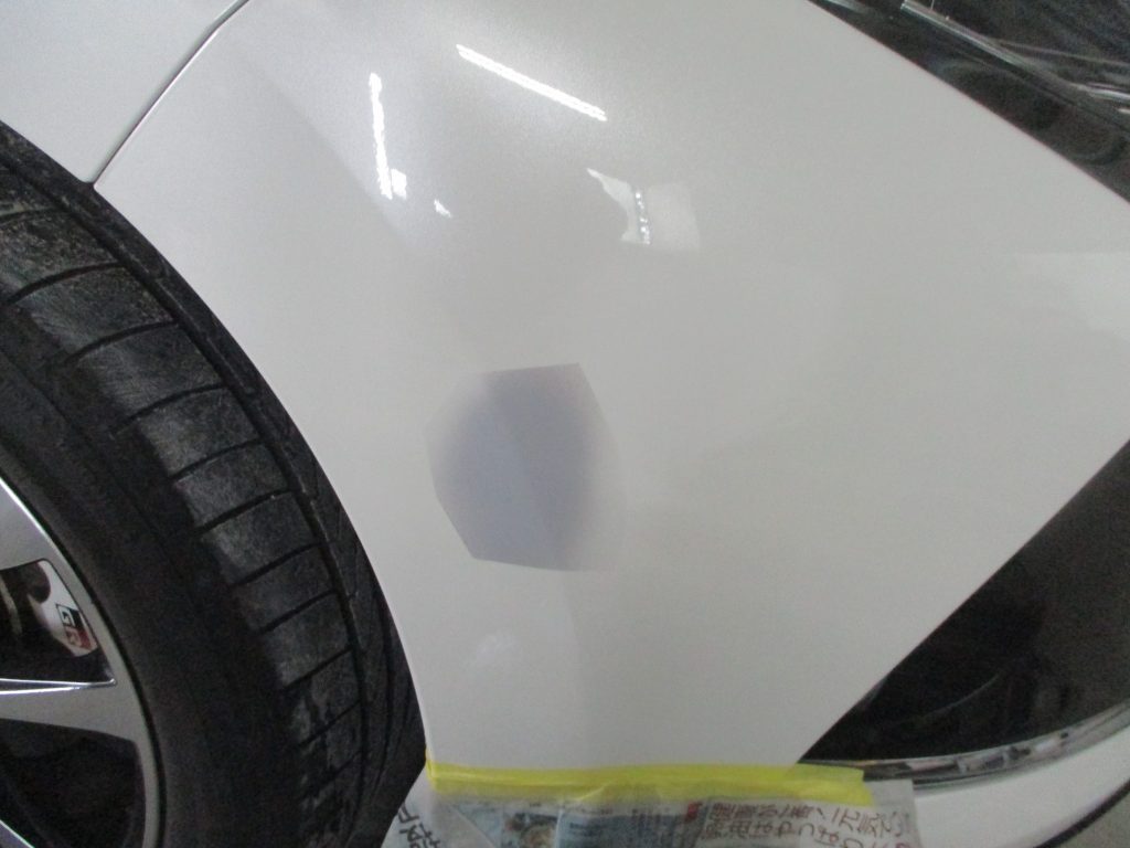 まず損傷箇所に機械で塗装を削っていき、その後にパテで埋めてから熱を加えて乾燥したら形を作っていきます。最後にサフェーサーを塗装して表面を仕上げていきます。