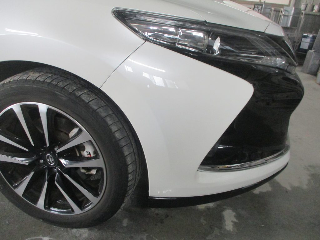 春日井市のお客様からトヨタ・ハリアーのフロントバンパーのキズの塗装修理のご依頼をいただきました。