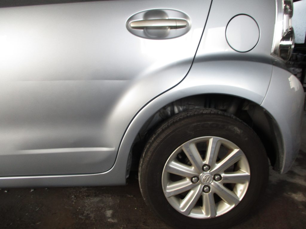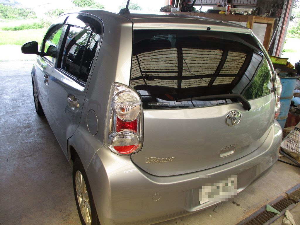 春日井市のお客様からトヨタ・パッソのリアクォータのヘコミの板金・塗装のご依頼をいただきました。