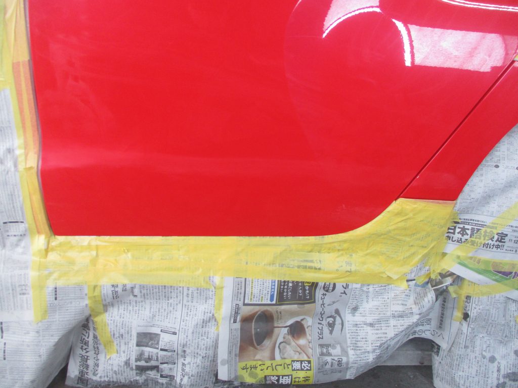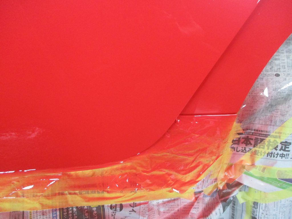 塗装が終わったらそのまま時間を置いて、20分ぐらいヒーターで乾かします。後はホコリを取り除いてポリッシャーで丁寧に磨いたら修理完了となります。