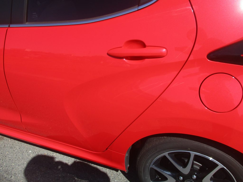 春日井市のお客様からトヨタ・ヤリスの左側面のキズの塗装修理のご依頼をいただきました。