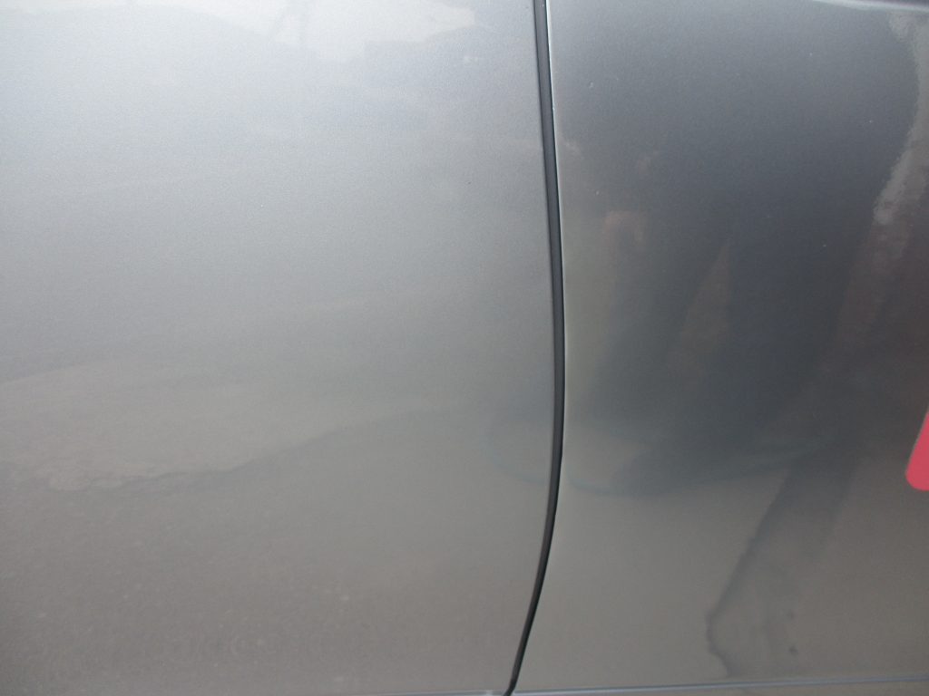 塗装後はそのまま20分ぐらい熱を加えて乾燥させてから、最後は塗装面をポリッシャーで丁寧に磨いたらフロントドアの肌をチェックして修理完了です。