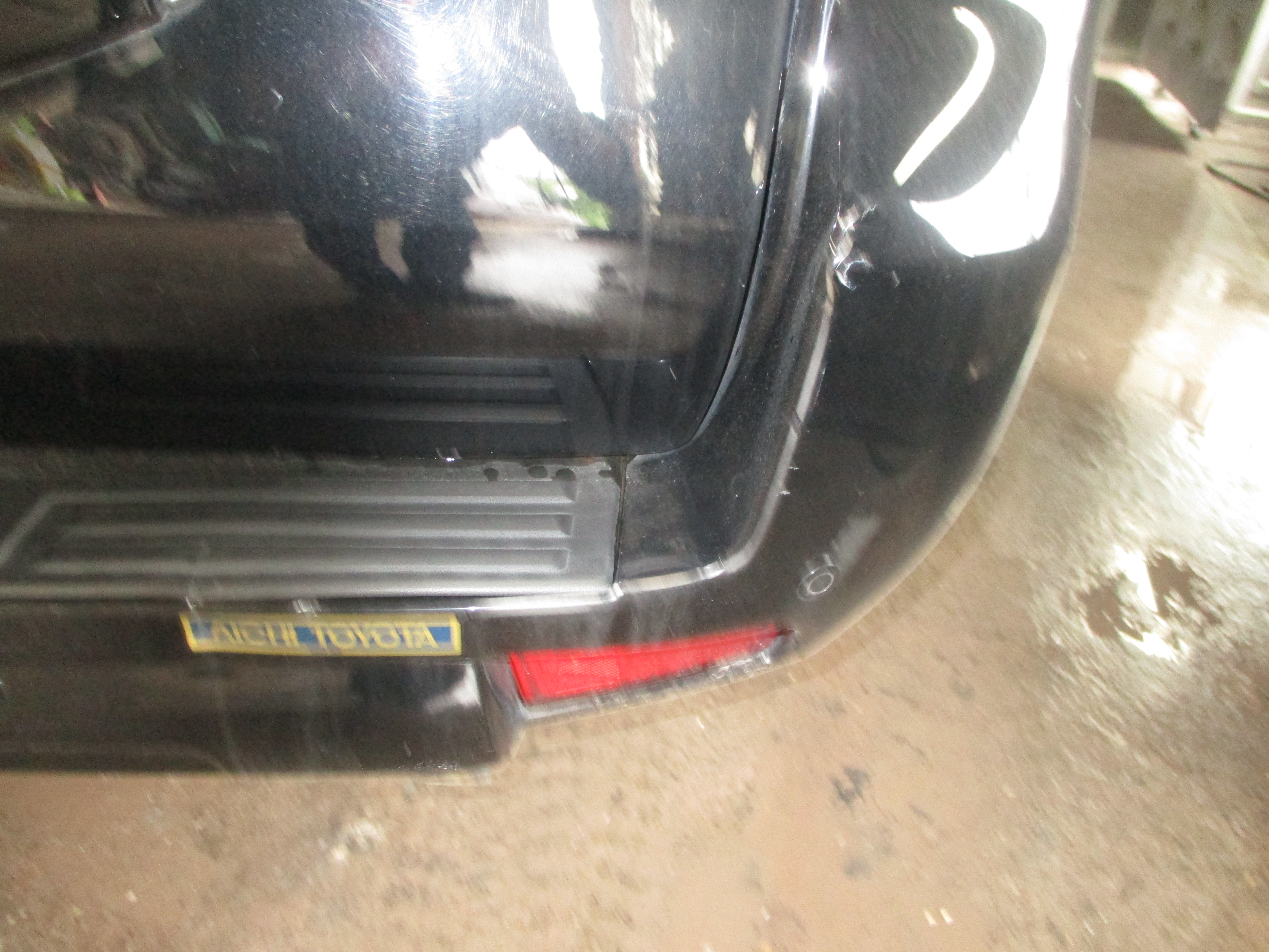 リアバンパーの右側の上角が凹んでて形が少し変形しています。それと下のトヨタのシールが貼ってある所も押されて上が膨らんでいます。すぐ上のカバーも損傷してますが交換せずにこのまま使います。