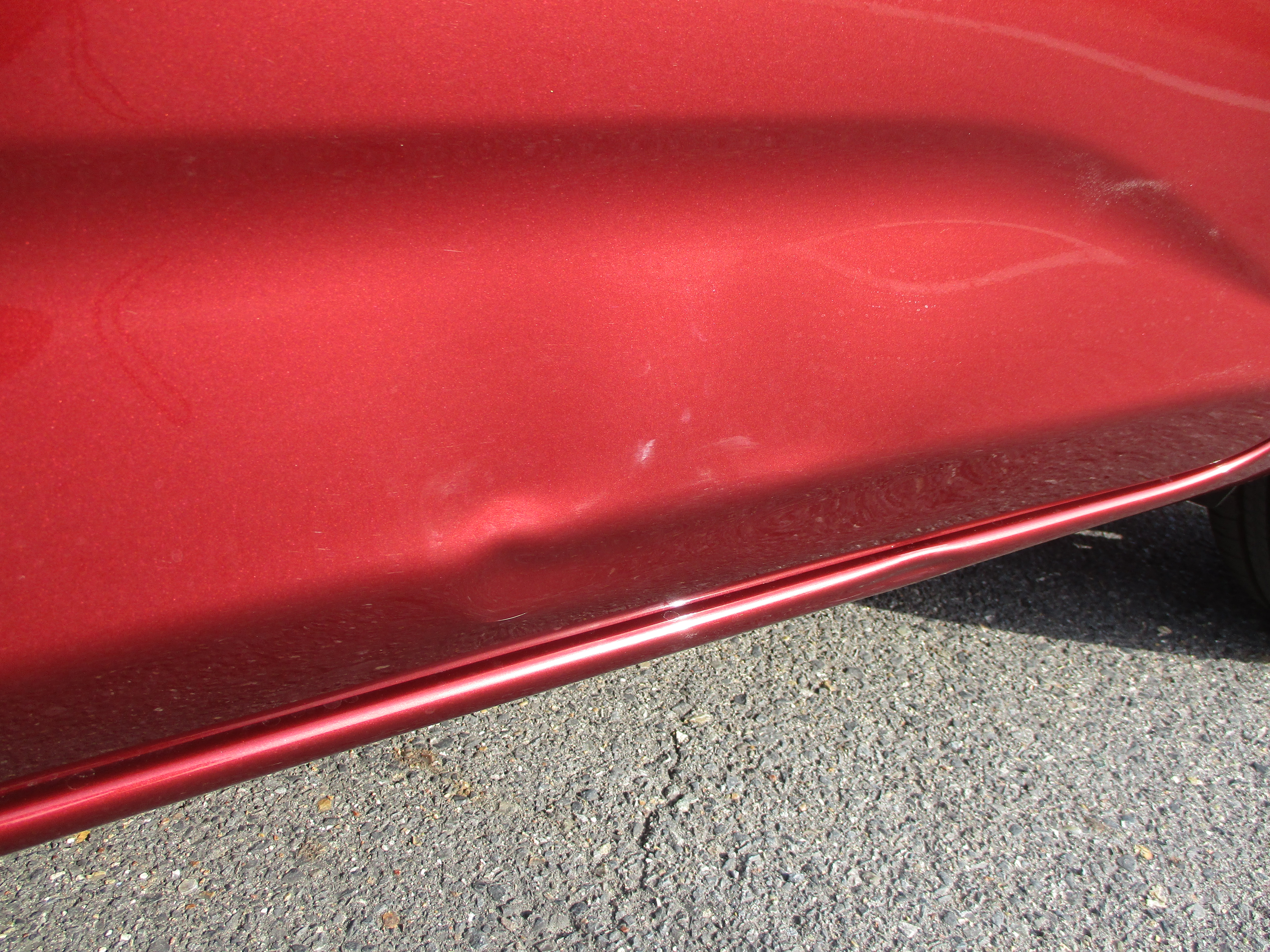 左のスライドドアのヘコミは角のラインが潰れて縦に長く損傷してます。それと下側のロッカーパネル(ステップ部)にも凹んで押されています。