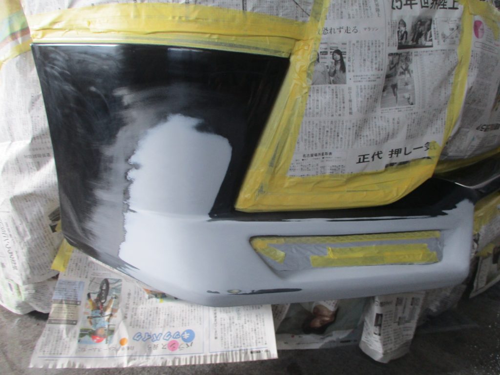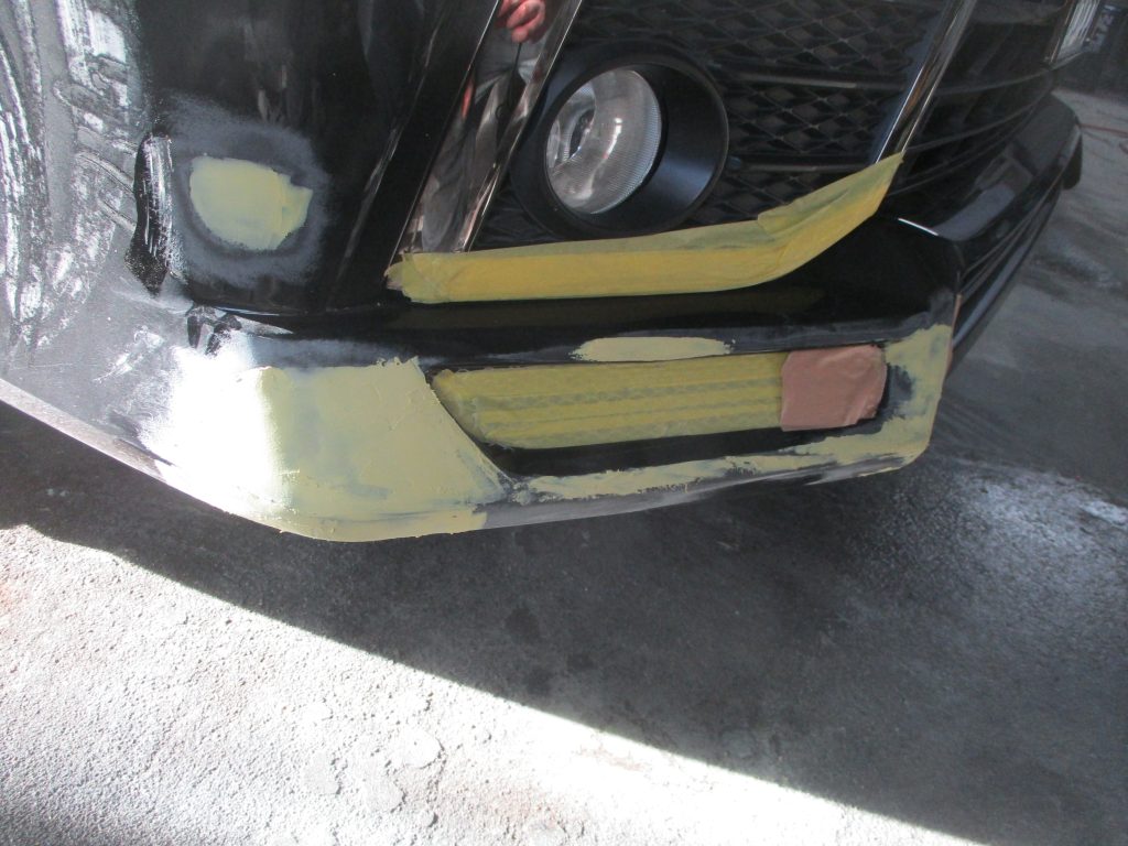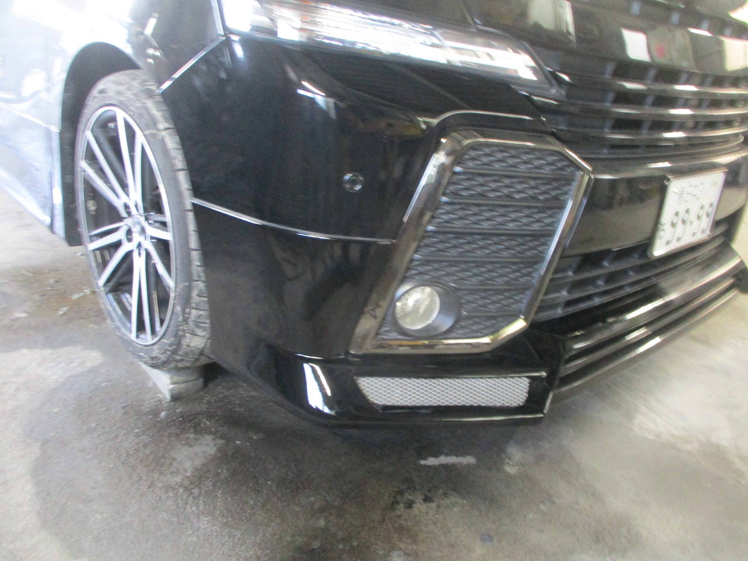 フロントバンパーのハーフスポイラーの右側に幅20センチ以上のガリキズで下地まで見えています。