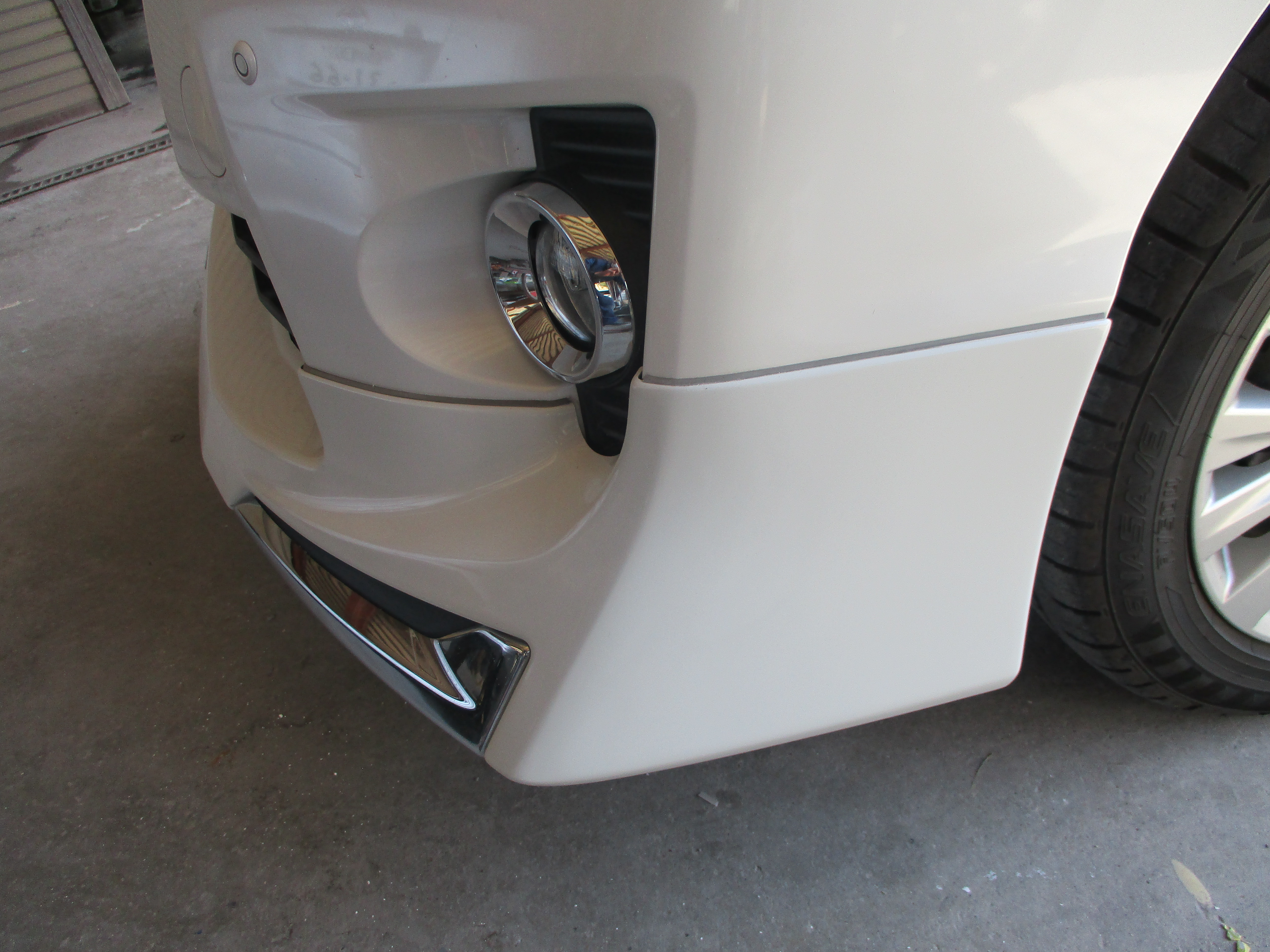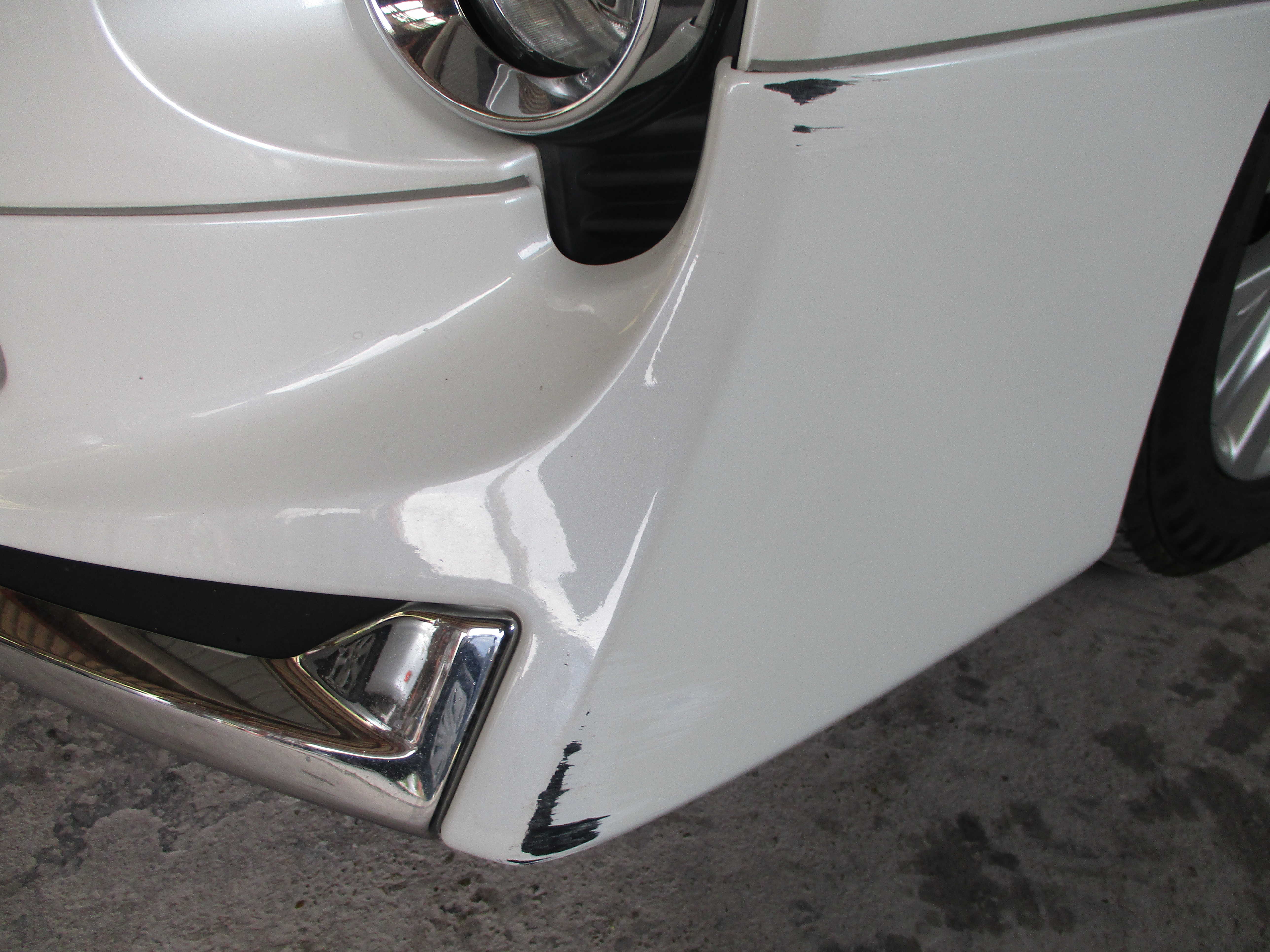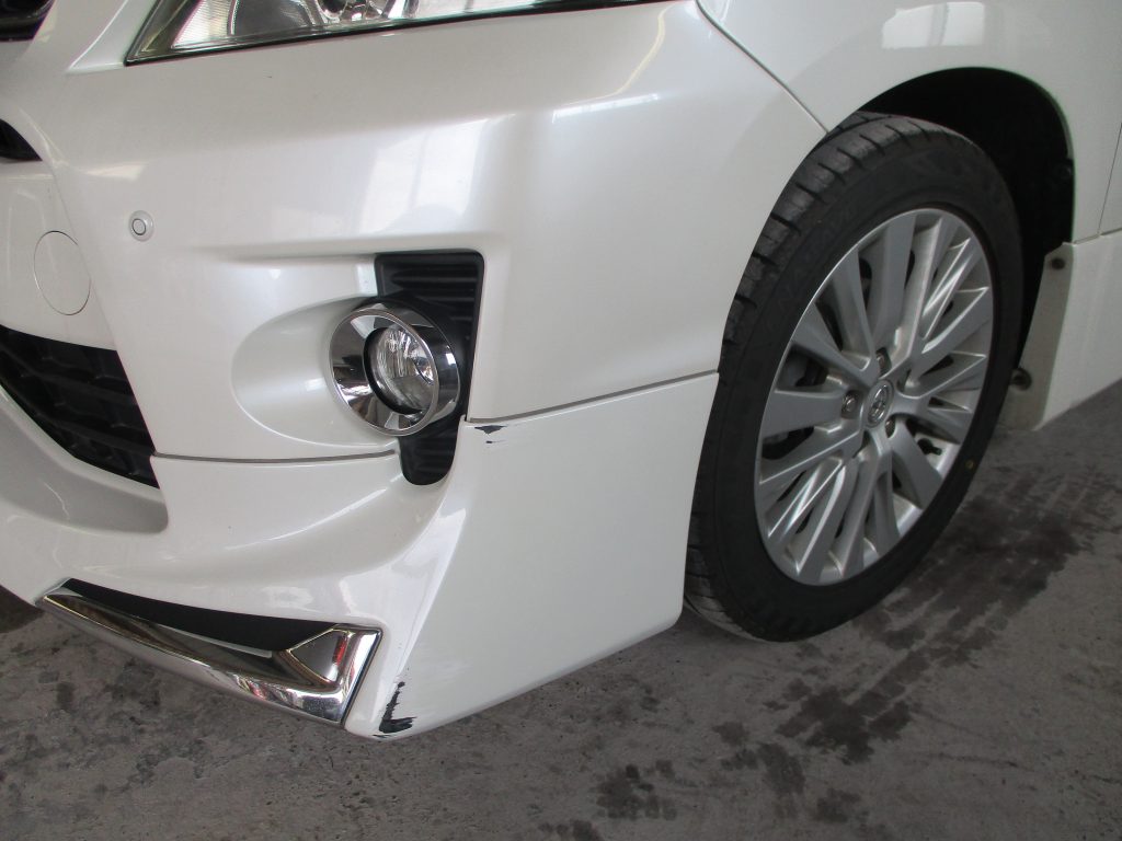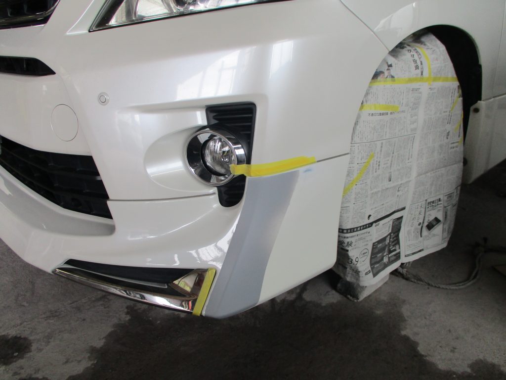 フロントスポイラーは外さないで、取り付けたままの状態でそのまま補修で塗装します。