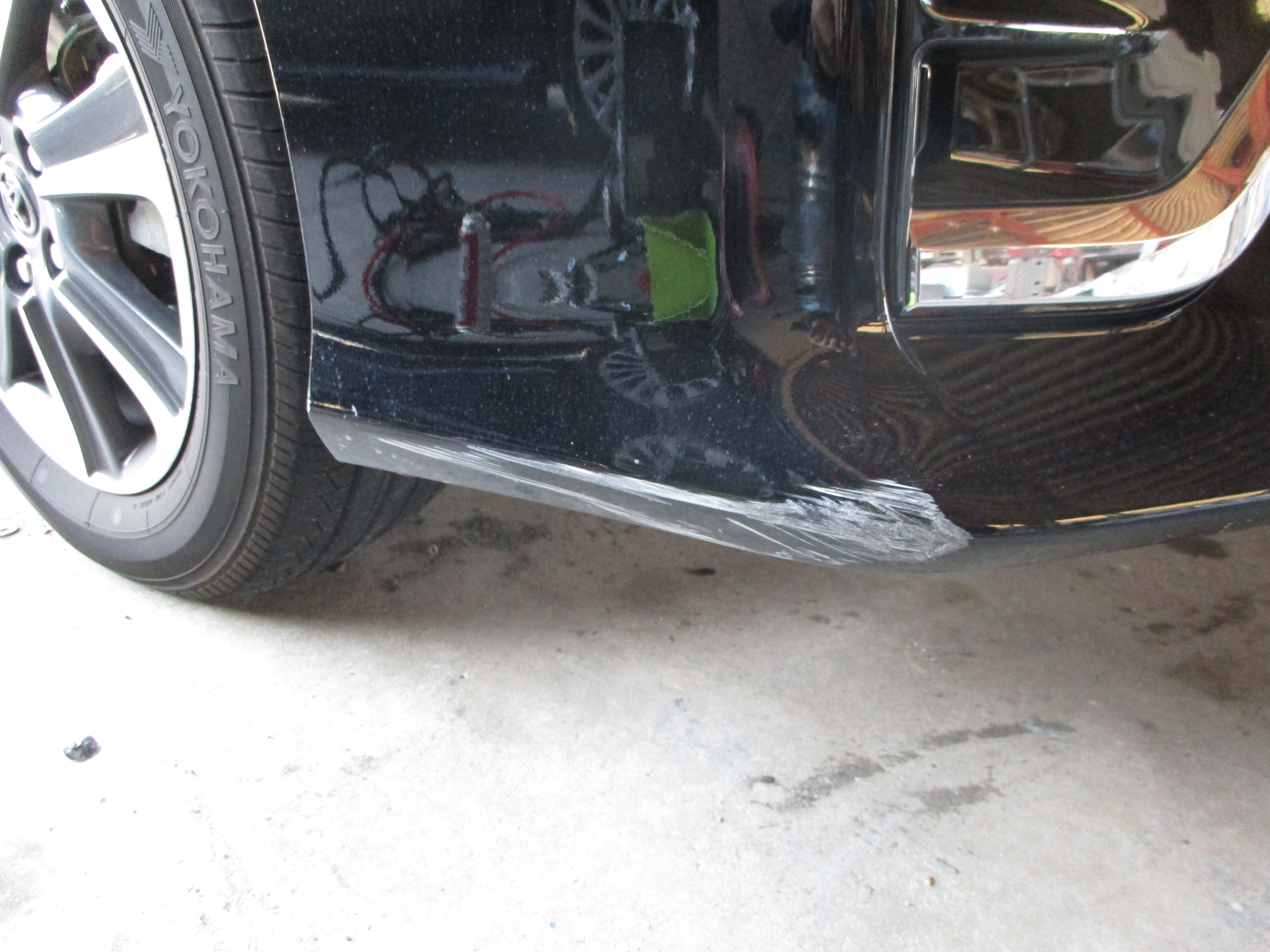 フロントバンパー修理なのですが、前から後ろに向かってキズが伸びてますね(>_<)擦りキズが約15センチぐらいあります。