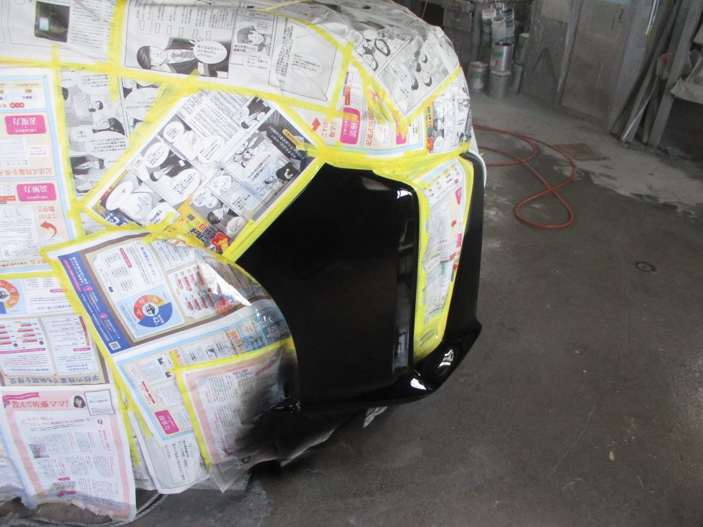 塗装が終わりましたら、ヒーターでしっかり熱で乾燥させて、塗膜が固まったらマスキングを剥がして塗装で付いた、小さいブツやホコリをさらに細かい2000番ペーパーで上から削り取り、粗めのコンパウンド(研磨剤)で丁寧に磨き込んでいきます。ペーパー目が消えて輝くようなツヤが作れたら完成です。