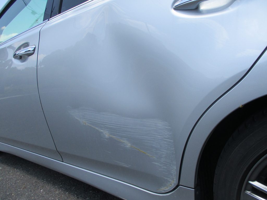 当社のウェブサイトにお問い合わせいただいたお客様です。最初はドア交換での修理で話してたのですが、交換になると見積もりが15万以上となるため、10万以下に抑えたいと要望があったので、今回は板金での修理となりました。