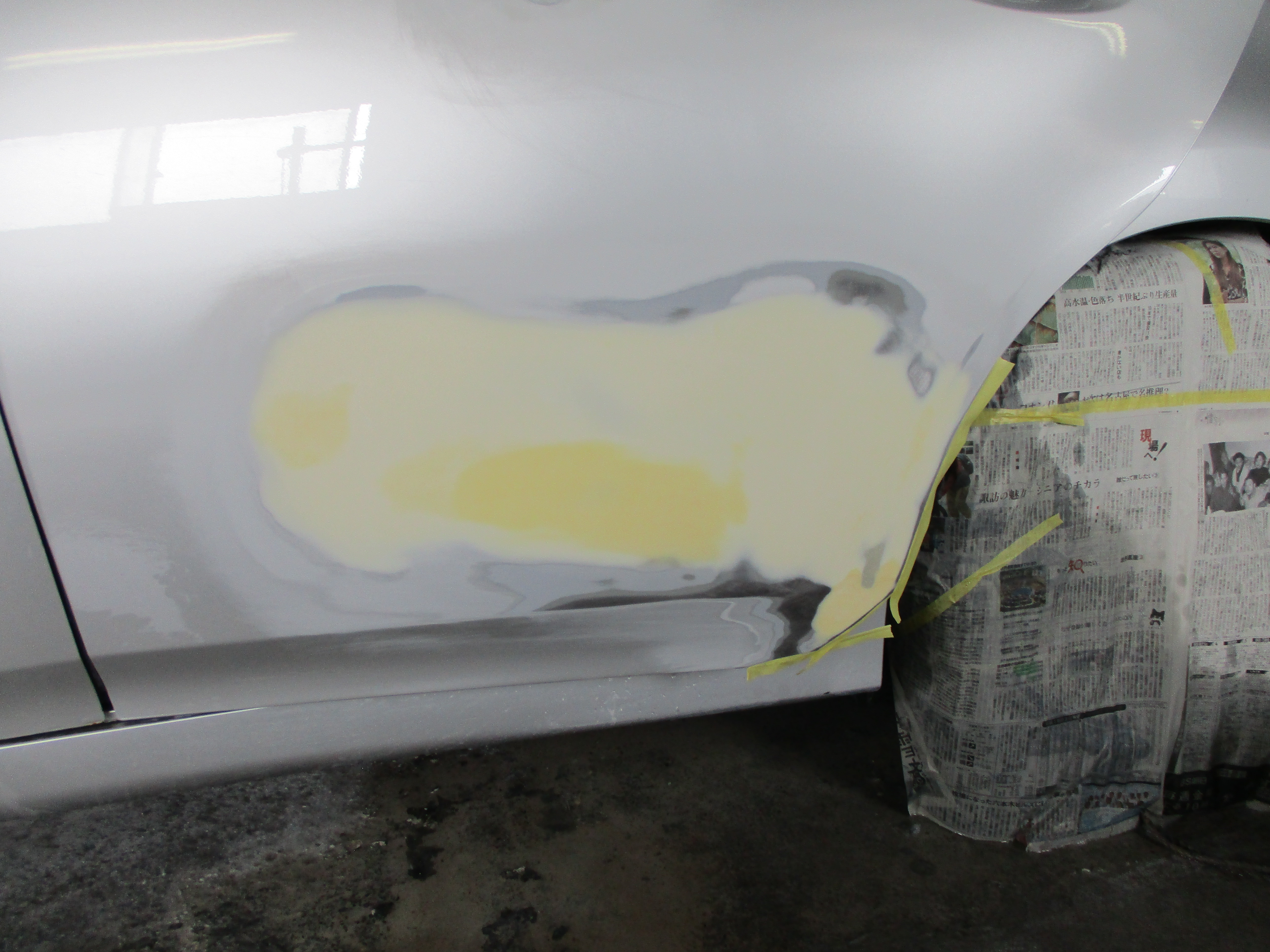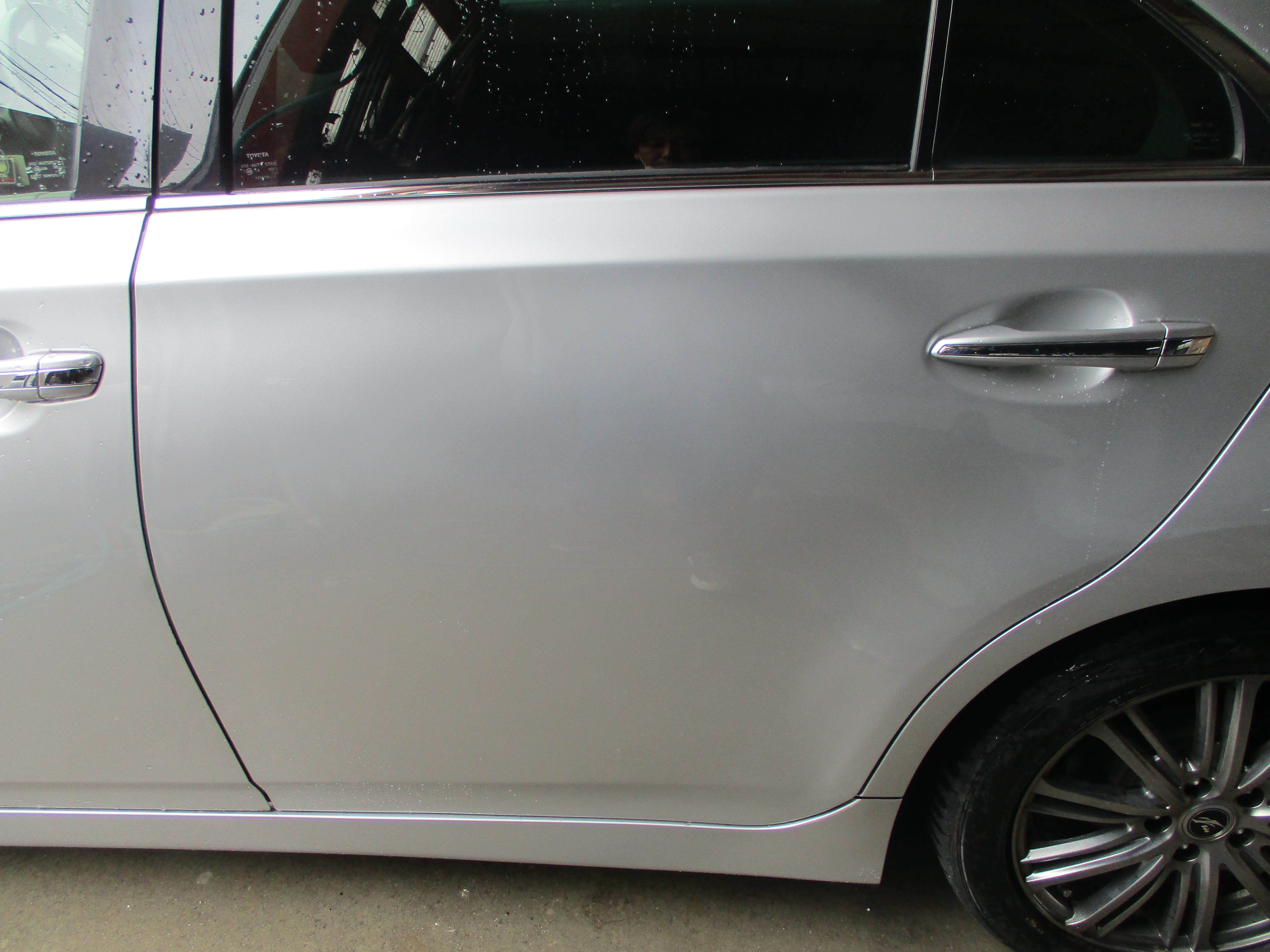 春日井市のお客様からトヨタ・SAIのリアドアのヘコミの板金・塗装のご依頼をいただきました。