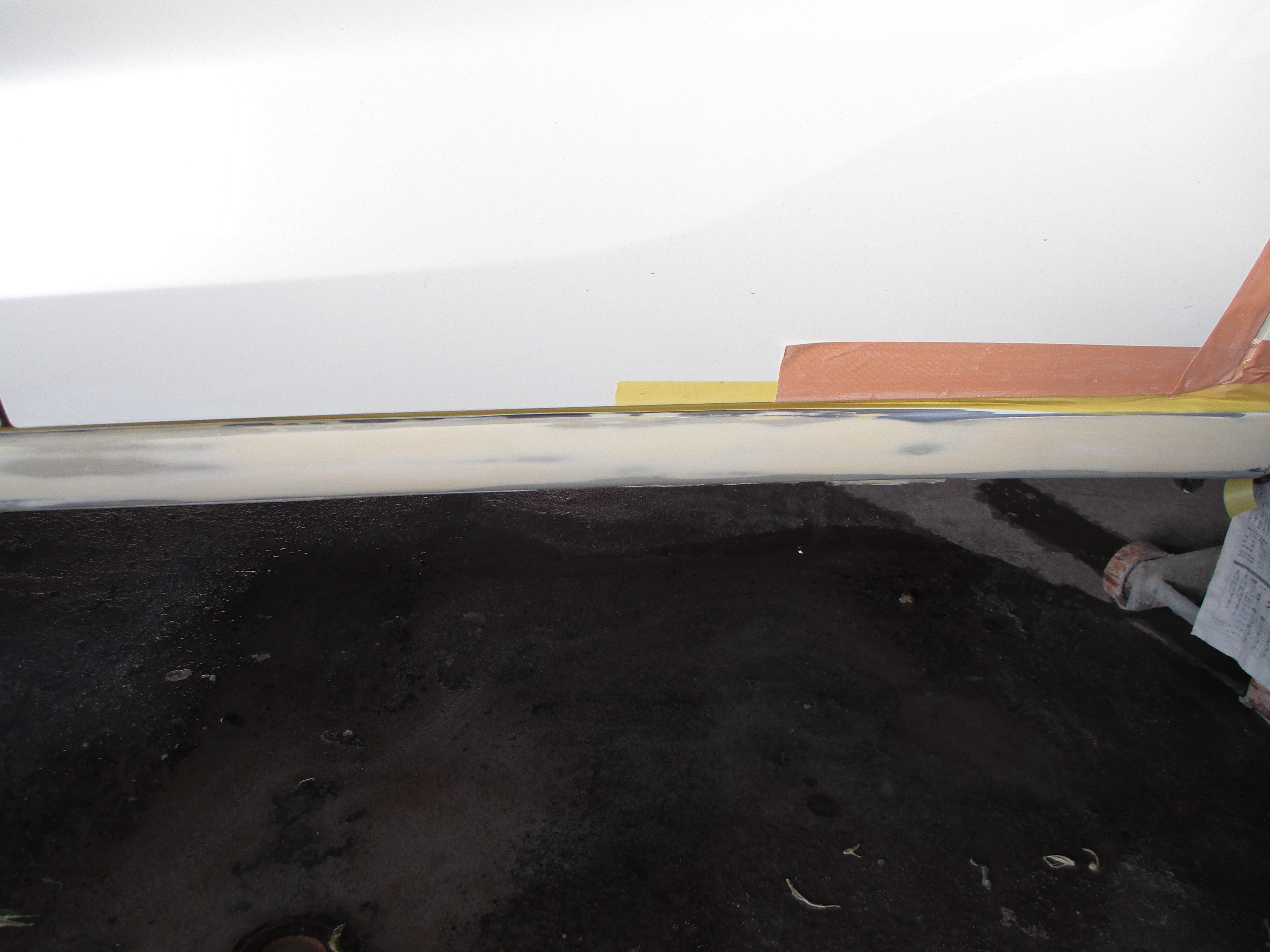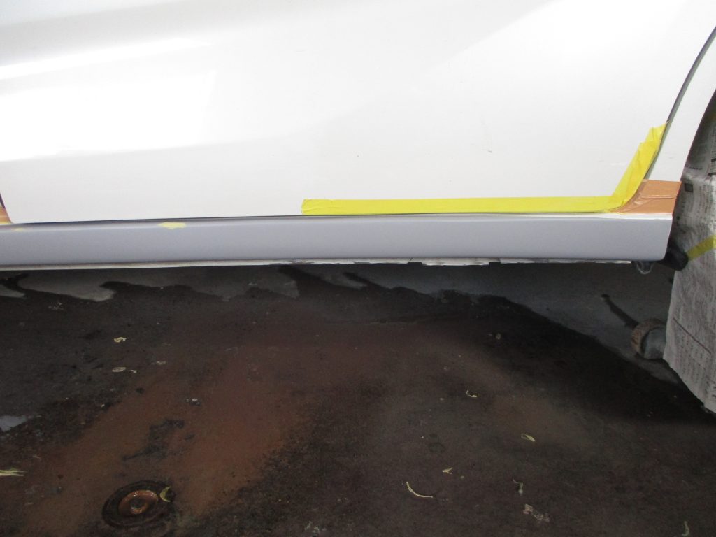 パテはまず厚盛パテで土台のラインを作り、サンダーで研いでいき何回も繰り返し、そして中間パテで細かく微調整して綺麗なラインに仕上げていきます。範囲が広ければ広いほど真っ直ぐなラインを作るのが難しくなりますので腕が試されます。