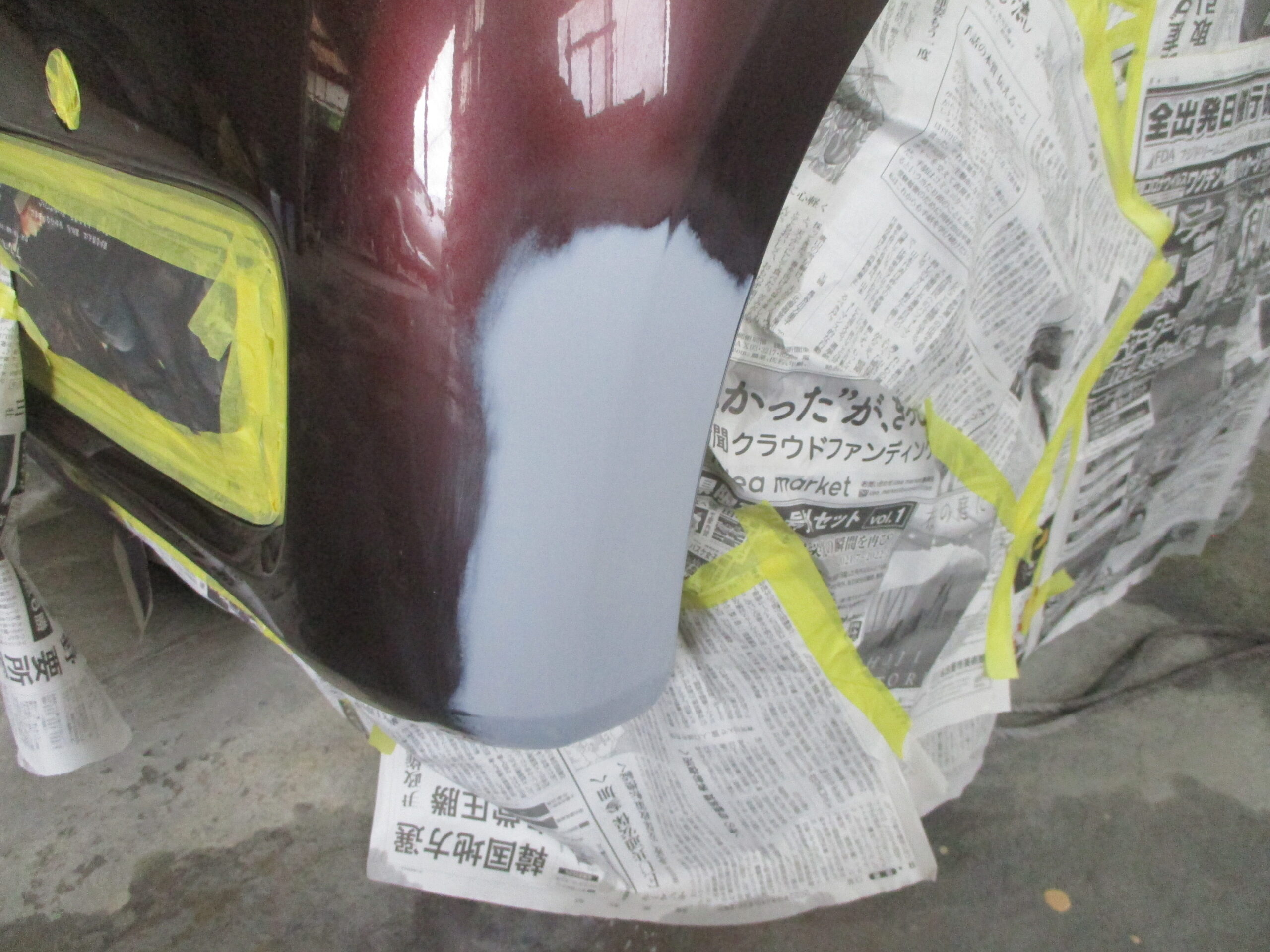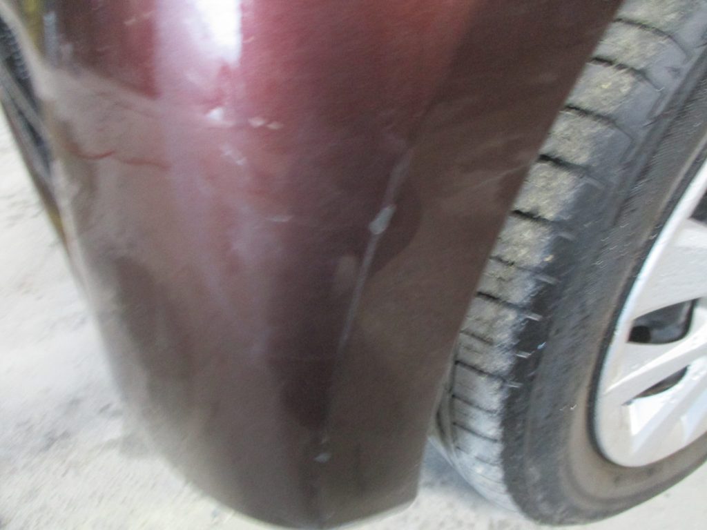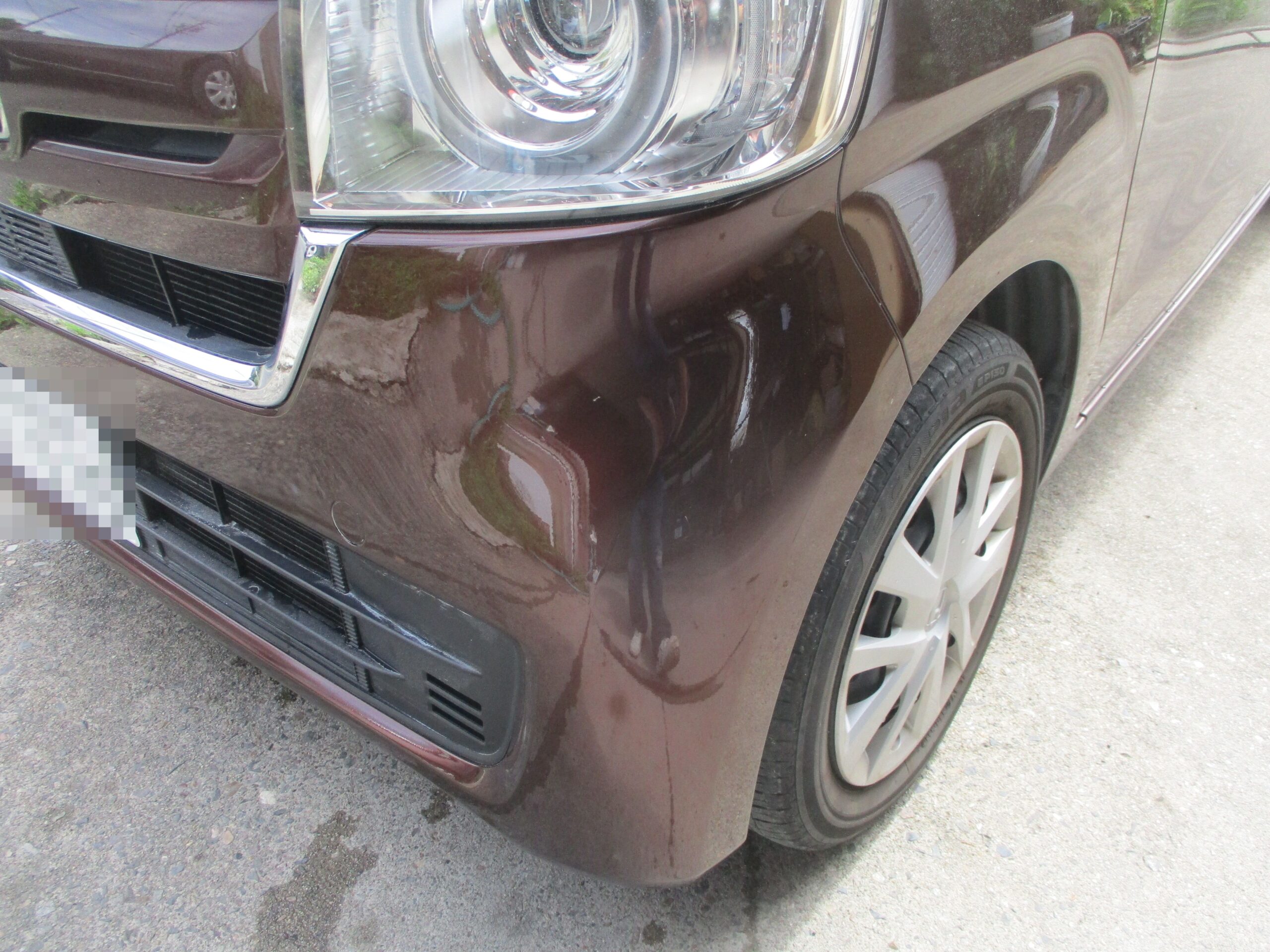 今回はフロントバンパーの左側にブロックで細かい擦った傷があります。一部塗装が剥がれて下地が見えます。