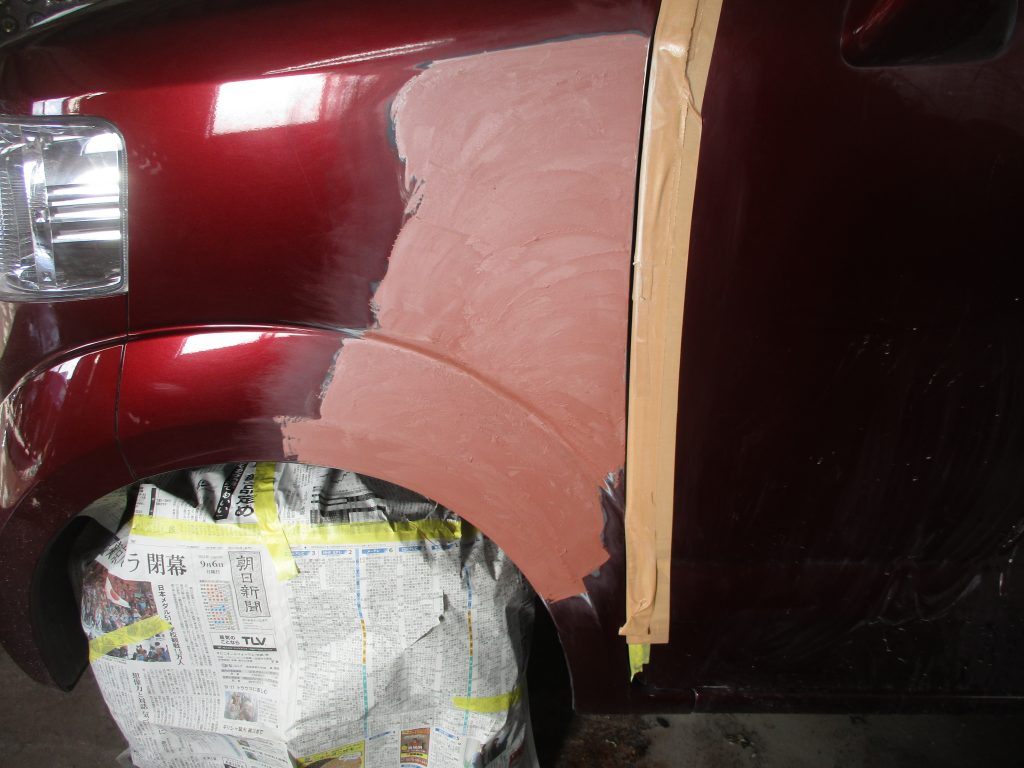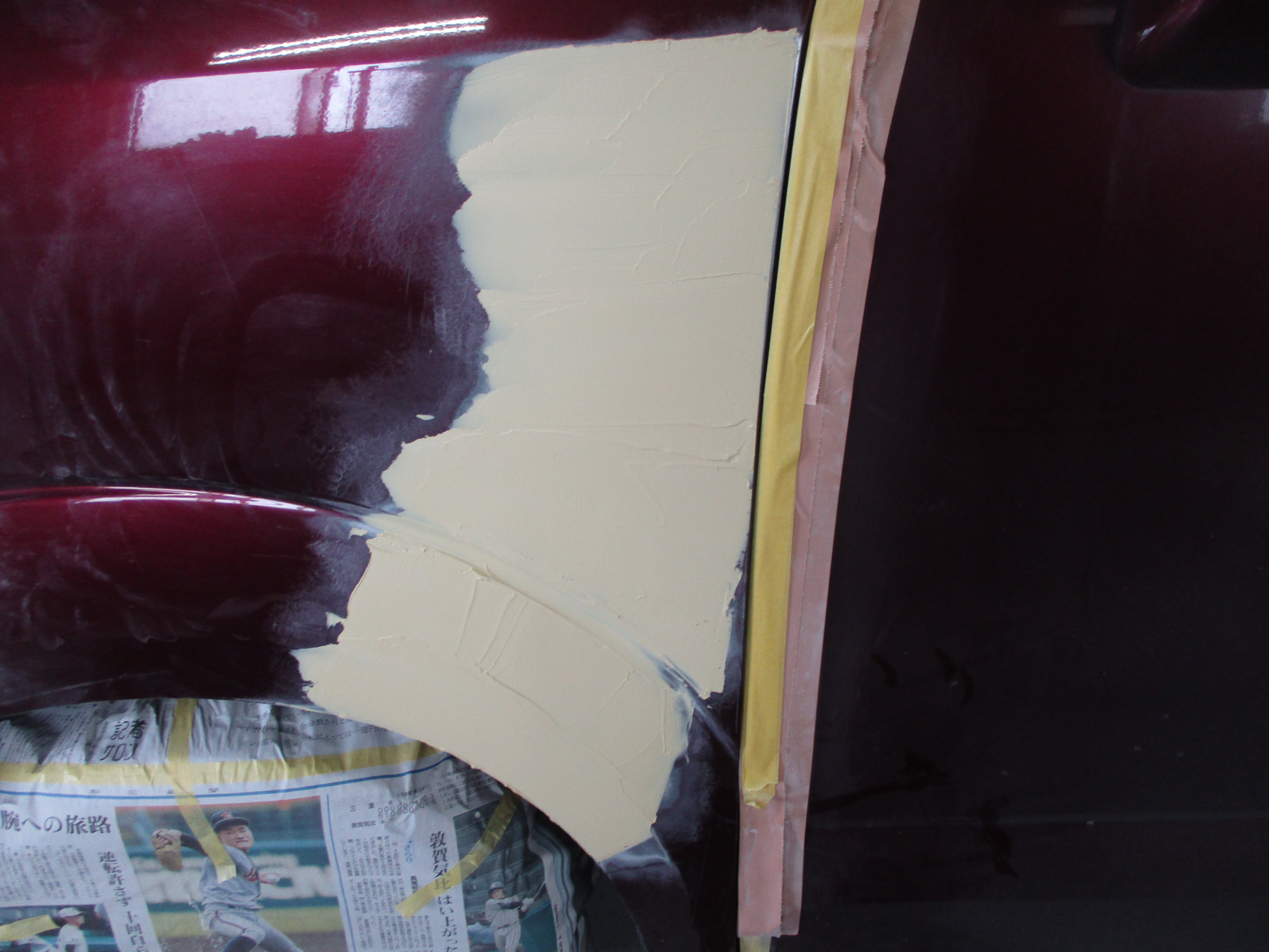 板金が終わったら、次にパテで凹みを埋めたら研いでいき形を修正していきます。