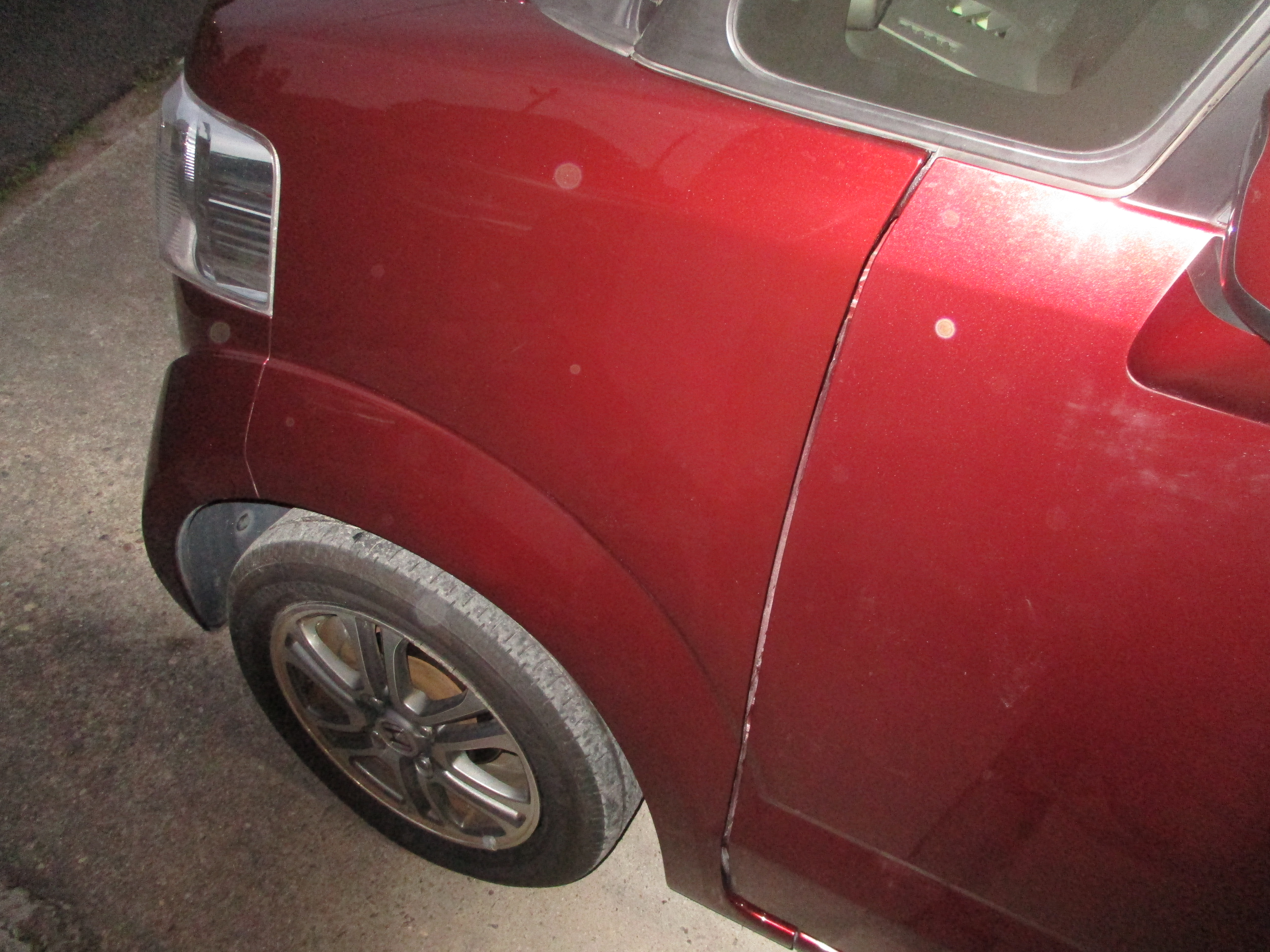 春日井市のお客様からホンダ・N-BOXの左フロントフェンダーの板金・塗装のご依頼をいただきました。