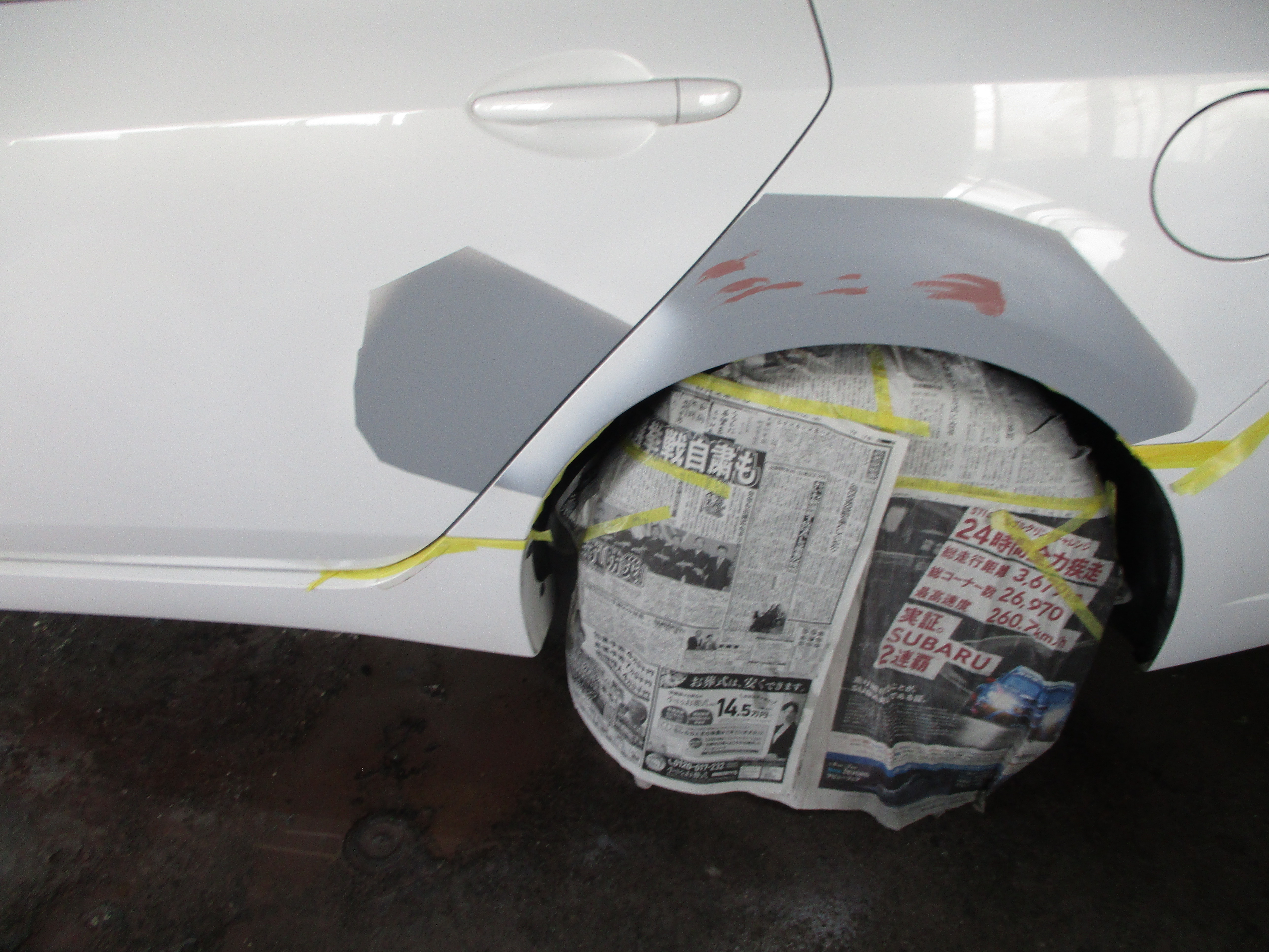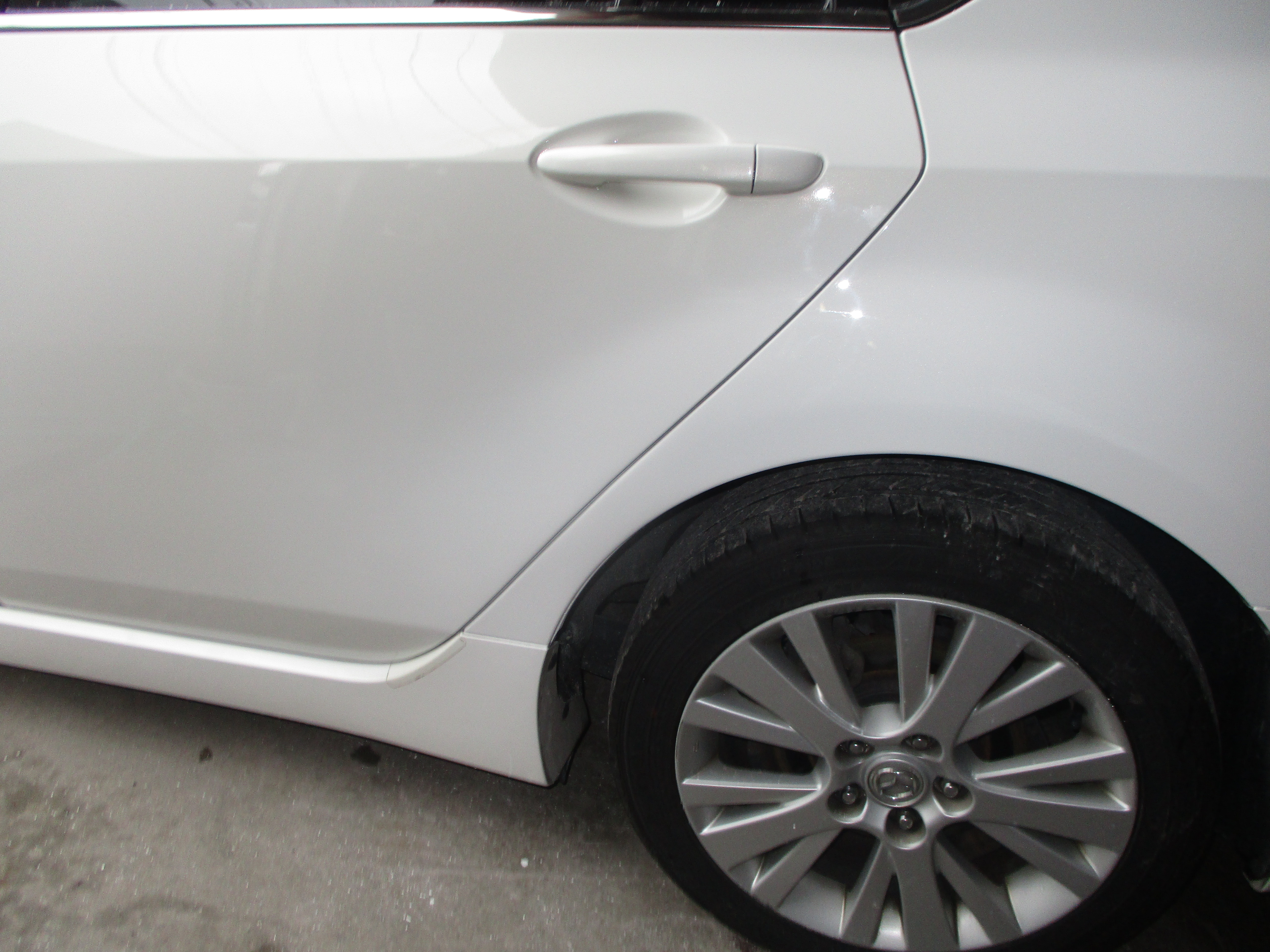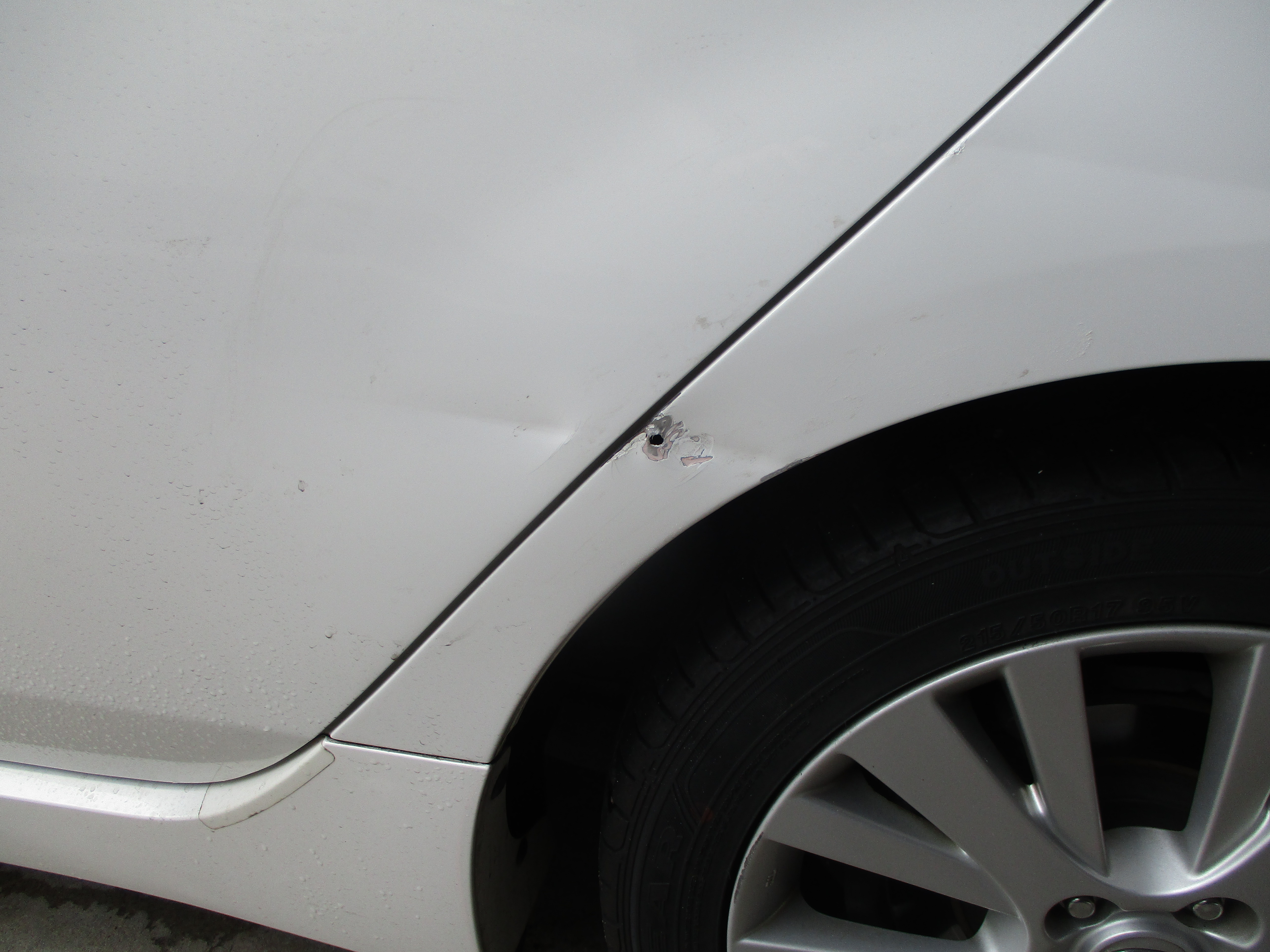リアドアからリアクォータにかけてのまたいだキズヘコミにになります。ドア側は横に10センチほどのヘコミがあり、リアクォータの方はホイールハウス付近の細い部分が凹んでて1ヶ所に穴が空いてます。