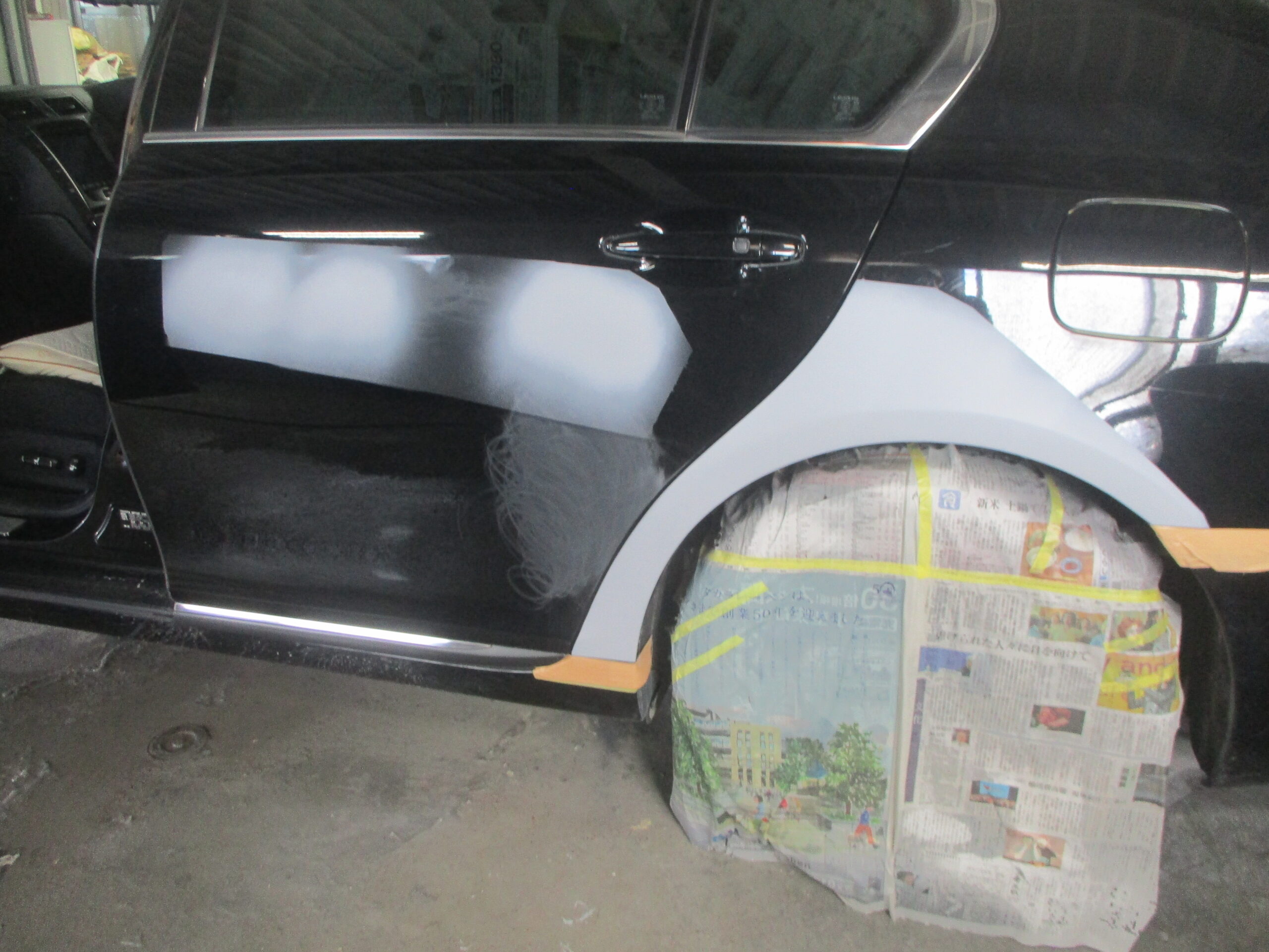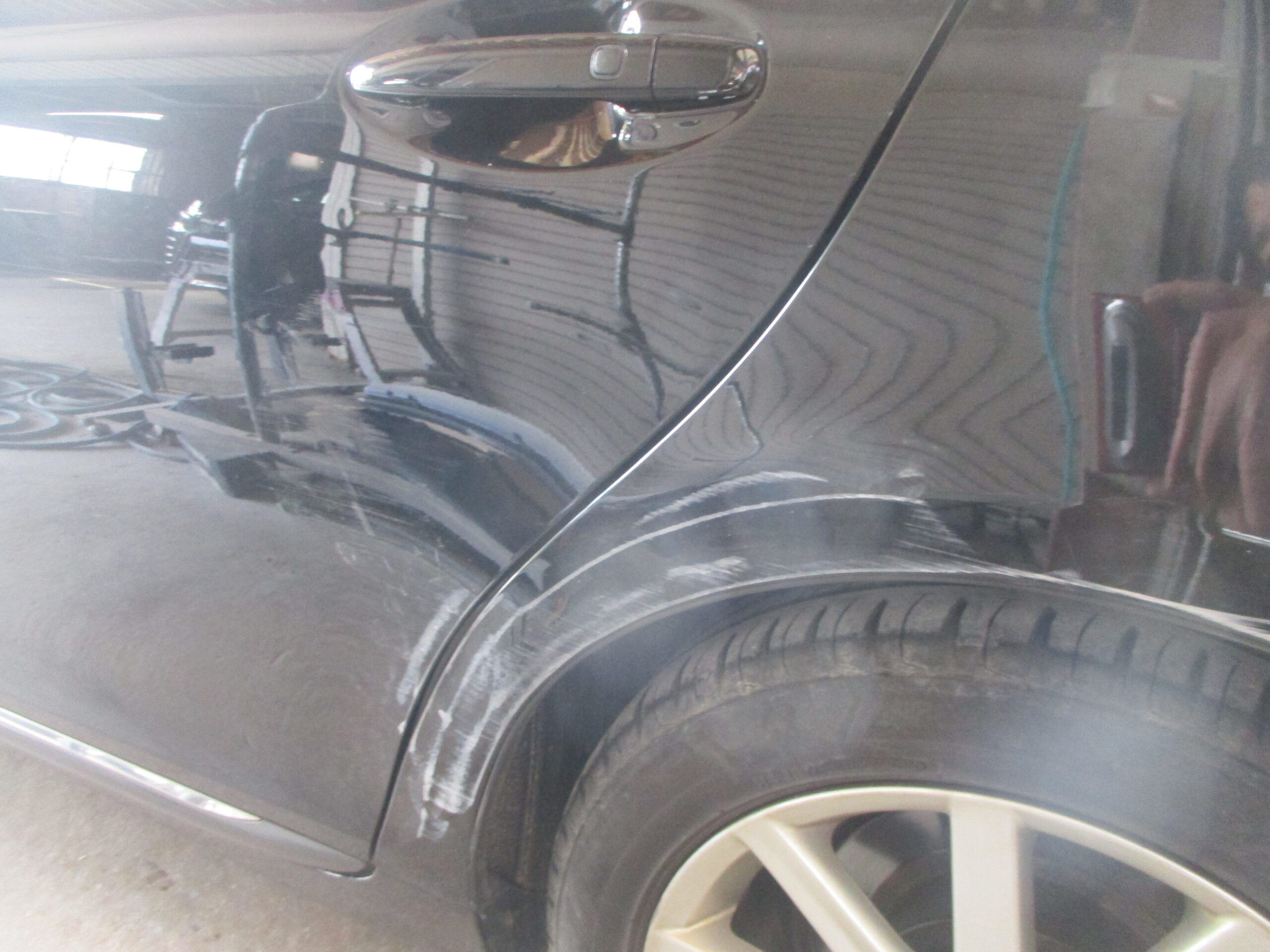 春日井市のお客様からレクサスGSの左リアドアと左リアクォータのキズ・ヘコミの板金・塗装のご依頼をいただきました。