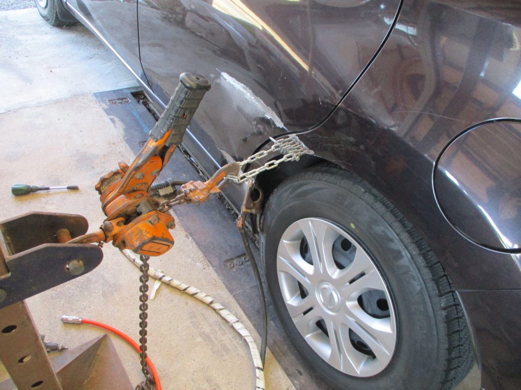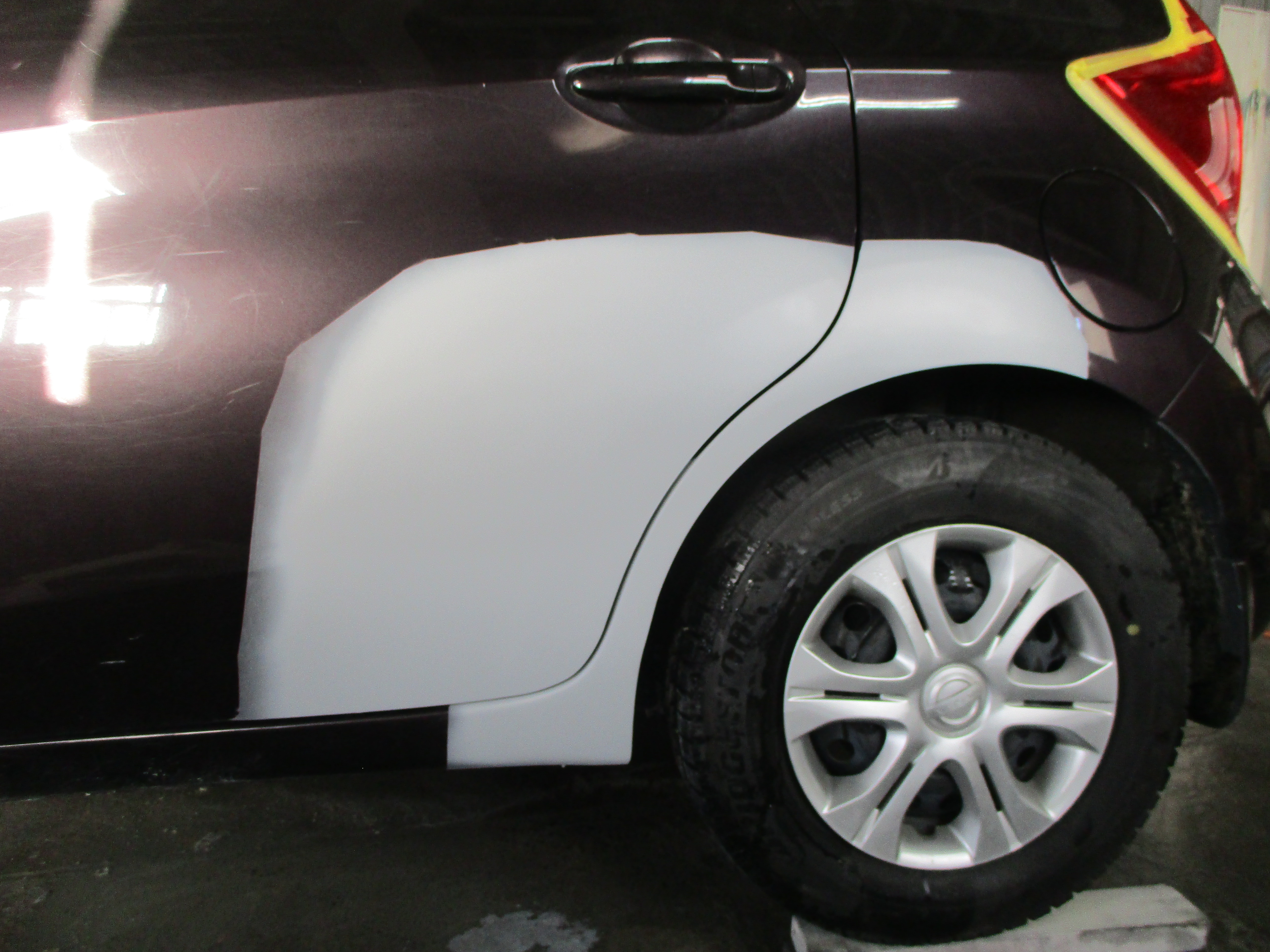 リアドアとリアクォータにそれぞれ上側と下側に傷とヘコミが入っています。今回は板金での対応となります。