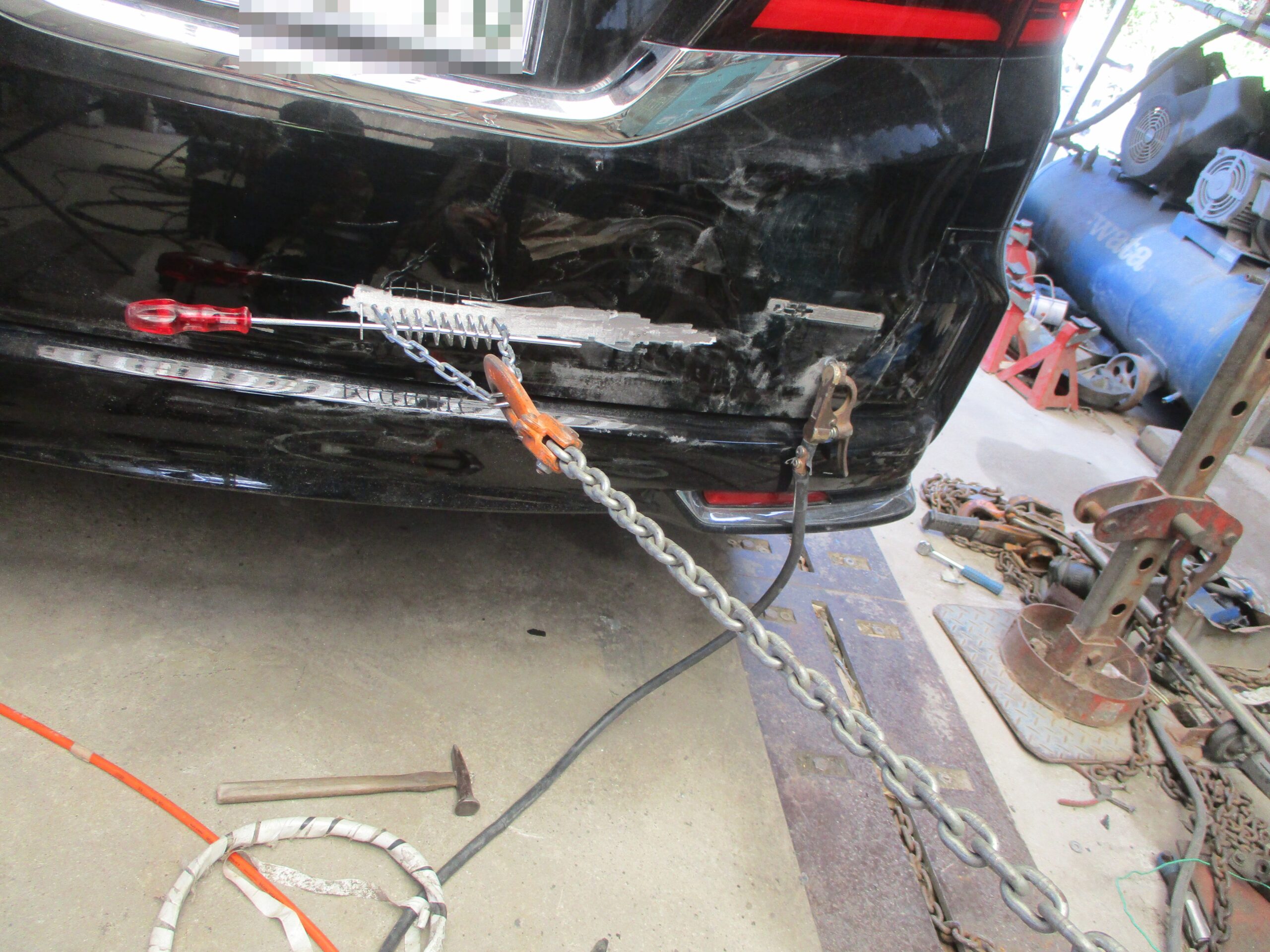 今回はバックドアなのですが、酷く広範囲に凹んでいます。当社の前にディーラーに行かれたのですが、ドアは交換と言われて高額見積になってしまったので、インターネットで検索してたところサイオ板金にお電話をいただきました。当社では修理が可能でしたので、板金での見積もりを提示してその場でご依頼をしていただきました。