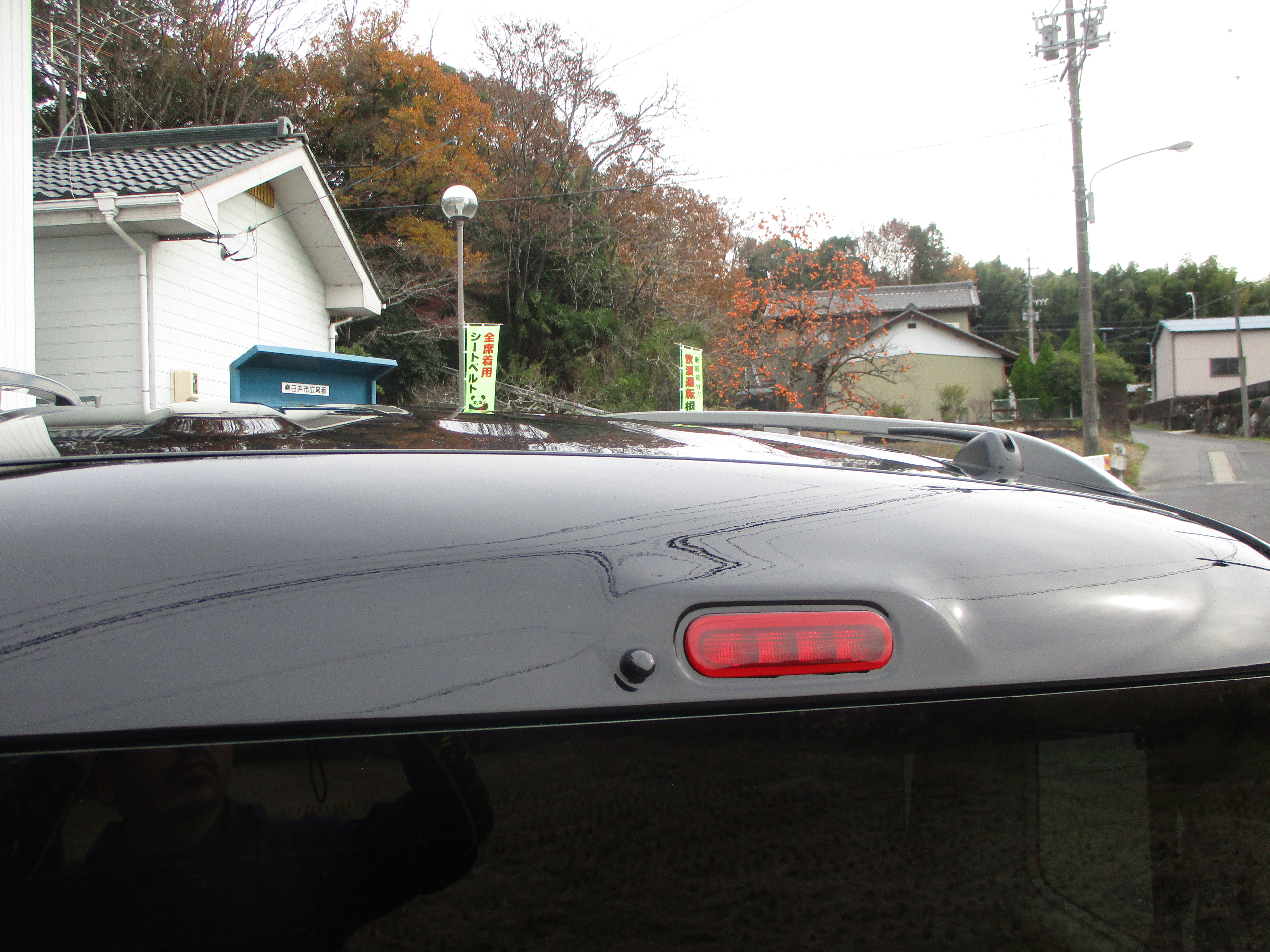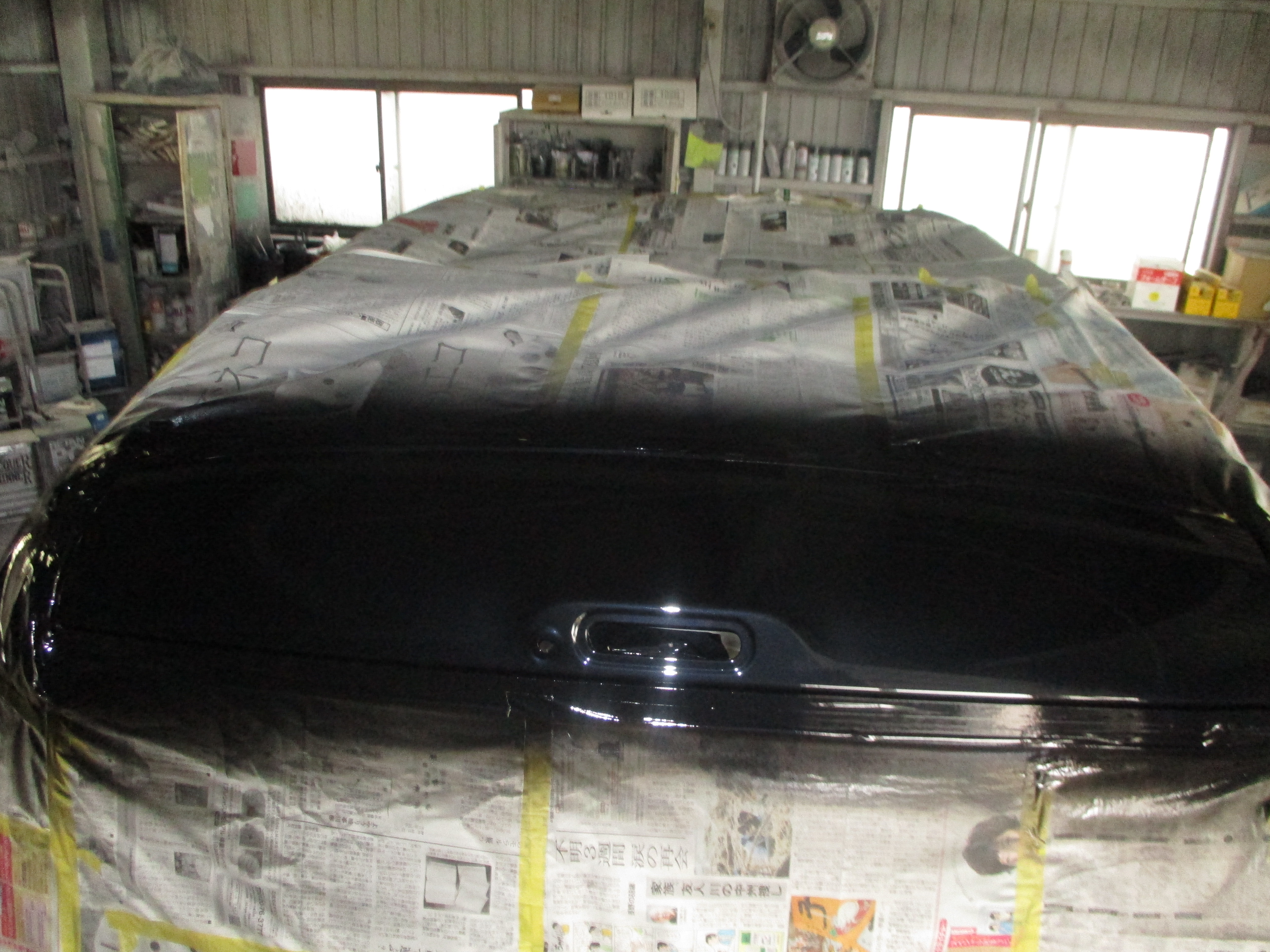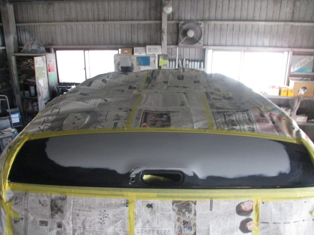 塗装で付着したブツやホコリを専用のカッターで削り取り、2000番ペーパーで研ぎ落したらポリッシャーでツルツルに全体を磨き込んでクロスで綺麗に拭き取ったら、外しておいたバックランプを取り付けたら作業完了です。凹みも傷の跡も分からなくなりましたね。