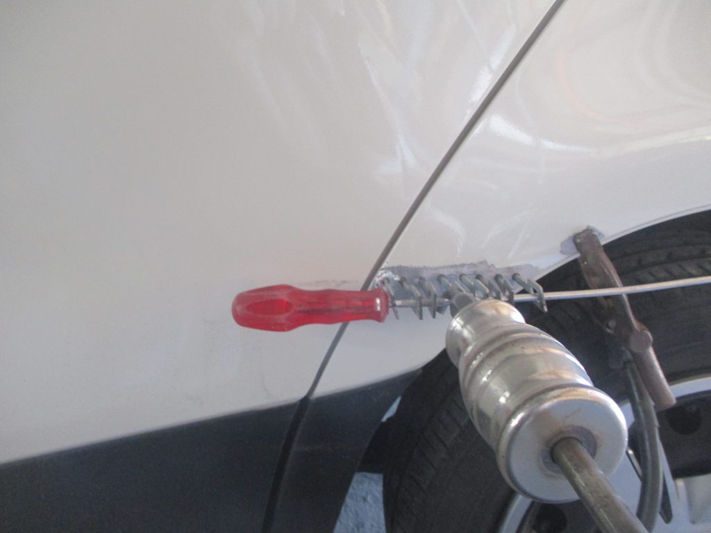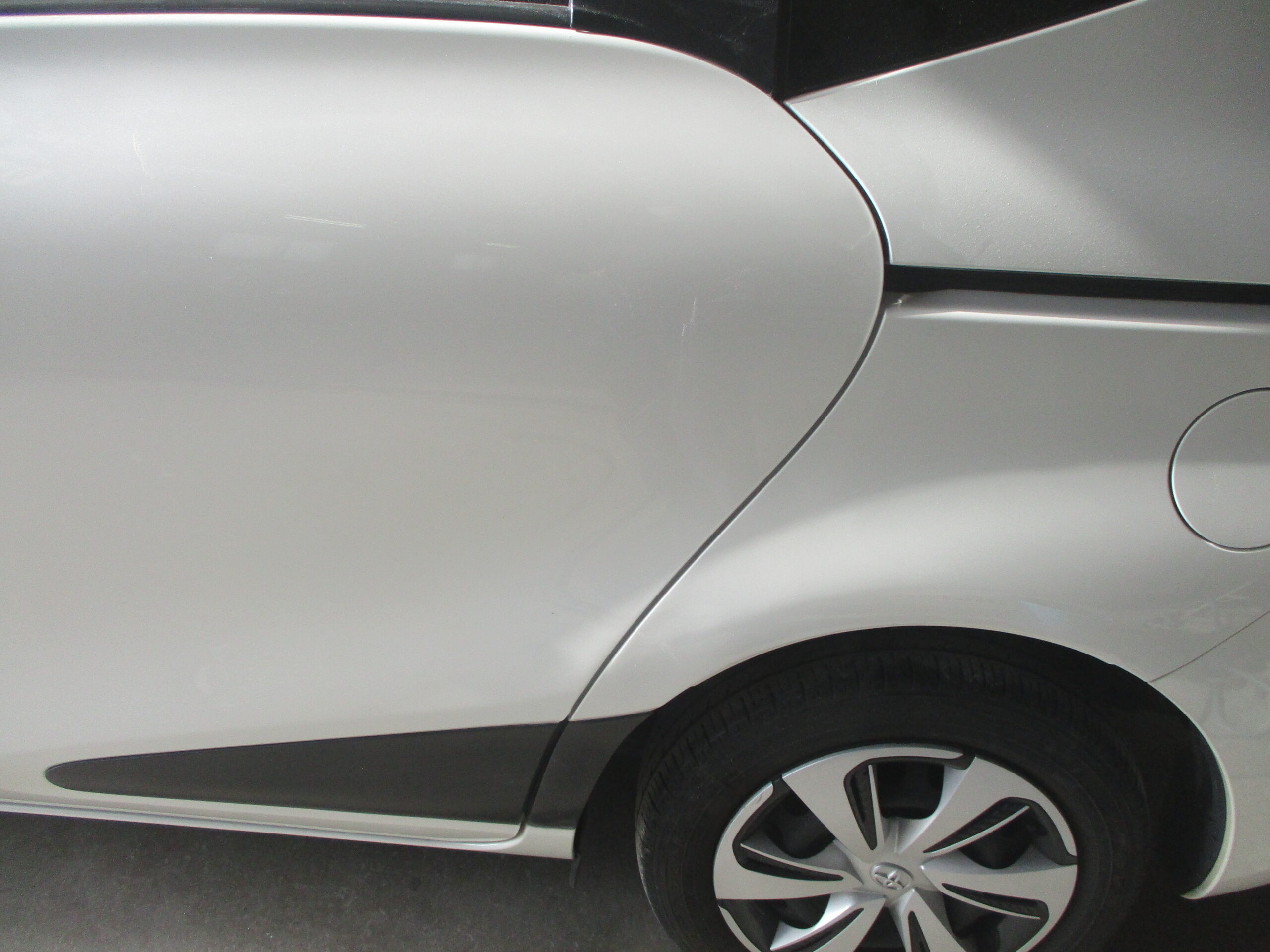 シエンタのスライドドア側は数センチ小さいヘコミが入っていて、リアクォータ側は10センチのヘコミ傷があります。