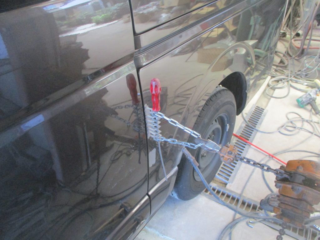 スライドドアとリアクオータの境目辺りが数か所凹んでいます。
